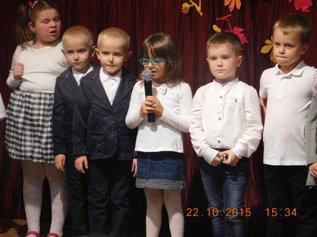 W tak ważnym dla dzieci dniu przybyli zaproszeni goście: dyrektor szkoły, nauczyciele, rodzice i dziadkowie. Na wstępie przemówienie wygłosiła dyrektor szkoły pani Hanna Kurta. Życzyła dzieciom wspaniałej zabawy oraz samych sukcesów w nauce. Dzieci zaprezentowały krótkie przedstawienie przeplatane tańcem i piosenkami. Po gromkich brawach dzieci i rodzice przystąpili do ślubowania. Pani dyrektor zadawała malcom ciekawe pytania sprawdzające zdobytą przez nich wiedzę. Dzieci zdały egzamin „śpiewająco”. Główni bohaterowie uroczystości otrzymali pamiątkowe dyplomy i zawieszki z sympatycznym misiem. Na zakończenie uroczystości wręczyły przybyłym gościom i rodzicom własnoręcznie wykonane papierowe muchomorki.