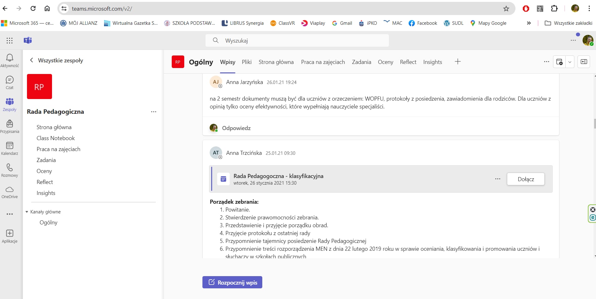Microsoft Teams to aplikacja do pracy hybrydowej, dzięki której jesteśmy na bieżąco,  łączymy się — wszystko w jednym miejscu. Rodzice otrzymują dane do logowania na zebraniu organizacyjnym.