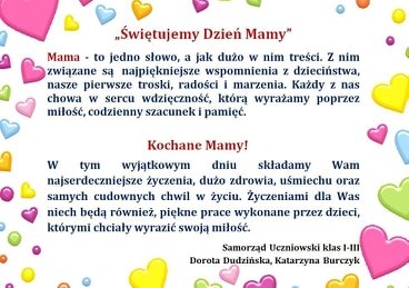 Szczęścia, uśmiechu, dużo radości, Spełnienia wszystkich najskrytszych marzeń, Samych przyjemnych w życiu zdarzeń.                    Dla wszystkich Mam !