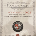 Dnia 7 maja 2022 roku o godzinie  10.00 rozpoczęliśmy obchody urodzin naszego miasta. Soliści zespołu wokalnego Wesołe nutki  wystąpili wspierając akcję MOTOSERCE przy CKISZ: