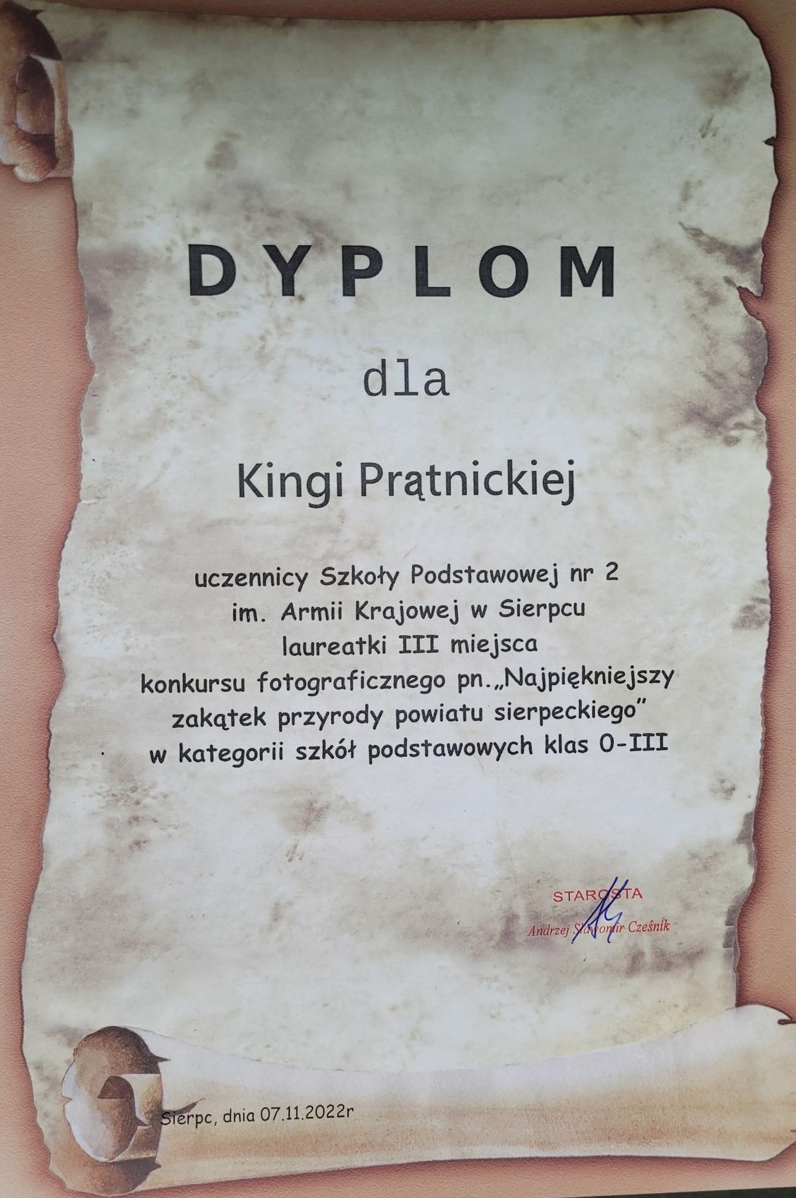W dniu 7 listopada 2022 r. w siedzibie Starostwa Powiatowego w Sierpcu odbyło się rozstrzygnięcie Powiatowego  Konkursu Fotograficznego „Najpiękniejszy zakątek przyrody powiatu sierpeckiego”.  Z rąk Starosty Sierpeckiego pana Andrzeja Cześnika i Wicestarosty pana Sławomira Olejniczaka uczniowie otrzymali dyplomy i cenne nagrody.