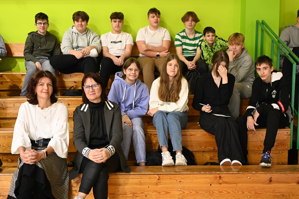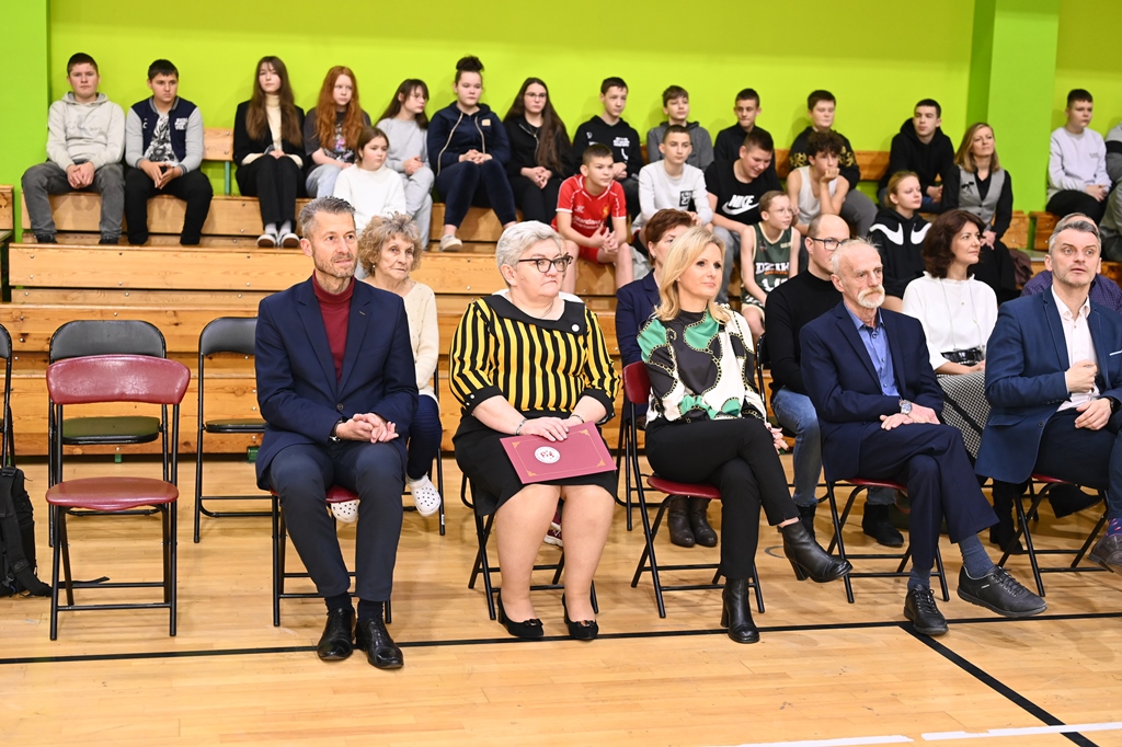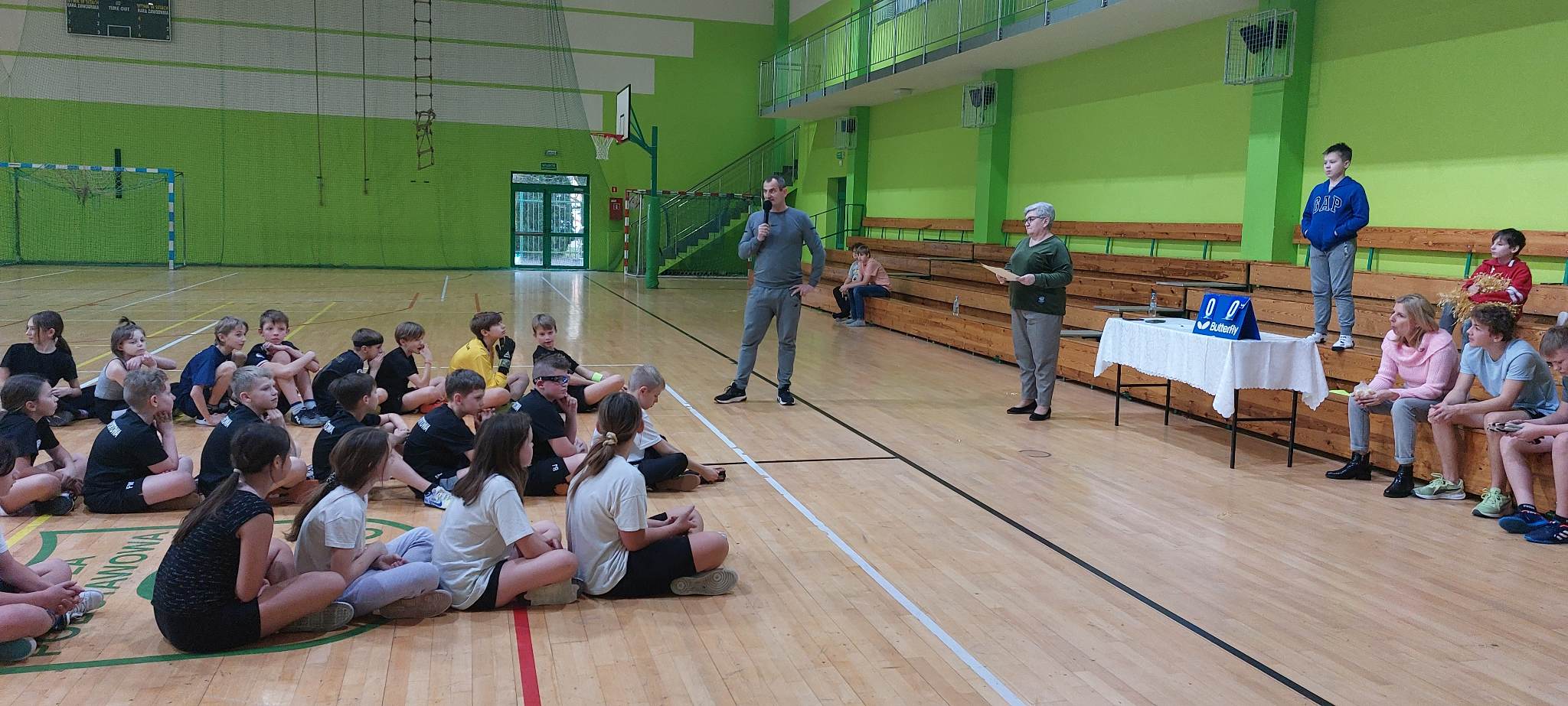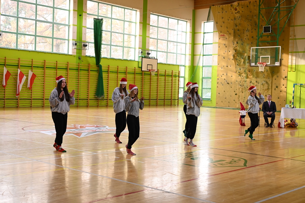 Klasa sportowa oraz dziewczęta z klasy VIII c przygotowały taneczną niespodziankę, która wprowadziła wszystkich w część sportową czyli Turniej Koszykówki klas 7 i 8, sędziowany przez Krzysztofa Skrzyńskiego i Wojciecha Skorłutowskiego.