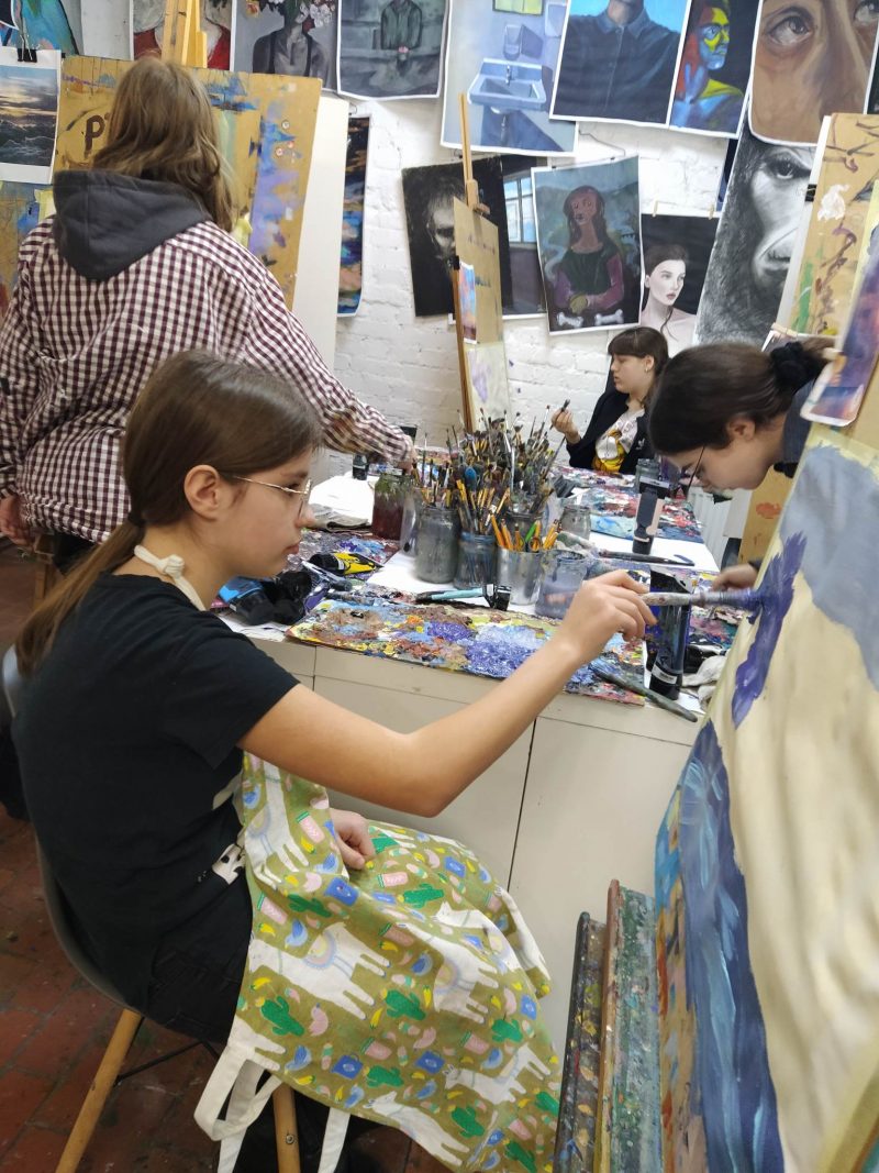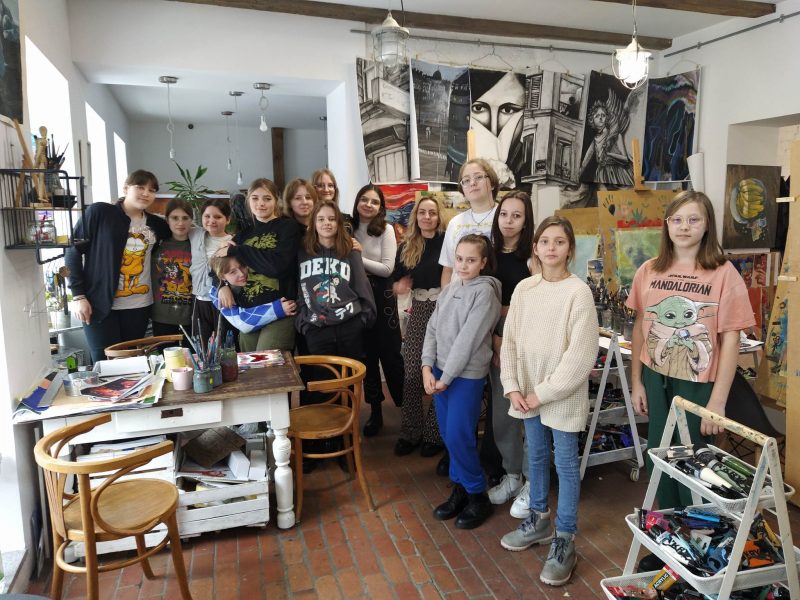 We wtorek, 7 lutego uczestniczki dodatkowych zajęć plastycznych, wraz z p. Aleksandrą Dołasińską i Joanną Gąsiorowską, wybrały się szybobusem na podbój artystycznej odsłony Płocka. Dzień pod znakiem twórczości zaczęliśmy od wizyty w Pracowni Oficyna, na ul. Tumskiej, gdzie pod okiem doświadczonej malarki, dr Katarzyny Bąkowskiej-Roszkowskiej poznawaliśmy tajniki malarstwa akrylowego.