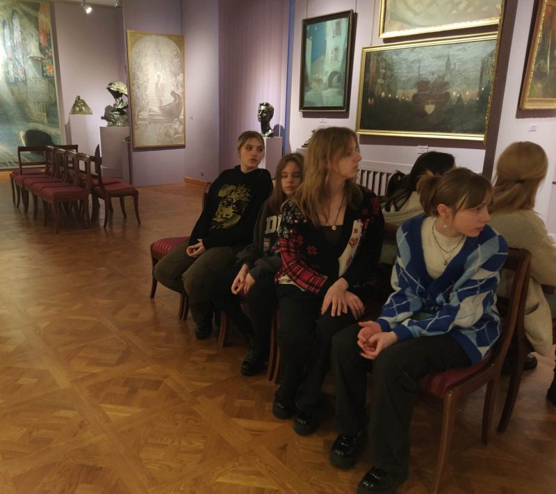 Uczennice brały udział w grze muzealnej, szukając różnych elementów w dziełach sztuki. Przebywając wśród dzieł T. Axentowicza, J. Mehoffera, J. Malczewskiego, S. Wyspiańskiego, J Chełmońskiego i innych, wybitnych artystów, czułyśmy się naprawdę wyjątkowo. Muzeum ma 4 piętra a każde piętro zachwyca kolejnymi dziełami. Ostatnim punktem wyprawy był oddział Art déco, gdzie podziwiałyśmy wystrój mieszkań z epoki, stroje, dodatki, biżuterię (m.in. puderniczkę Tiffany’ego i kolczyki w etui Cartiera), obrazy Zbigniewa Pronaszki, Stanisława Witkacego, Jana Rudnickiego oraz diament kolekcji- “Martwa natura” z antyczną rzeźbą Tamary Łempickiej.