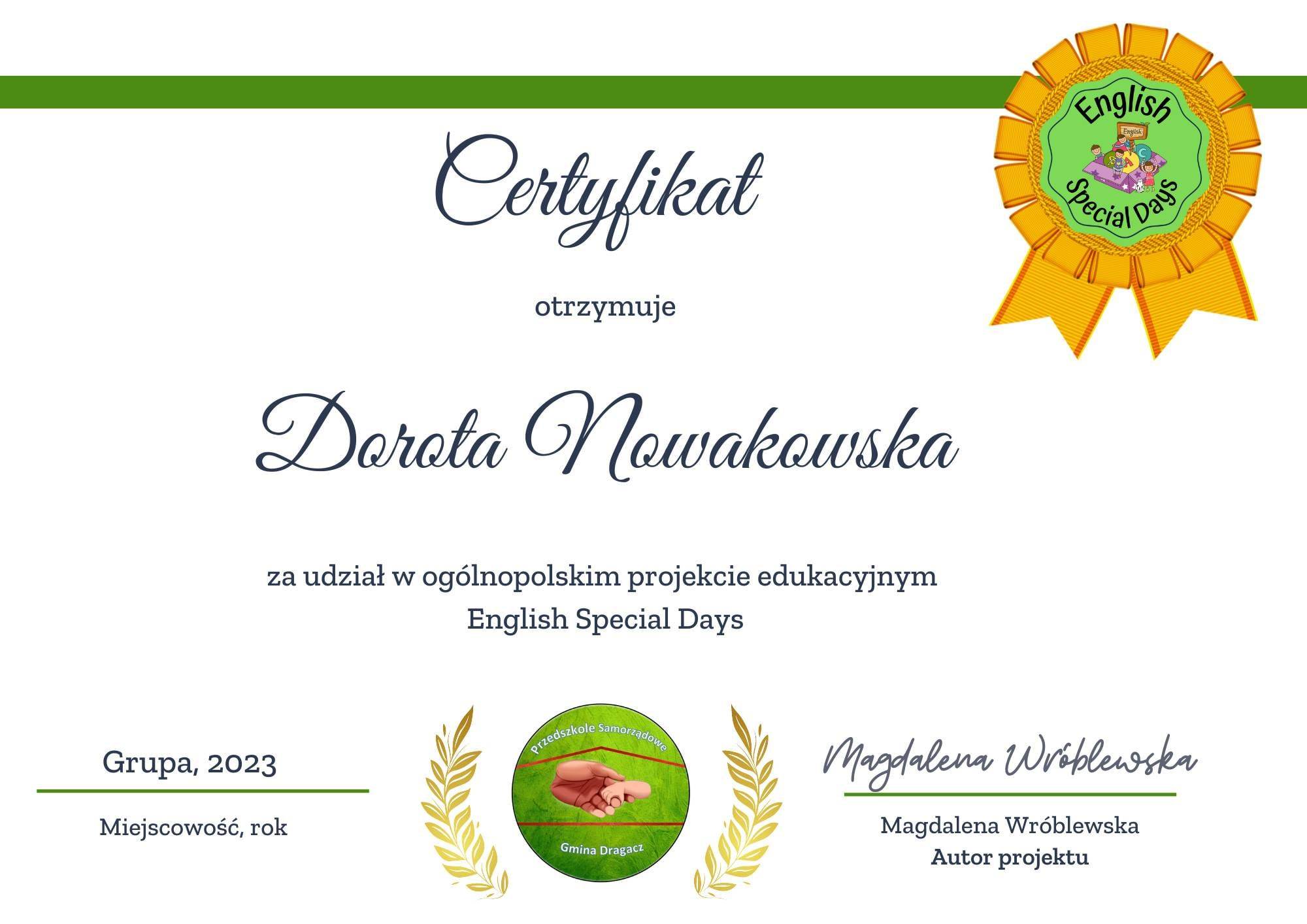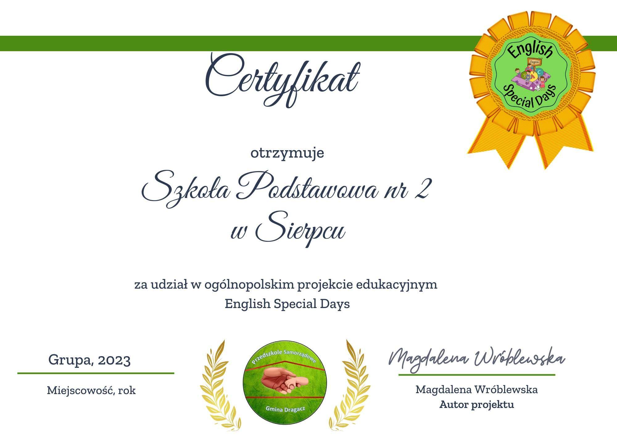 9.05.2023 r. zakończył się Ogólnopolski Projekt Edukacyjny „English Special Days” realizowany przez uczniów grup 0a i 0b. Celem projektu było budzenie zainteresowania językiem angielskim poprzez wprowadzenie na lekcjach scenariuszy zajęć dni nietypowych. Zapraszamy do fotorelacji przedstawiającej wybrane aktywności podejmowane w ramach projektu.