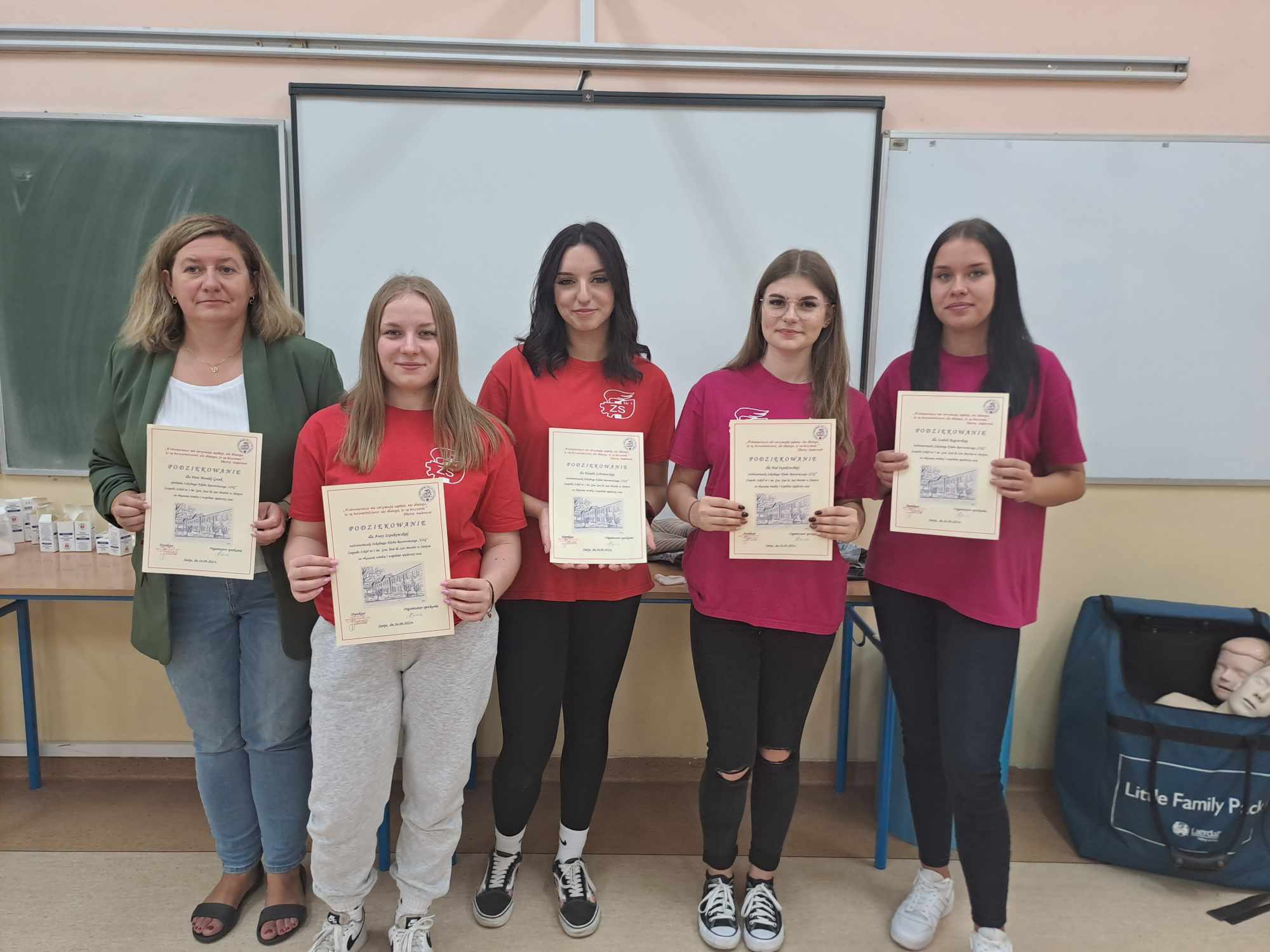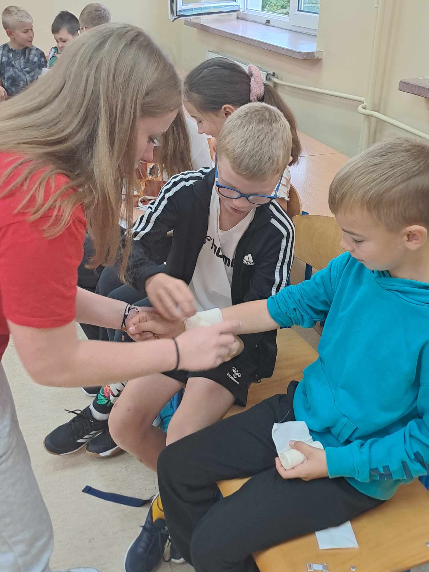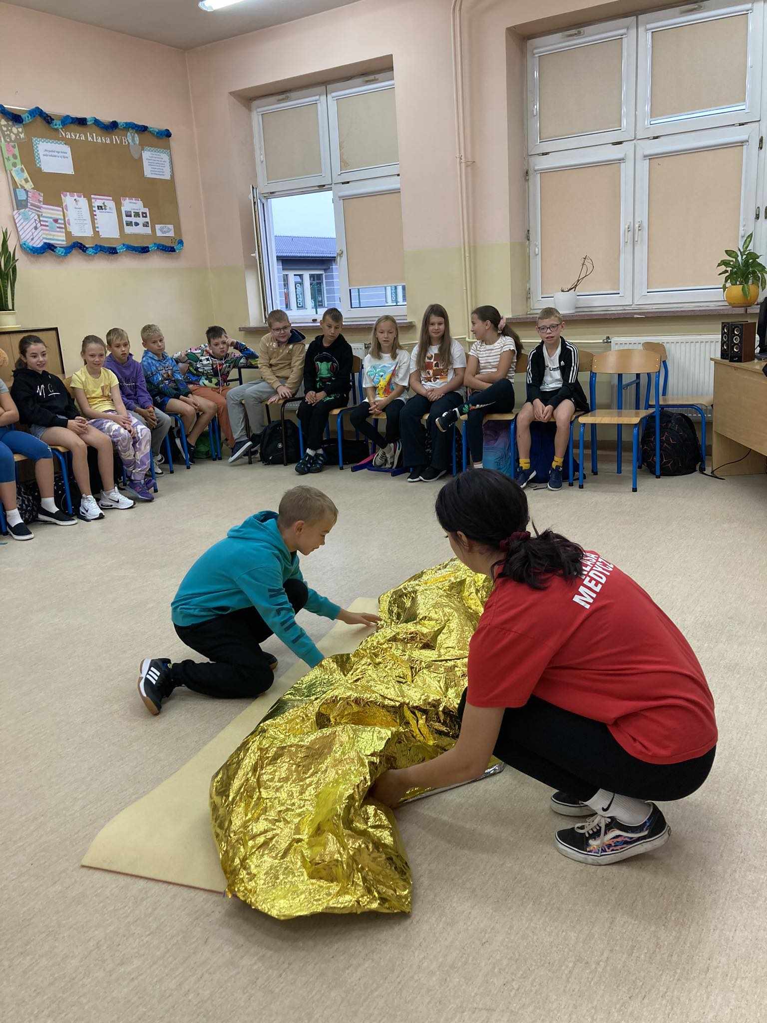 W dniu 26 września 2023 r. uczniowie klasy z IVb uczestniczyli w warsztatach dotyczących pomocy medycznej. Zajęcia przeprowadziły uczennice Zespołu Szkół nr 1 w Sierpcu. Szkolny Klub Ratowniczy “USG” zaprezentował, jak udzielać pomocy w sytuacjach zagrażających życiu i zdrowiu. Odegrano scenki rodzajowe.