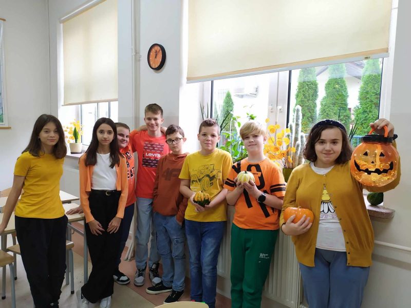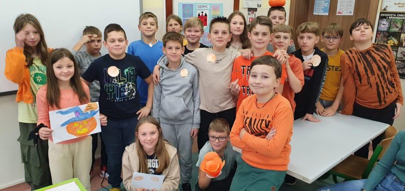 26 października uczniowie klas 4-8 obchodzili w naszej szkole DZIEŃ DYNI. Wspólne świętowanie spędziliśmy w pomarańczowych barwach. Uczniowie bardzo chętnie zaangażowali się w różne aktywności. Dziękujemy za dynie ozdobne – te z ogródka oraz zrobione własnoręcznie różnymi technikami plastycznymi.