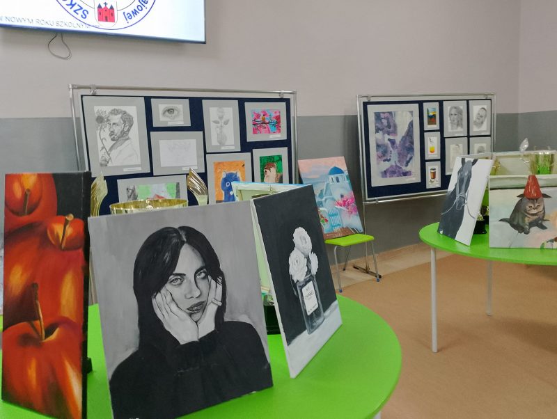 Dnia 27 października 2023 roku w naszej szkole odbyła się wystawa prac plastycznych naszych zdolnych uczennic. Podziwialiśmy rysunki i obrazy: Kornelii Sinkiewicz 8b,