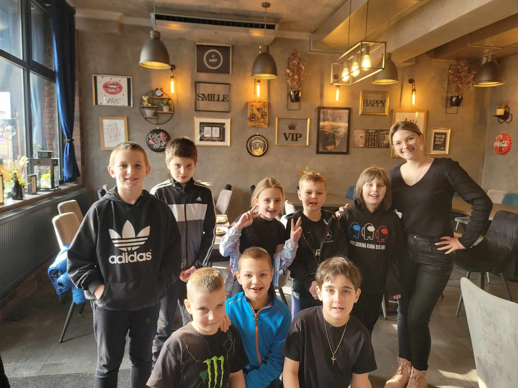 Bardzo dziękujemy właścicielowi restauracji p. Leszkowi Rożkowi za tę możliwość. Wielkie podziękowania kierujemy również dla całej obsługi za cudowną atmosferę oraz wspaniałą kulinarną przygodę! Spotkanie sprawiło nam wiele radości. Uczniowie wręczyli pracownikom drobny upominek oraz samodzielnie wykonane laurki.