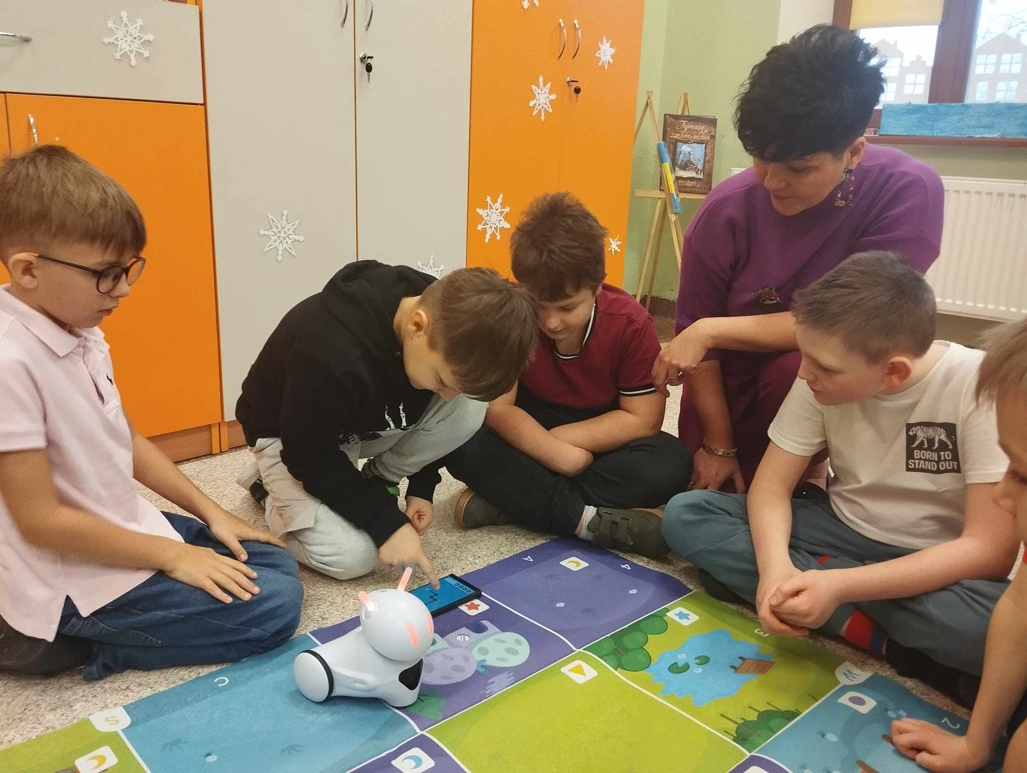 Uczniowie klasy 2b poznali podstawy programowania robota edukacyjnego Photon. Poprzez stawiane mu zadania, dzieci określały jego ruch, wydawanie dźwięku czy zmianę czułek na wyznaczony kolor. Zajęcia wywołały wiele emocji. Dowodem tego jest duże zaangażowanie i zainteresowanie, a także uśmiech na twarzach wszystkich uczniów.