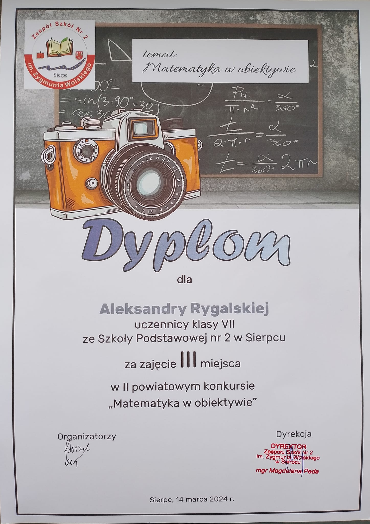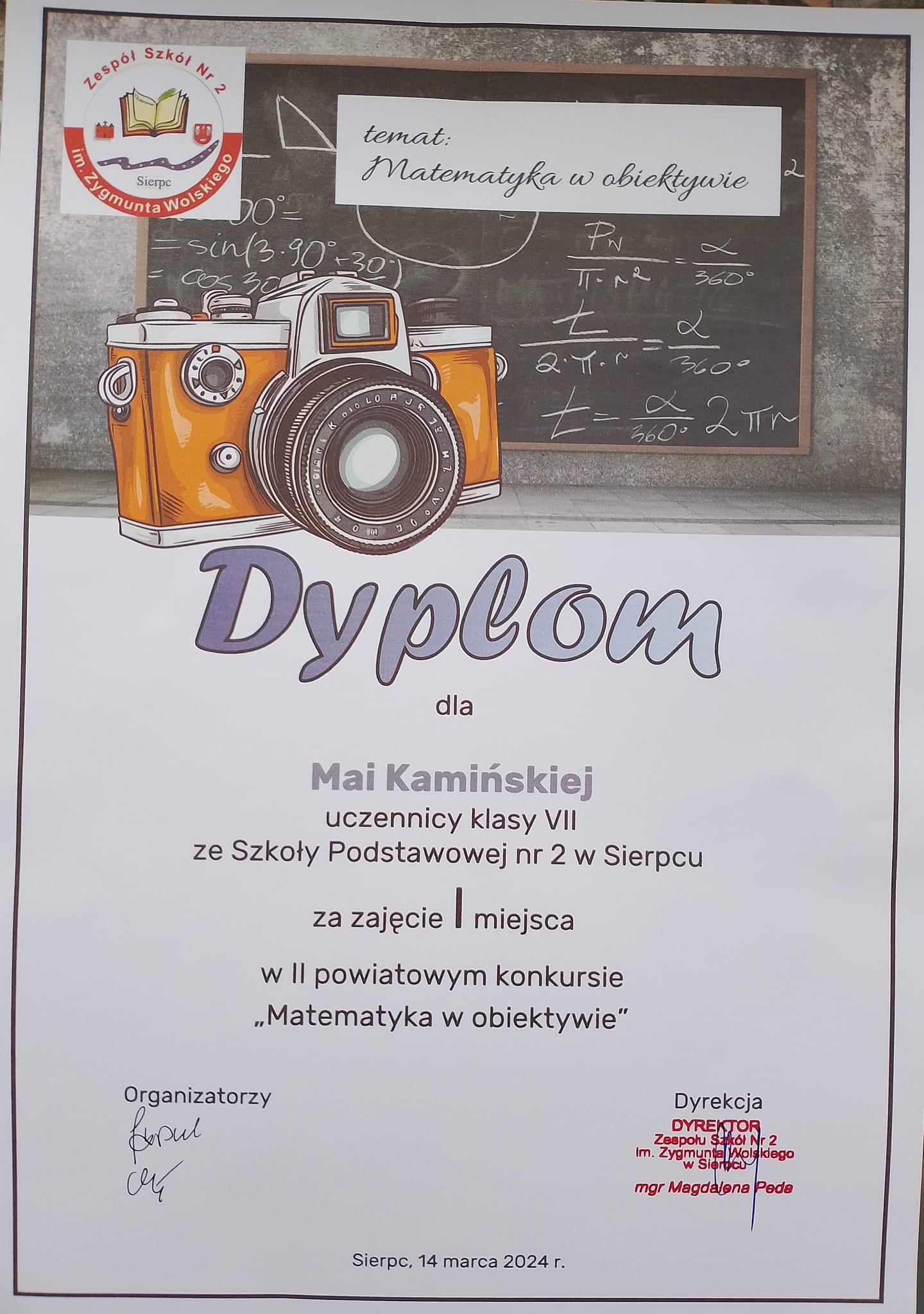 oraz podsumowanie II Powiatowego Konkursu Fotograficznego “Matematyka w obiektywie”, pod patronatem Starosty Powiatu Sierpeckiego.
