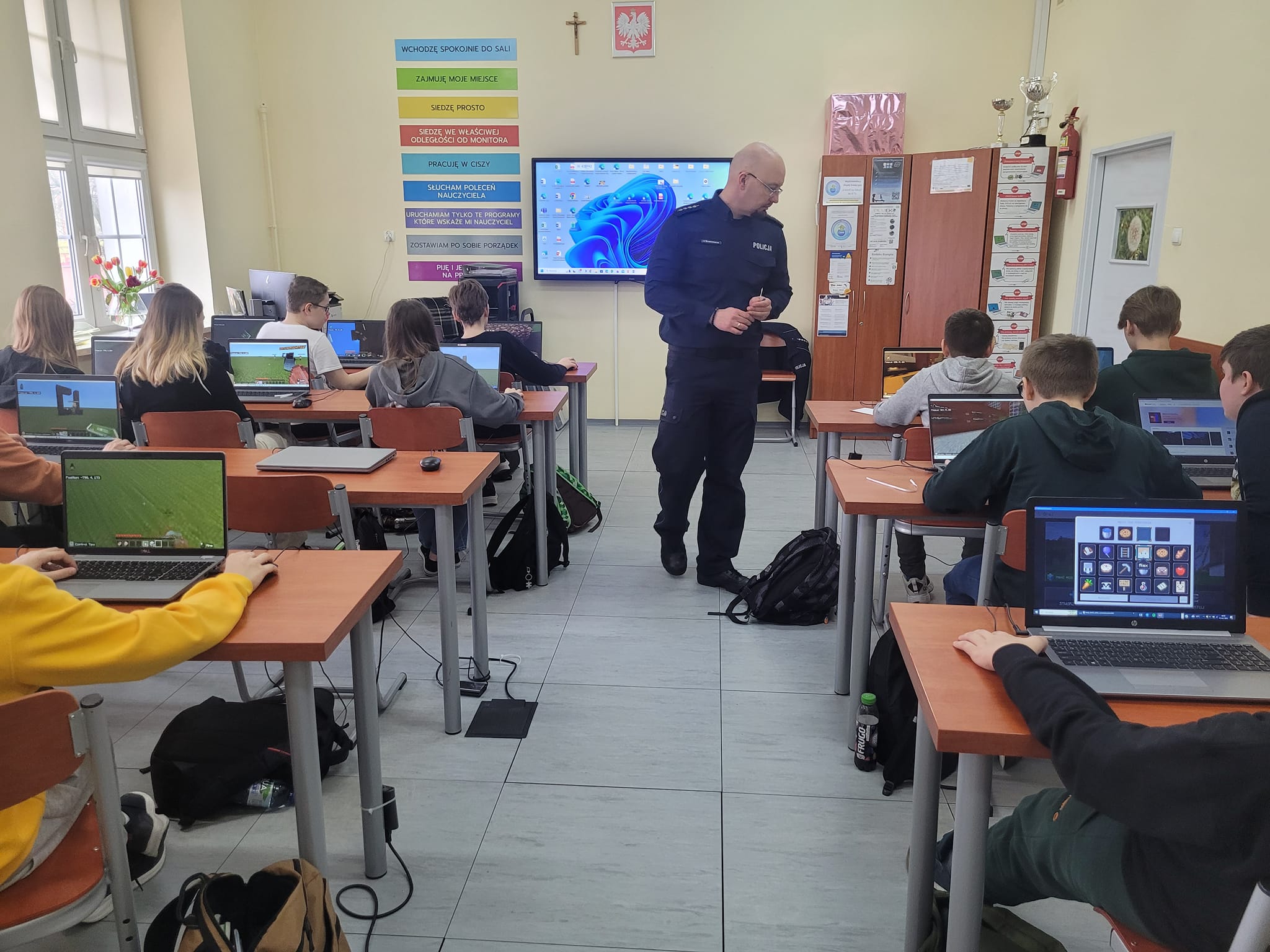 Zajęcia profilaktyczne w ramach projektu „Bezpieczeństwo w sieci – my to rozumiemy” poprowadził policyjny profilaktyk asp. sztab. Krzysztof Dobrzeniecki