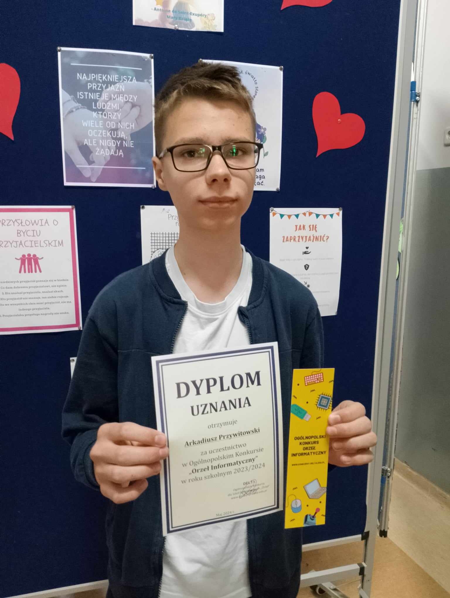 Miłosz Wadowski kl. 7d laureat, 13 miejsce w kraju