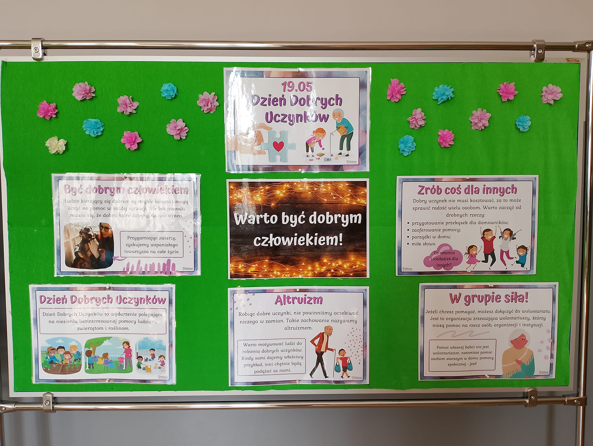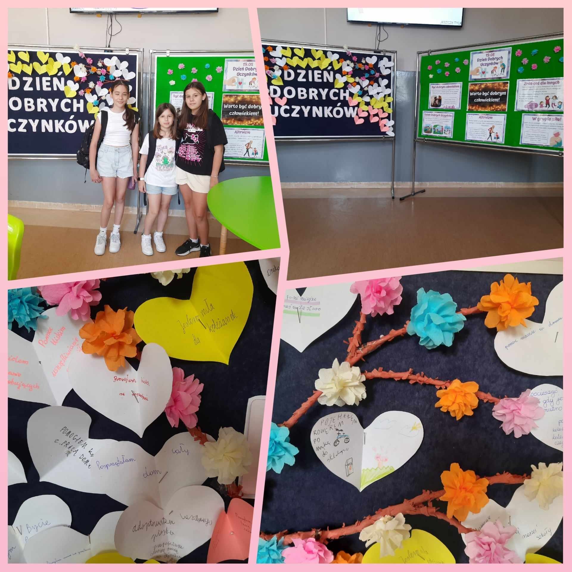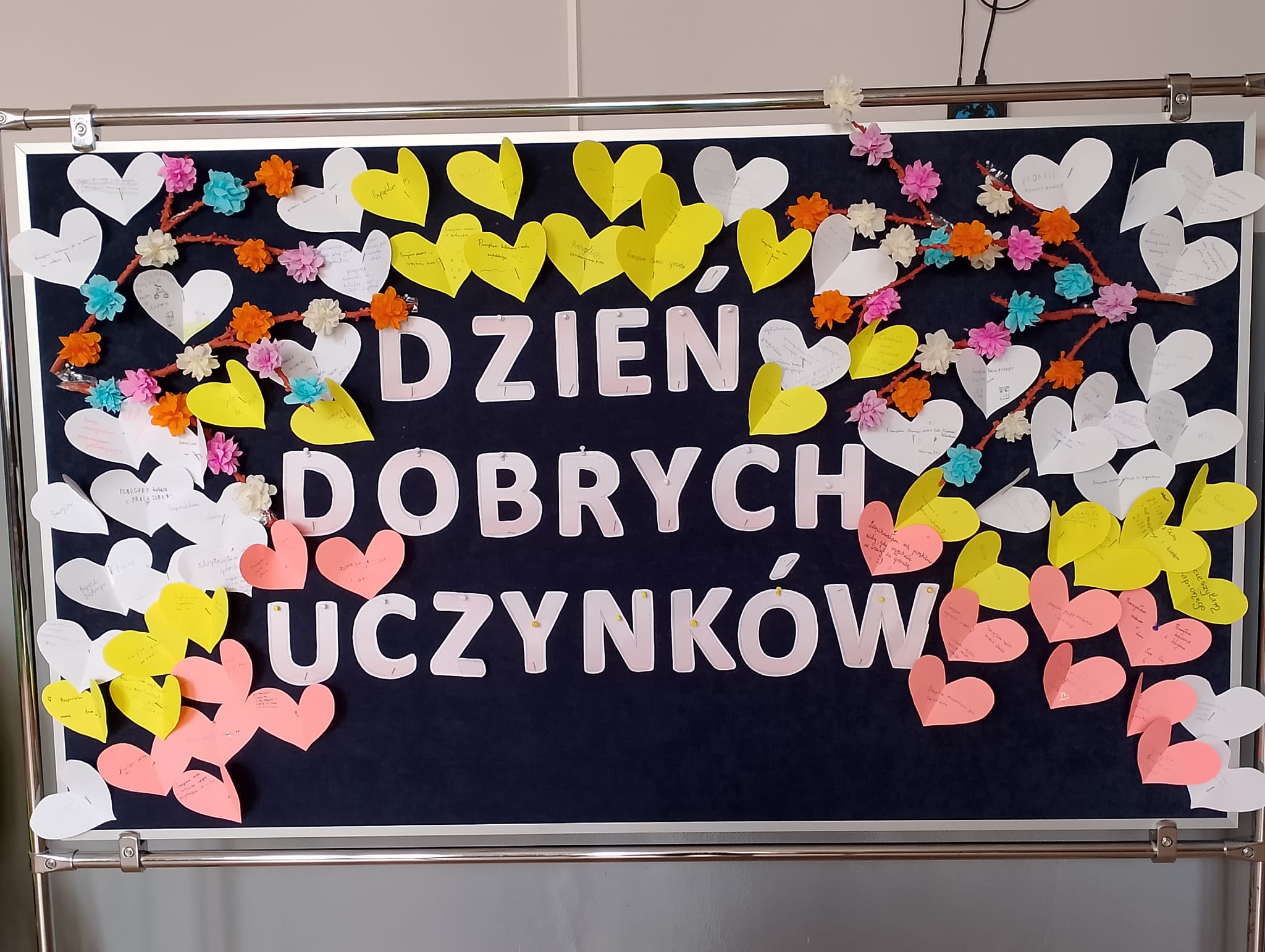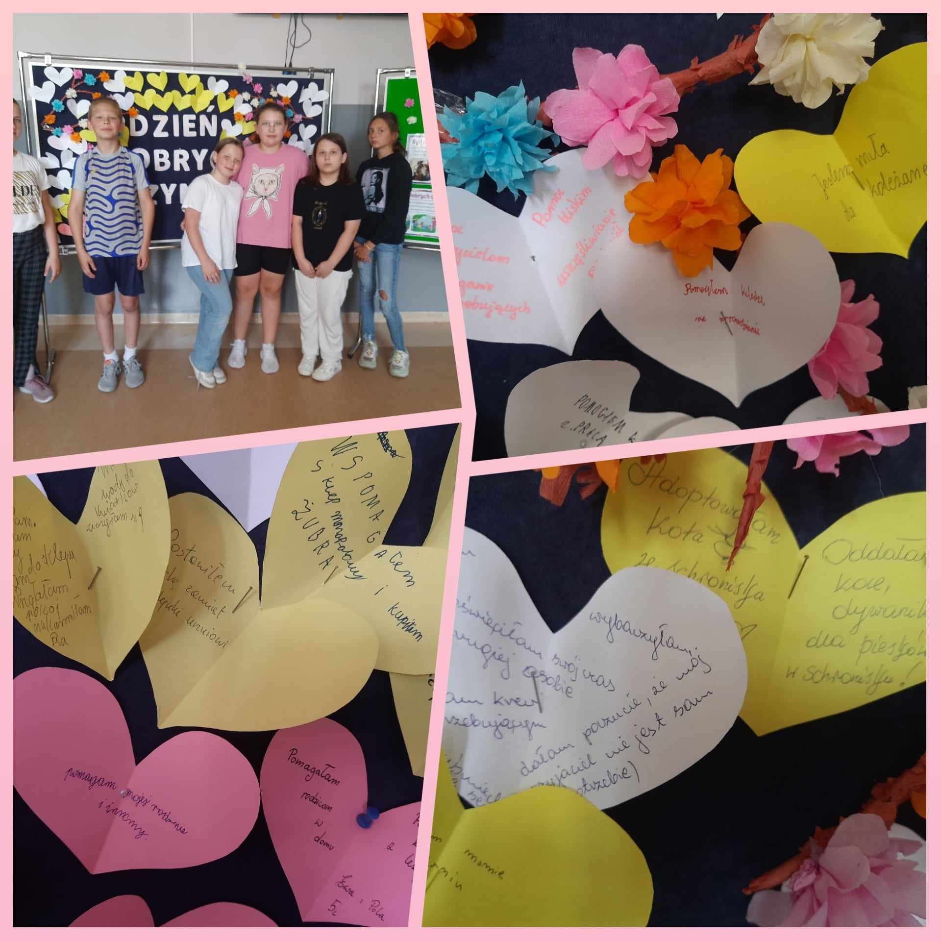 19 maja 2014 r. był Dniem Dobrych Uczynków. W naszej szkole obchodziliśmy go przez cały tydzień. Od 20 do 24 maja każdy uczeń oraz pracownik szkoły miał okazję na pochwalenie się swoim działaniem pełnym życzliwości. Karteczki w kształcie serduszek były rozdawane na przerwach, następnie lądowały na tablicy zamieszczonej na szkolnym korytarzu. Uczniowie chętnie dzielili się swoimi dobrymi uczynkami. Wszystkim osobom, które wzięły udział w akcji serdecznie dziękujemy.