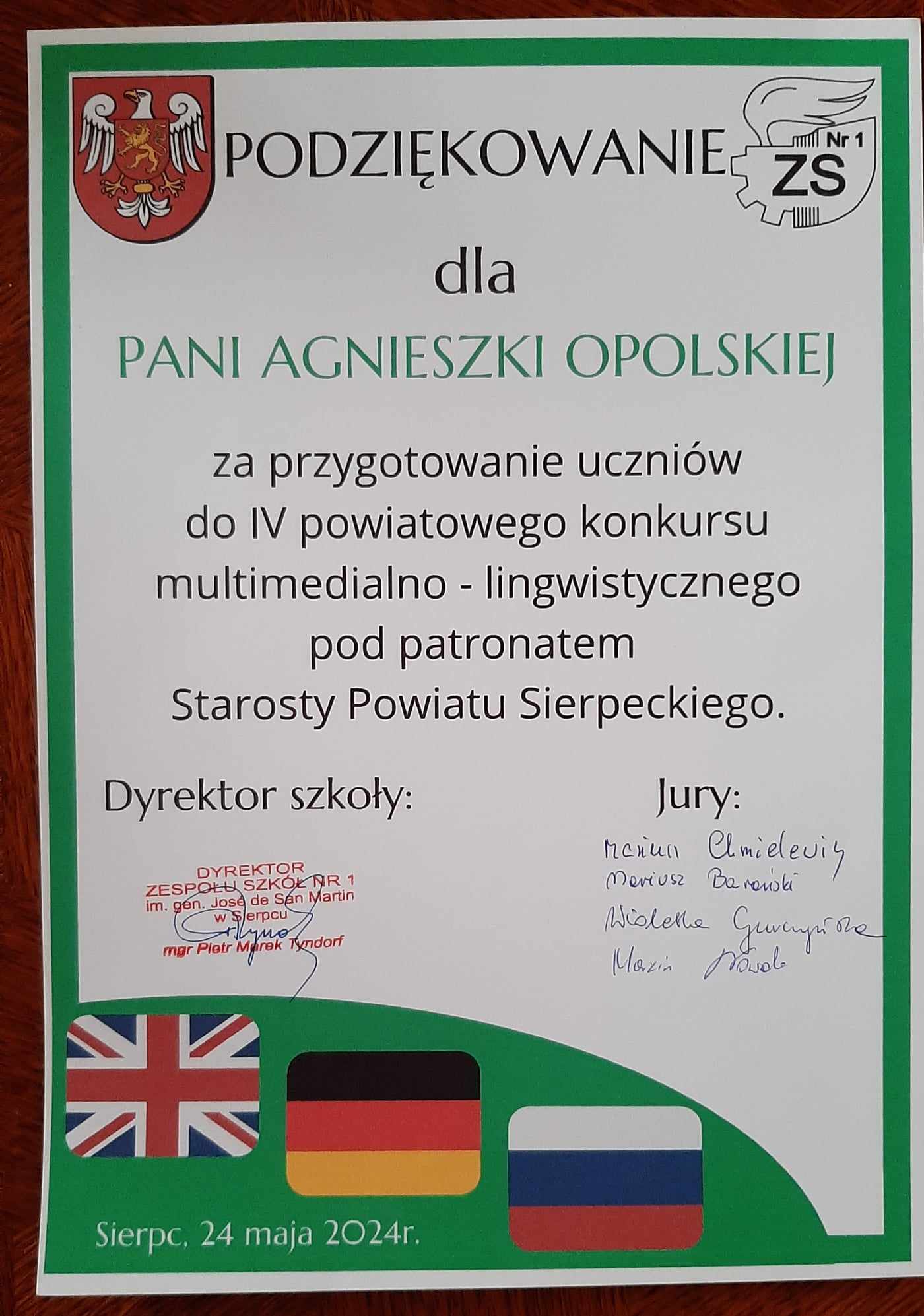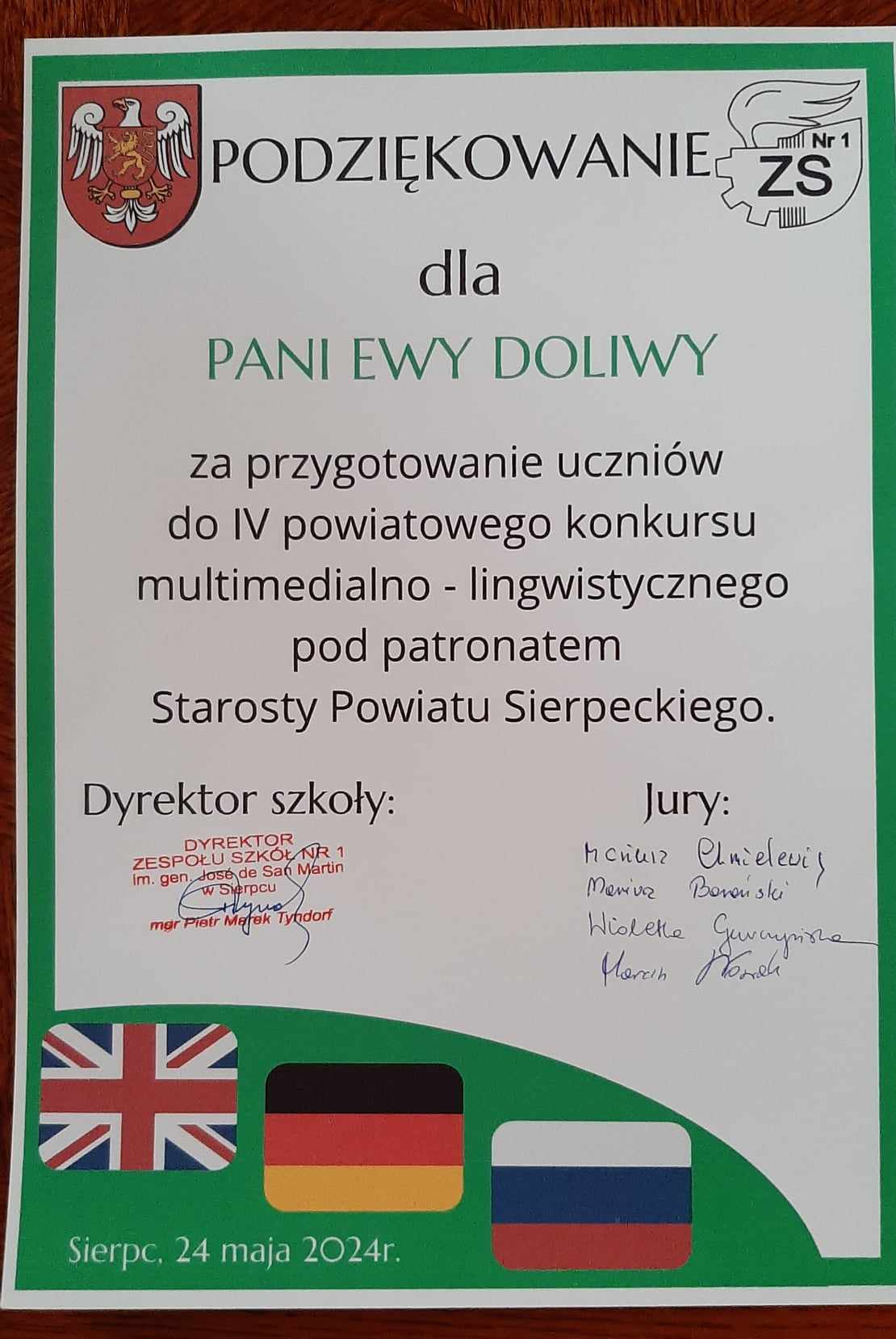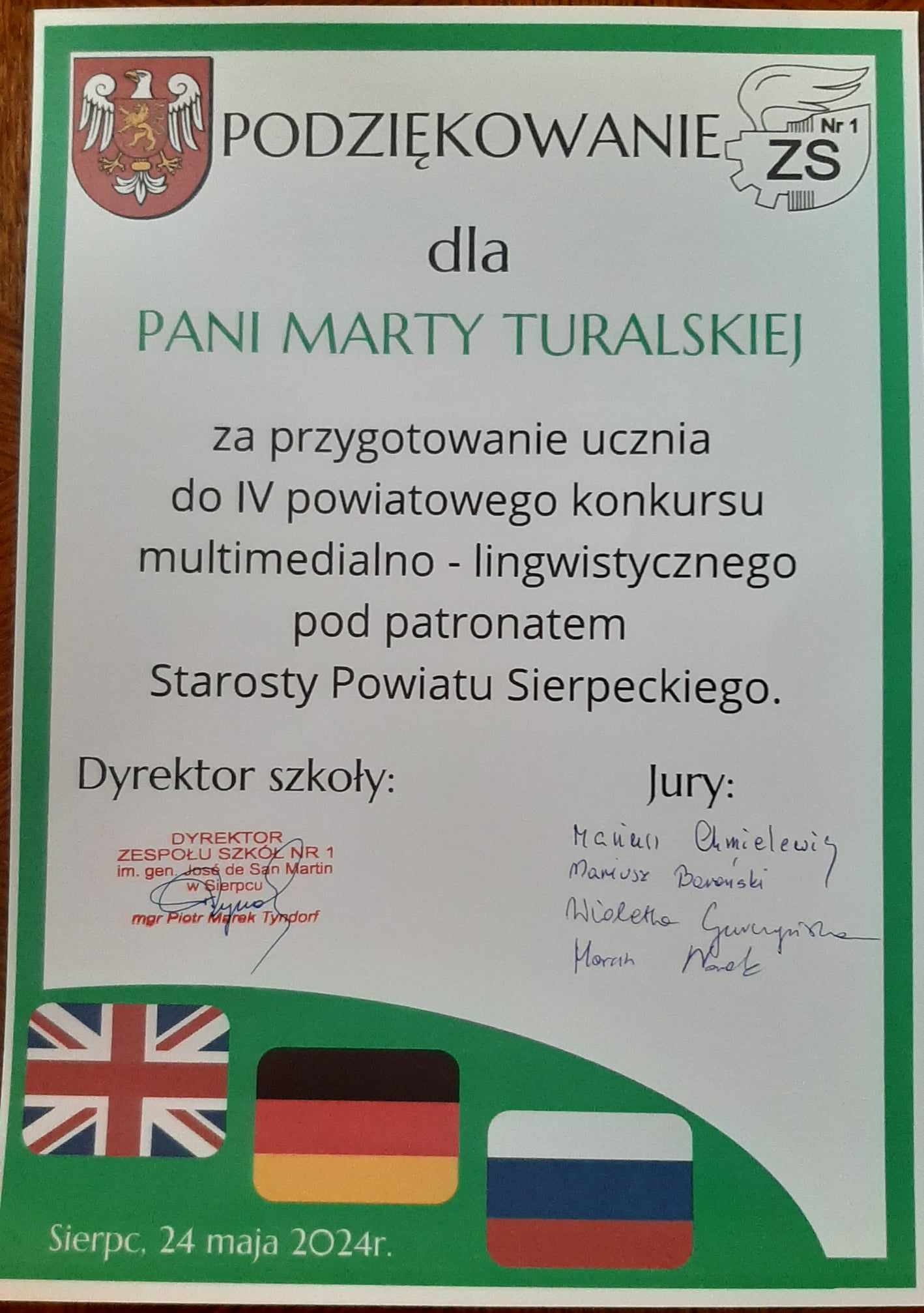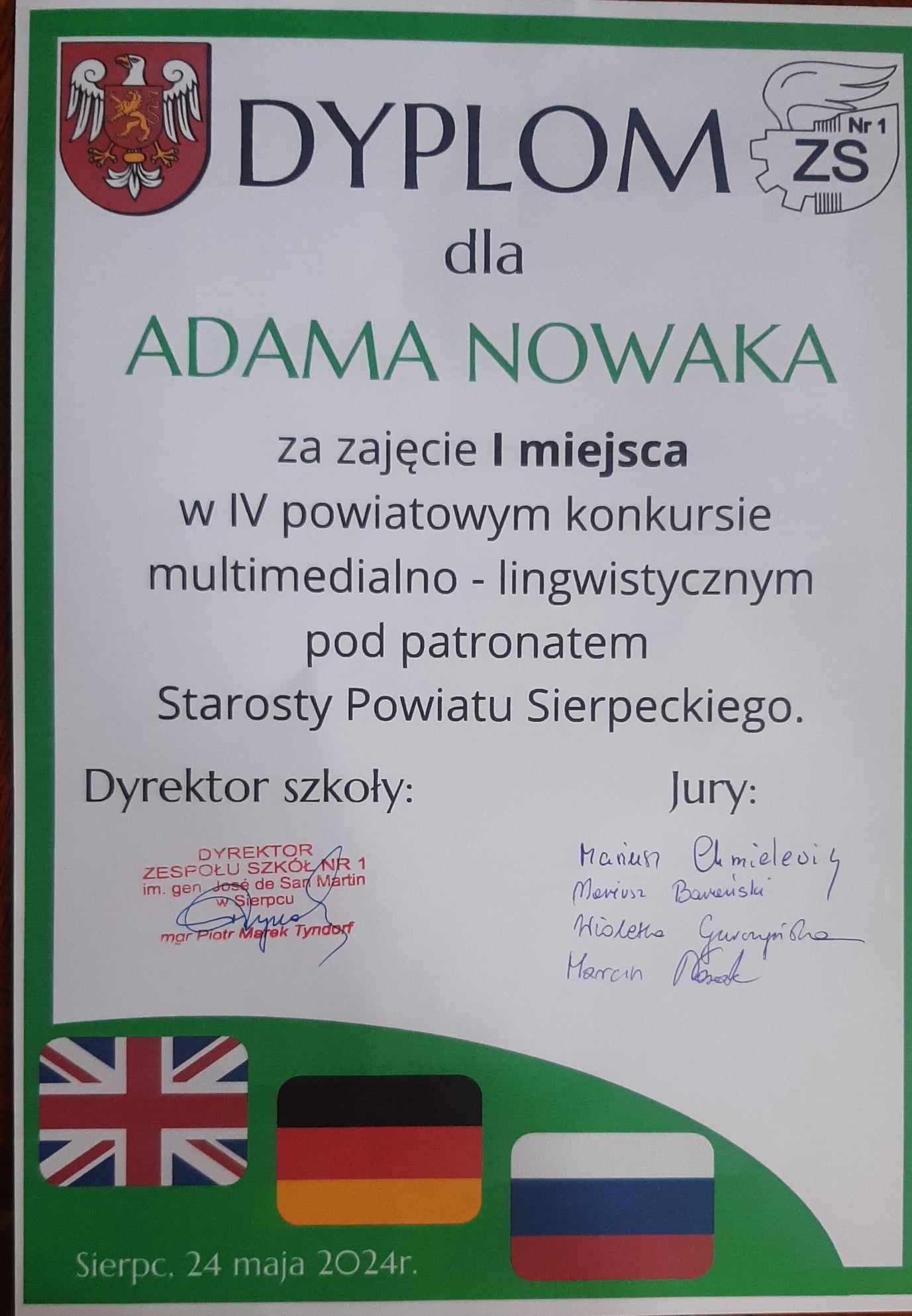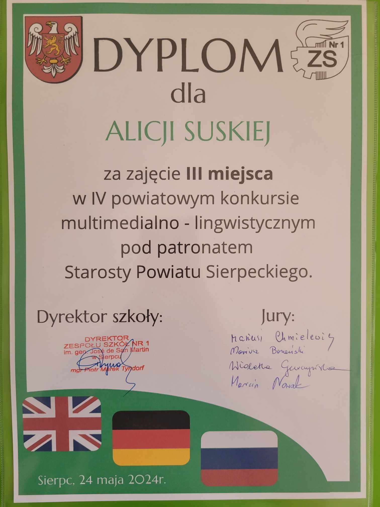 Nasze sukcesy w VI powiatowym konkursie  multimedialno- lingwistycznym  pod patronatem Starosty  Powiatu Sierpeckiego, którego organizatorem  był Zespół Szkół nr 1 im. gen. Jose de San Martin w Sierpcu