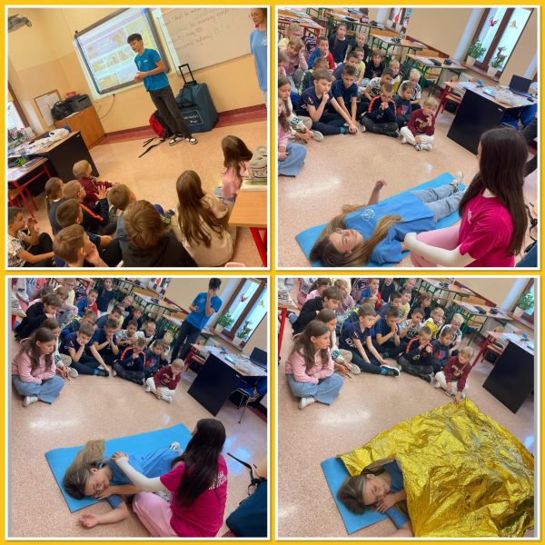 🩹🚑Udzielanie pierwszej pomocy jest naszym obowiązkiem i z tą niezwykle ważną tematyką należy oswajać już od najmłodszych lat.👭👬 Właśnie dlatego w klasie IIa odbyły się zajęcia z udzielania pierwszej pomocy przedmedycznej.🤕 Dzieci mogły poczuć się jak mali ratownicy.🚑🧑🏼‍⚕️👩‍⚕️ Poznały procedury zachowania się w sytuacjach zagrożenia życia.📉 Wiele emocji wzbudził pokaz czynności z zakresu resuscytacji wykonany na fantomie. Po części teoretycznej nadszedł czas na praktykę.🩹🩺 Dzieci pod czujnym okiem 👀 uczniów z Zespołu Szkół nr 1 w Sierpcu oraz ich opiekuna mogły samodzielnie wykazać się praktyczną znajomością udzielania pierwszej pomocy.🛟🚑 Zajęcia w naszej klasie były połączeniem zabawy z przekazaniem bardzo istotnej wiedzy, która może kiedyś uratować czyjeś życie❗️🛟