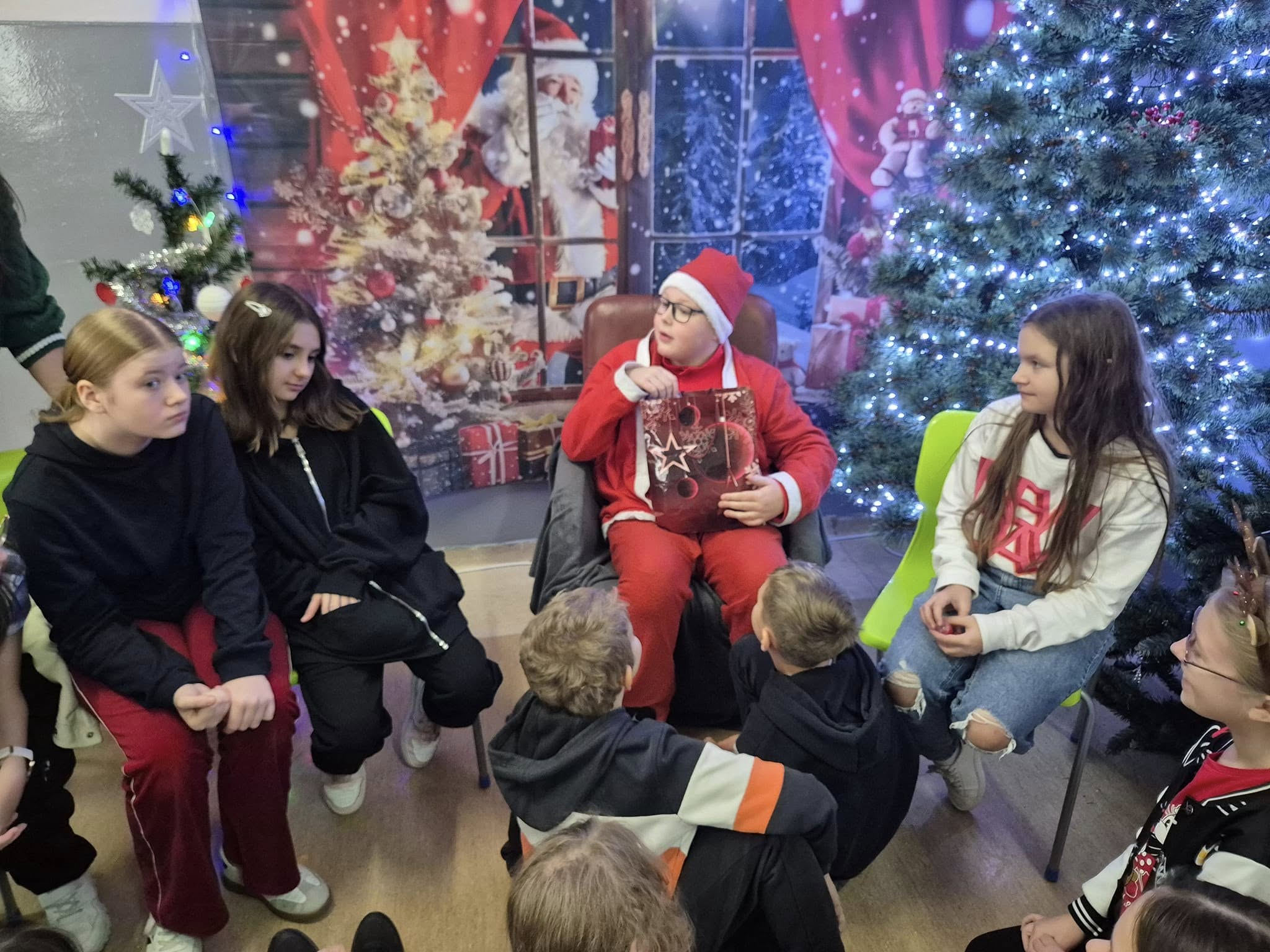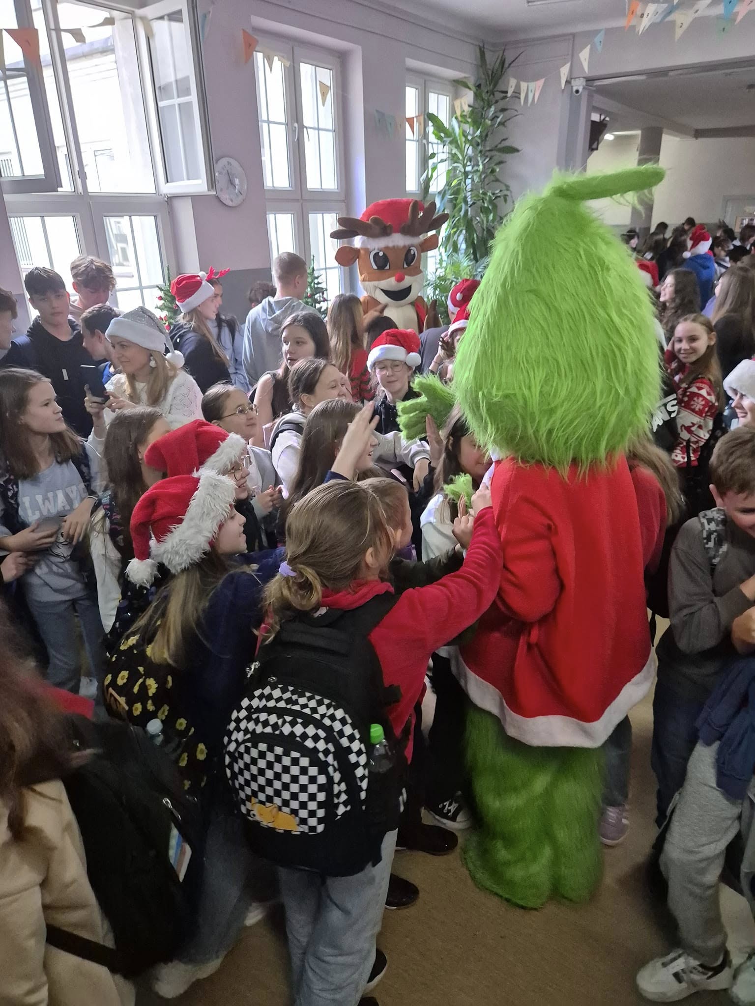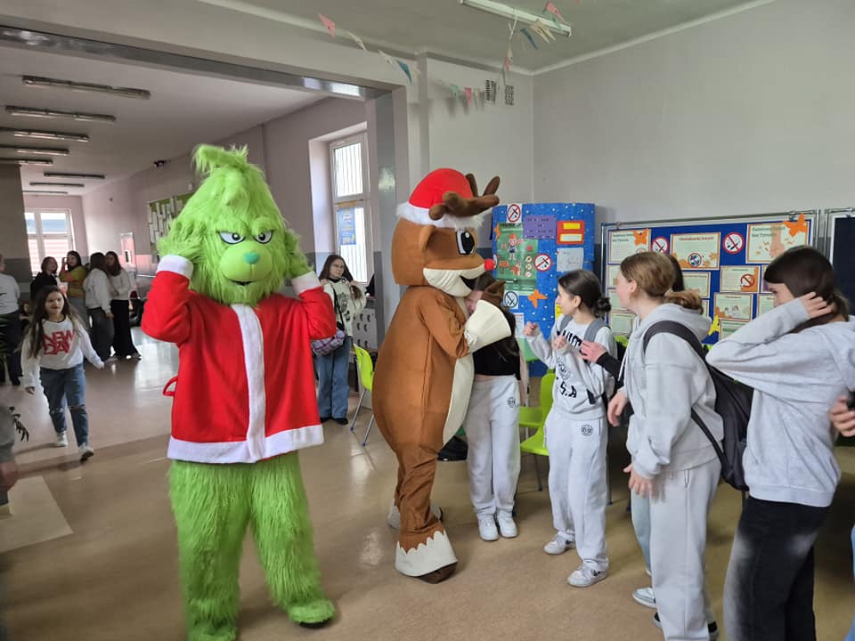 6 grudnia 2024 r. Samorząd Uczniowski zorganizował Mikołajki dla uczniów klas 4-8. Był to wyjątkowy dzień pełen radości i świątecznego nastroju. Szczególną uwagę uczniów i nauczycieli przyciągnęły zachwycające dekoracje, które stanęły na łączniku szkoły. Pięknie przystrojone miejsce wprowadziło wszystkich w magiczny klimat zbliżających się świąt. Podczas wydarzenia nie zabrakło świątecznych atrakcji, takich jak niespodzianka