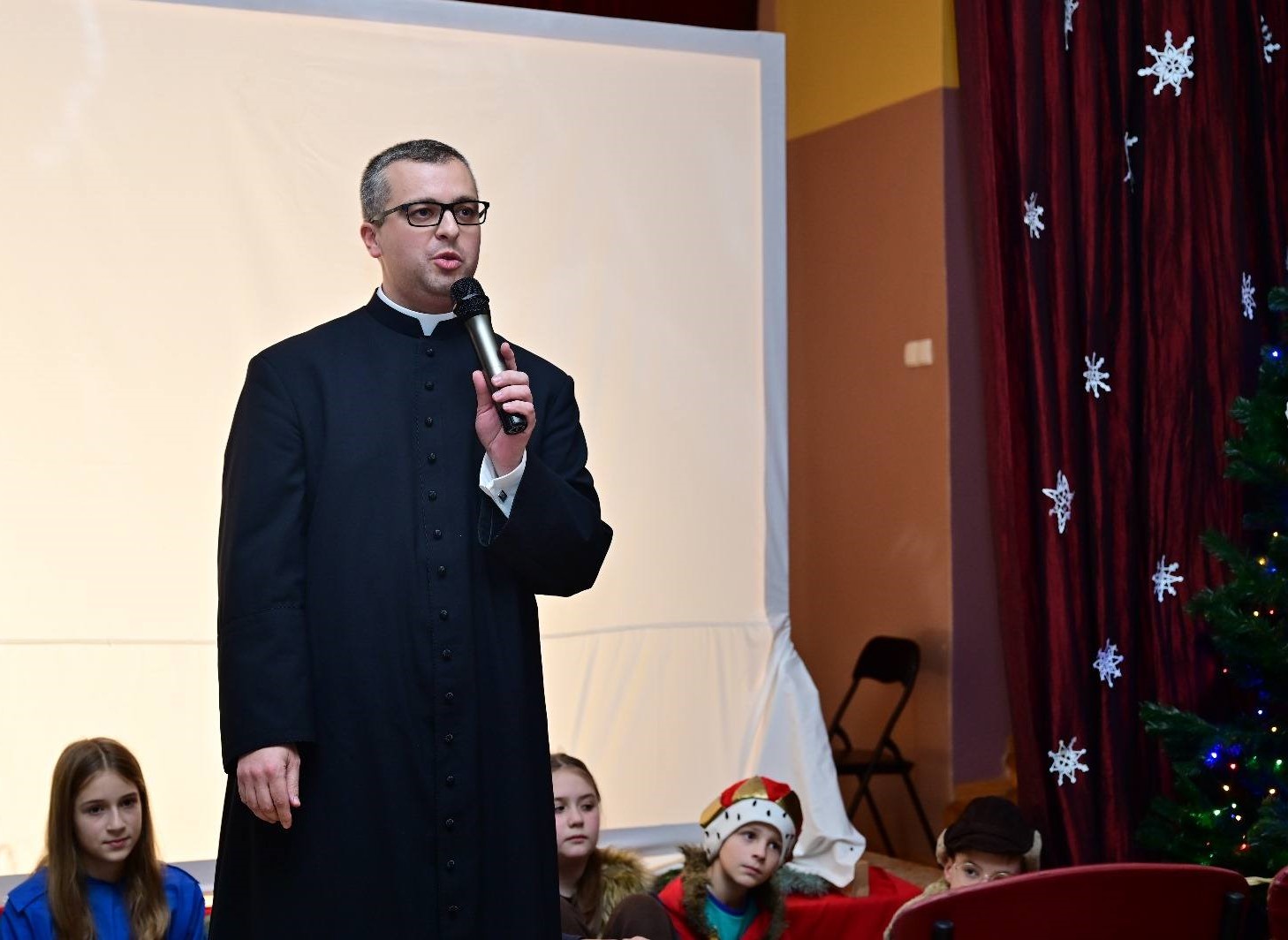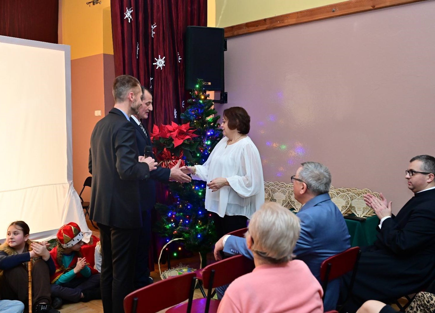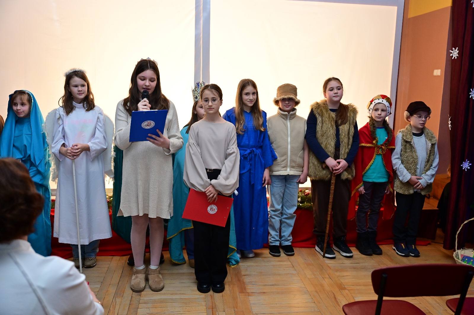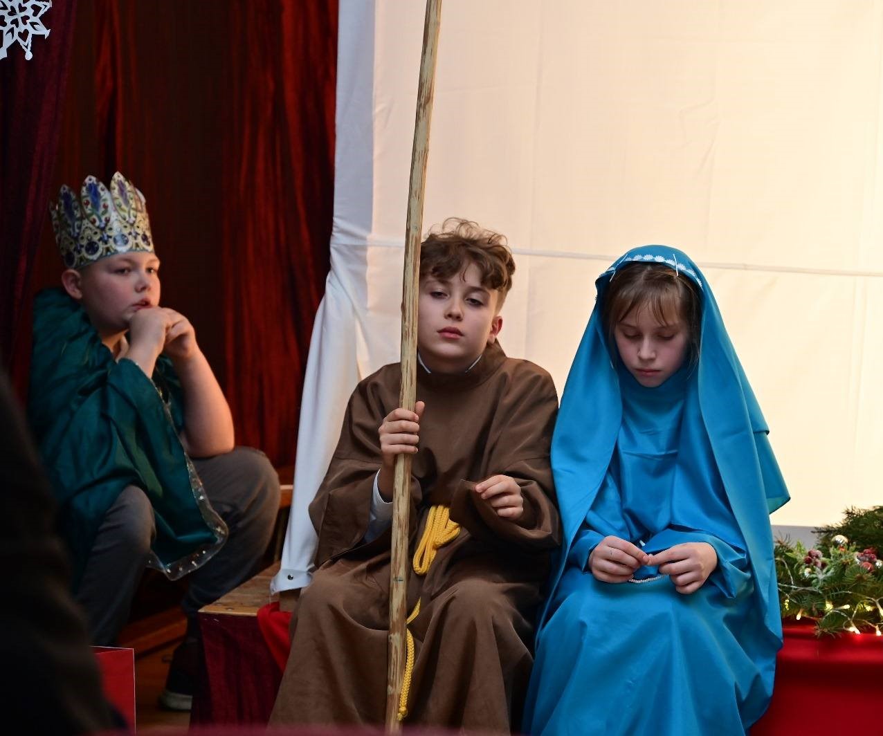 Scenerię tworzyły minimalistyczne, ale pełne wyrazu sylwetki, a całość dopełniała nastrojowa muzyka i śpiew zespołu wokalnego Wesołe Nutki. Przedstawienie wywołało zachwyt i wzruszenie, przypomniało o istocie świąt Bożego Narodzenia przygotowane przez panie katechetki: Beatę Okraszewską, Monikę Michalską i panią Aleksandrę Dołasińską.