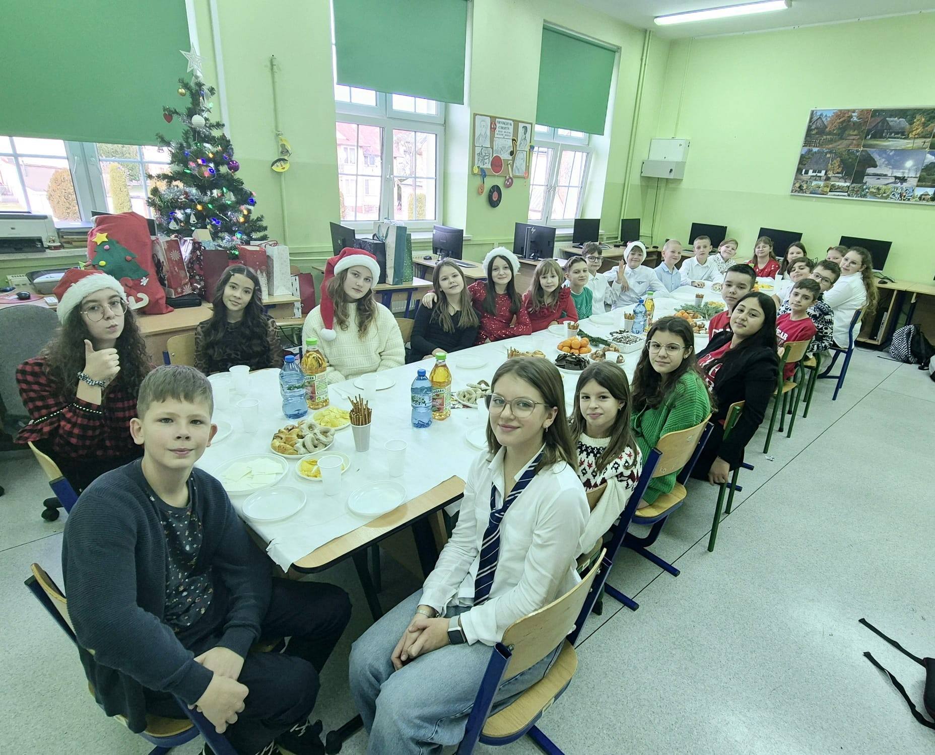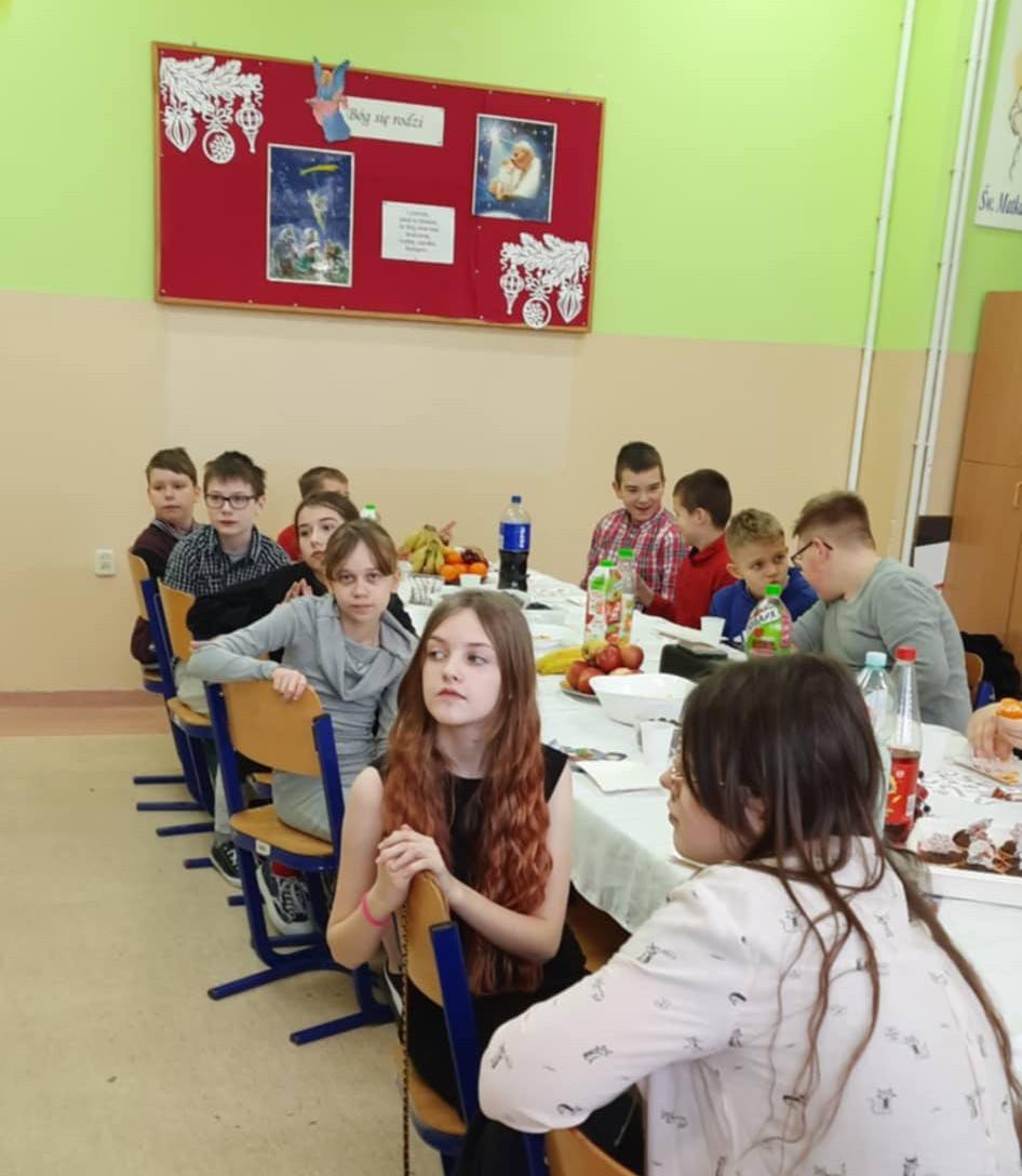 Są święta w naszym kalendarzu – najdroższe i najbliższe, co wywołują falę marzeń  najczulszych. Ten nastrój wszystkim się udziela. Ogarnia serca  radością  wielkich wzruszeń. Te ukochane przez wszystkich święta to  BOŻE NARODZENIE. Zgodnie z tradycją naszej szkoły przed świętami Bożego Narodzenia spotykaliśmy się na klasowych wigiliach. Dzięki pomocy rodziców uczniów we wszystkich klasach 4-8 przygotowano uroczysty poczęstunek. Wspólnie spędzony czas to chwile radosne, pełne wzruszeń i dobrych życzeń. Dzieląc się opłatkiem, obdarowując się drobnymi prezentami i śpiewając kolędy złożyliśmy sobie życzenia świąteczne. 🌟🎄