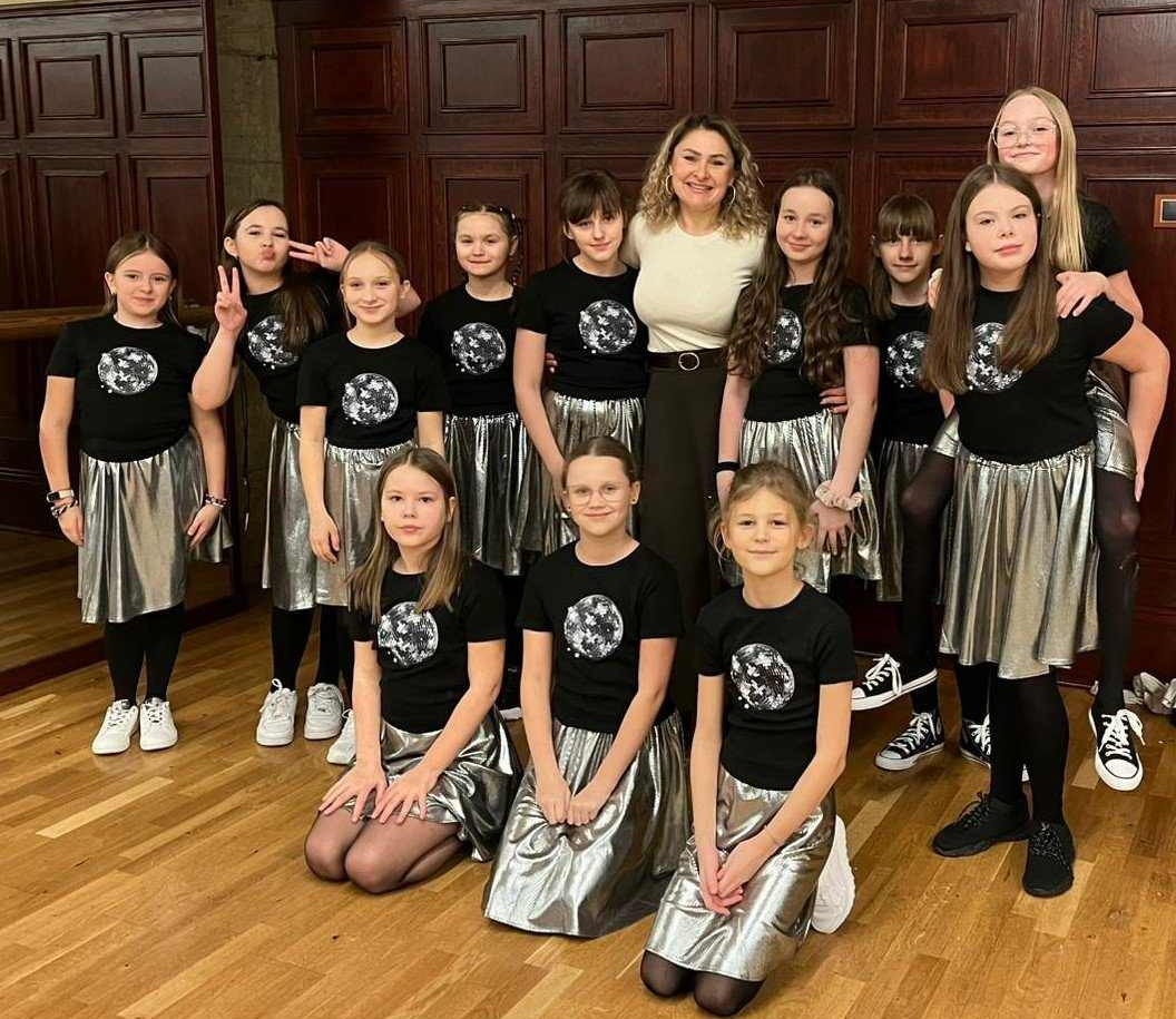Zespół taneczny Elfy z klasy 2 A , który rozgrzał scenę choreografią do piosenki “Criminals” Meghan Trainor, opracowaną pod opieką p. Weroniki Marcinkowskiej.