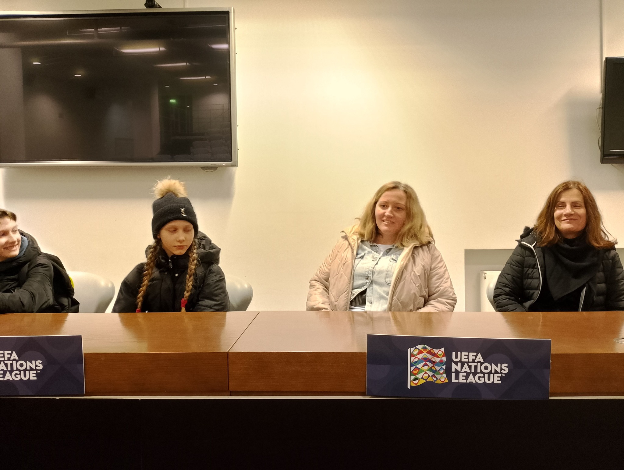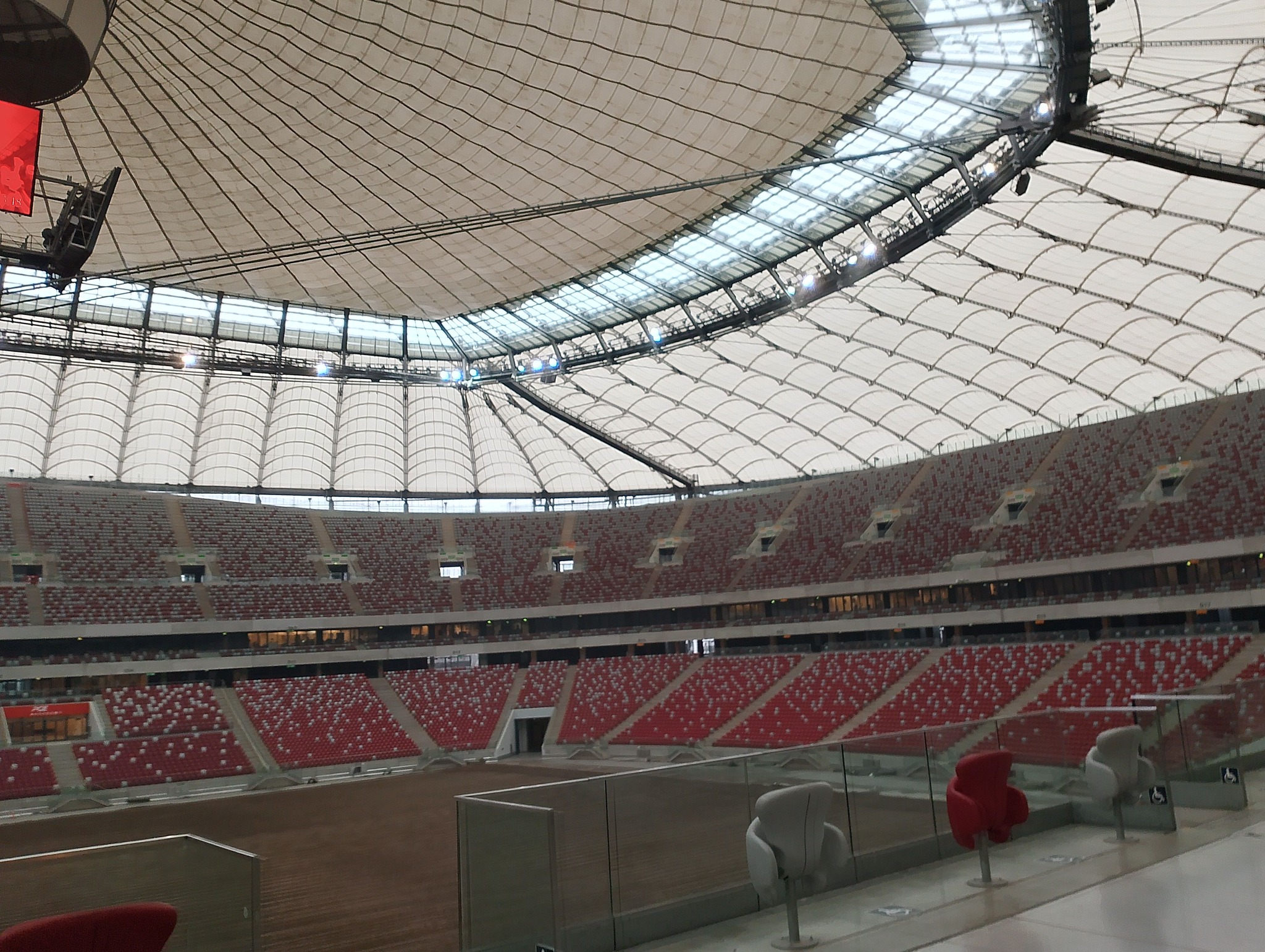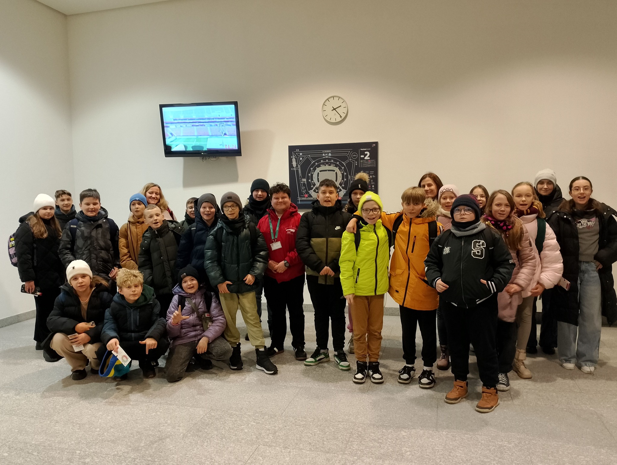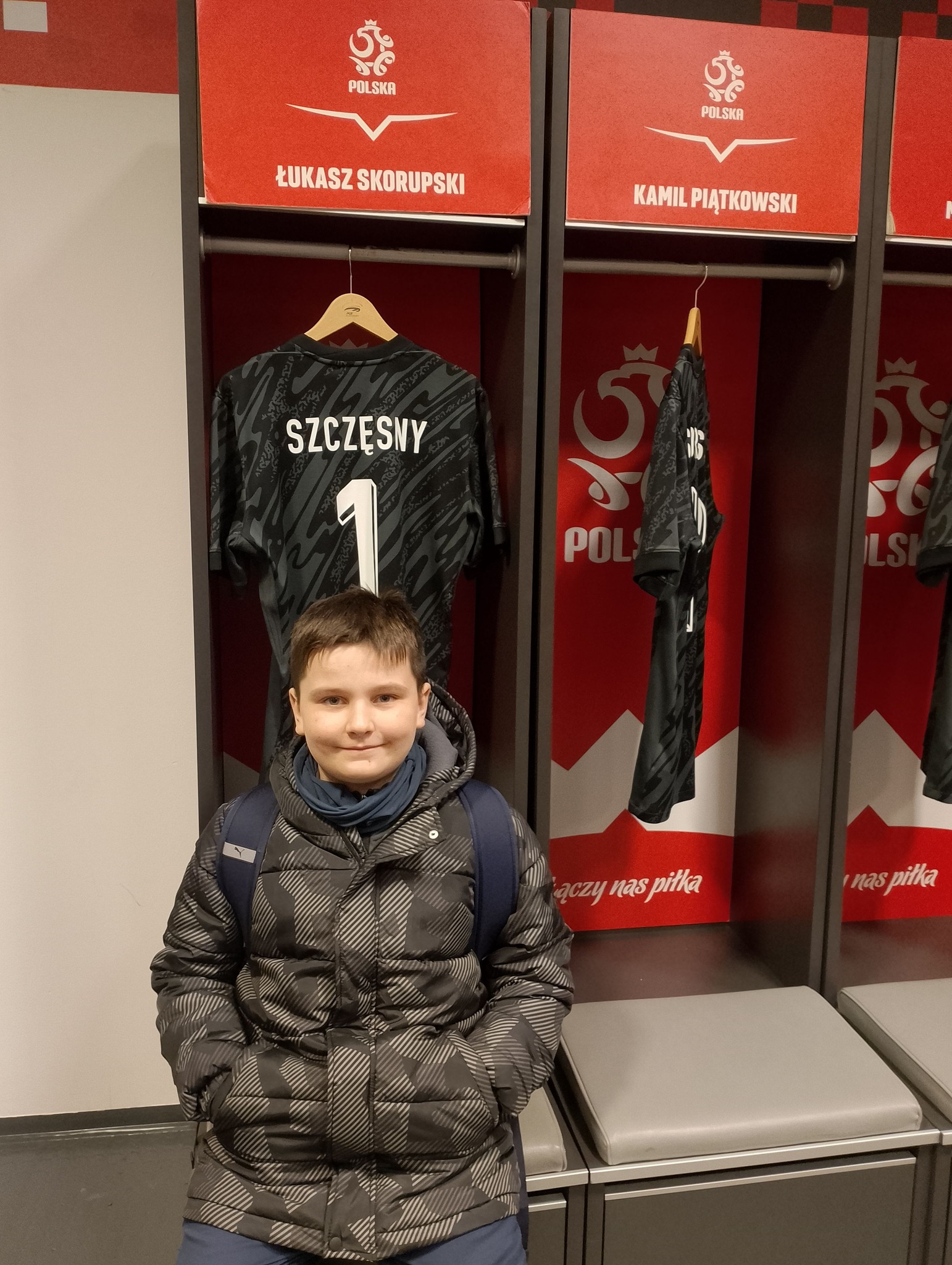 Pierwszym przystankiem była wizyta na największym stadionie w Polsce – PGE Narodowym. Uczniowie mieli okazję poczuć się jak prawdziwi piłkarze, oglądając szatnie zawodników oraz zasiadając na trybunach, gdzie podczas meczów zasiadają tysiące kibiców. Przewodnik opowiedział wiele ciekawostek na temat historii obiektu, wielkich sportowych wydarzeń oraz koncertów, które odbywały się na stadionie.