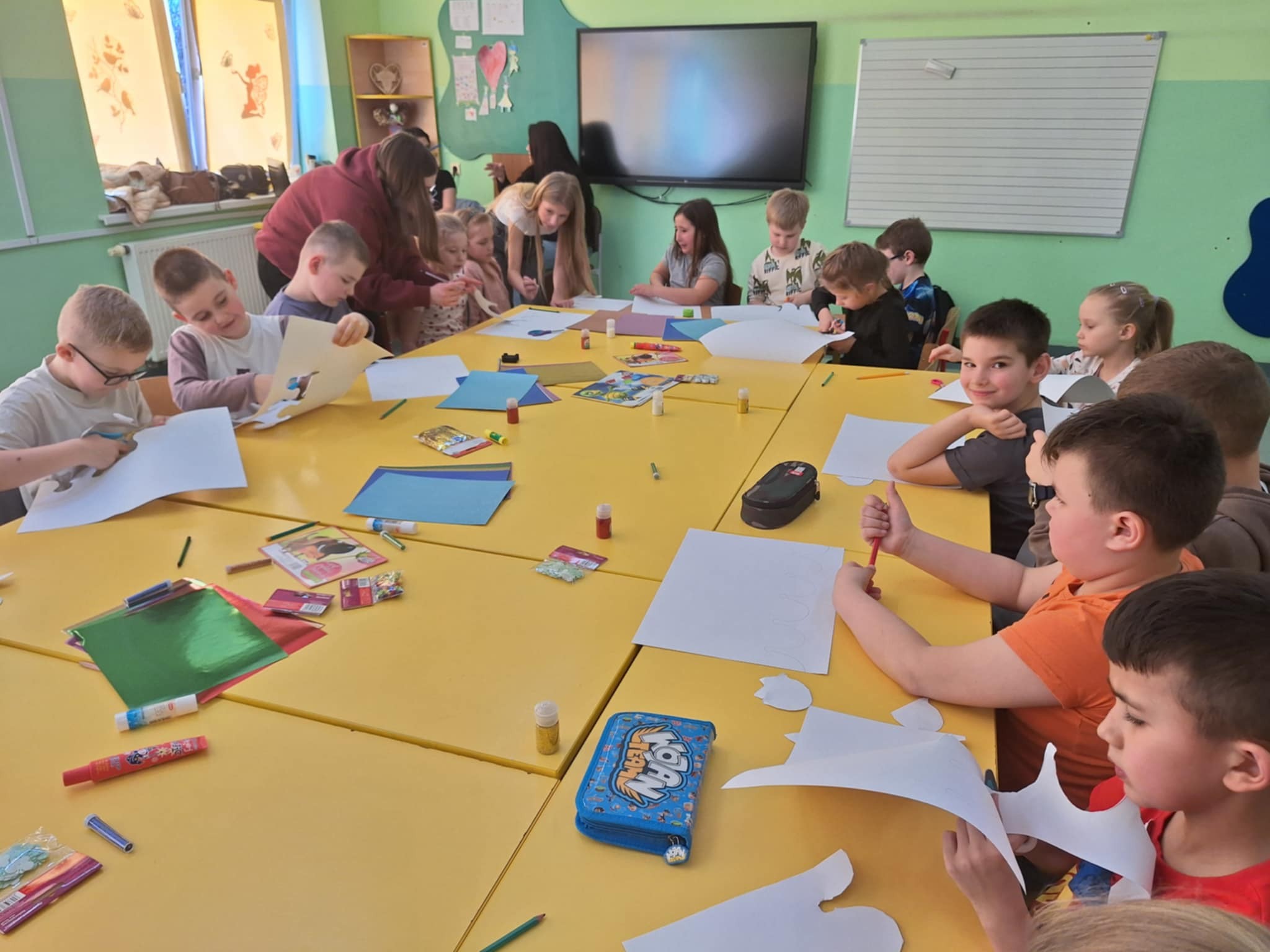 W czwartek, 3 kwietnia br., uczniowie klasy Ib uczestniczyli w warsztatach historyczno-plastycznych zorganizowanych w ramach projektu ,,1000-lecie Królestwa Polskiego”. 🌹 Dzieci dowiedziały się, kto został pierwszym koronowanym władcą Polski oraz samodzielnie wykonały wymarzoną koronę królewską. Warsztaty poprowadziły uczennice klasy VIIb – Iza Malewska i Maja Stępczyńska pod opieką pani Kingi Mieszczyńskiej i pana Andrzeja Danielewicza. Organizatorzy składają serdeczne podziękowania za miłą współpracę paniom Joannie Jankowskiej i Patrycji Zielińskiej.