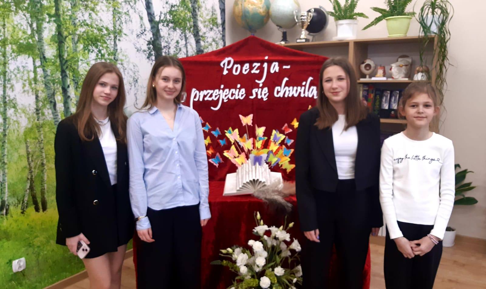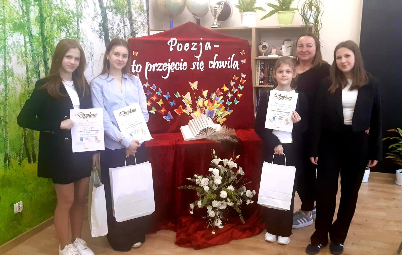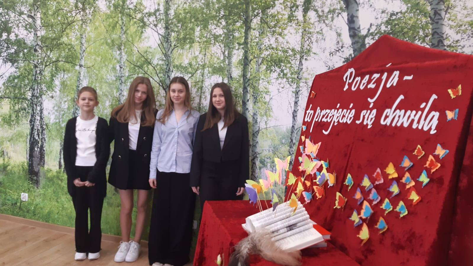 11 kwietnia 2025 r. cztery uczennice z klas IV–VIII reprezentowały naszą szkołę w II Powiatowym Konkursie Recytatorskim „Poezja – to przejęcie się chwilą”. Były to: Zuzanna Rudowska z klasy 4c, Pola Stankiewicz z klasy 6c, Natalia Michalak z klasy 8b oraz Kinga Obuchowicz z klasy 8b.