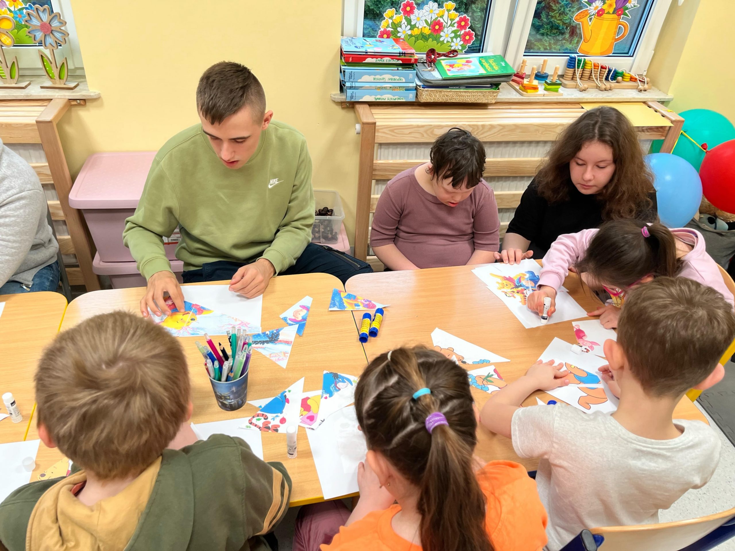 14 kwietnia 2025 roku uczennice klasy 8c – Michalina Paciuszkiewicz i Zosia Pacholec – działające w Szkolnym Klubie Wolontariatu „Jeden Drugiemu”, zorganizowały spotkanie z dziećmi SOSW w Sierpcu. Motywem przewodnim wydarzenia były przygody Kubusia Puchatka i jego przyjaciół. Dziewczynki czytały wybrane opowieści, prowadziły zabawy ruchowe, rozwiązywały z dziećmi zagadki oraz inspirowały je do działań plastycznych związanych z postaciami ze Stumilowego Lasu. Dzieci z dużym zaangażowaniem i radością uczestniczyły w zajęciach.