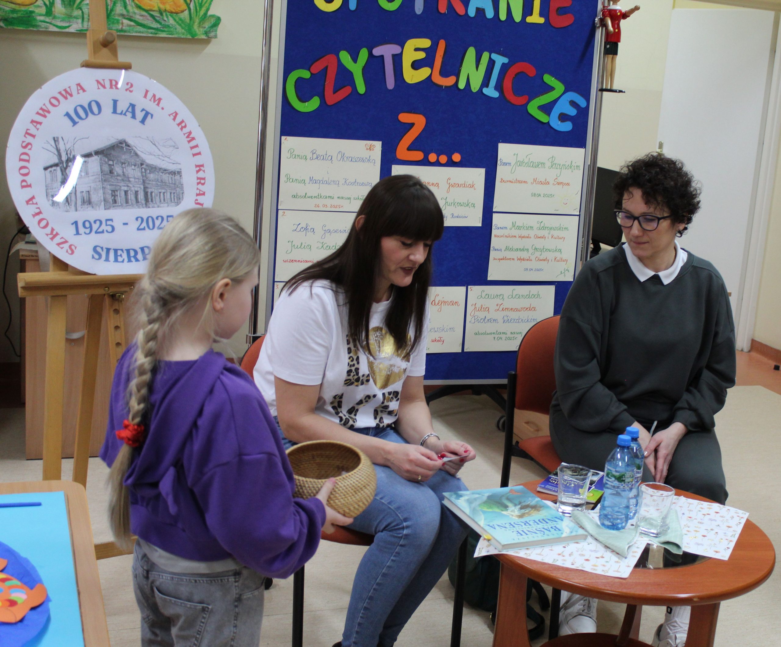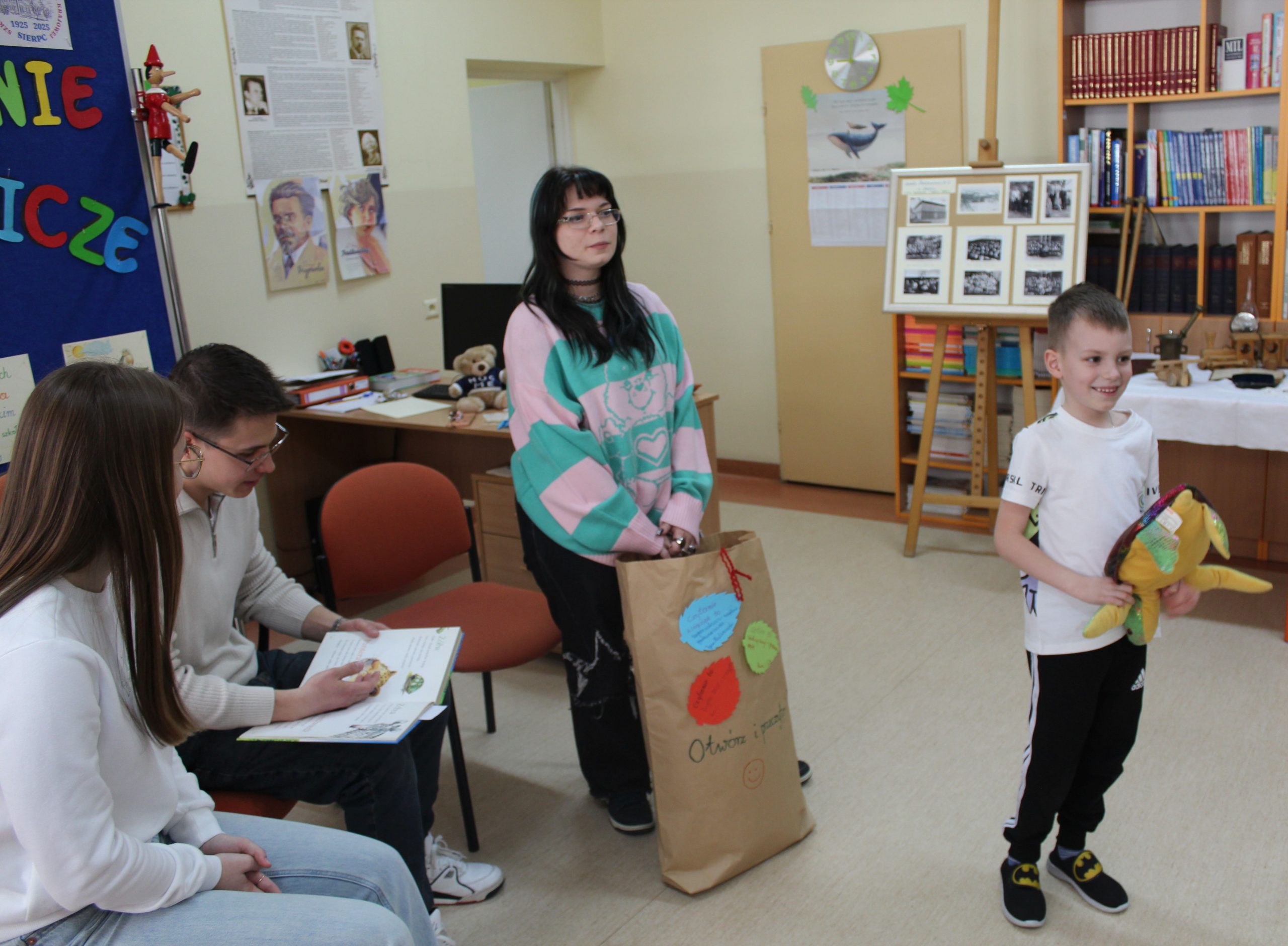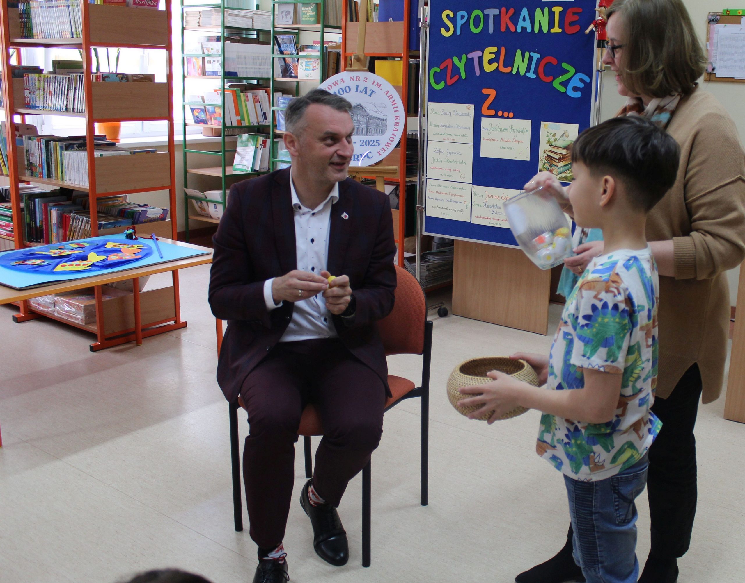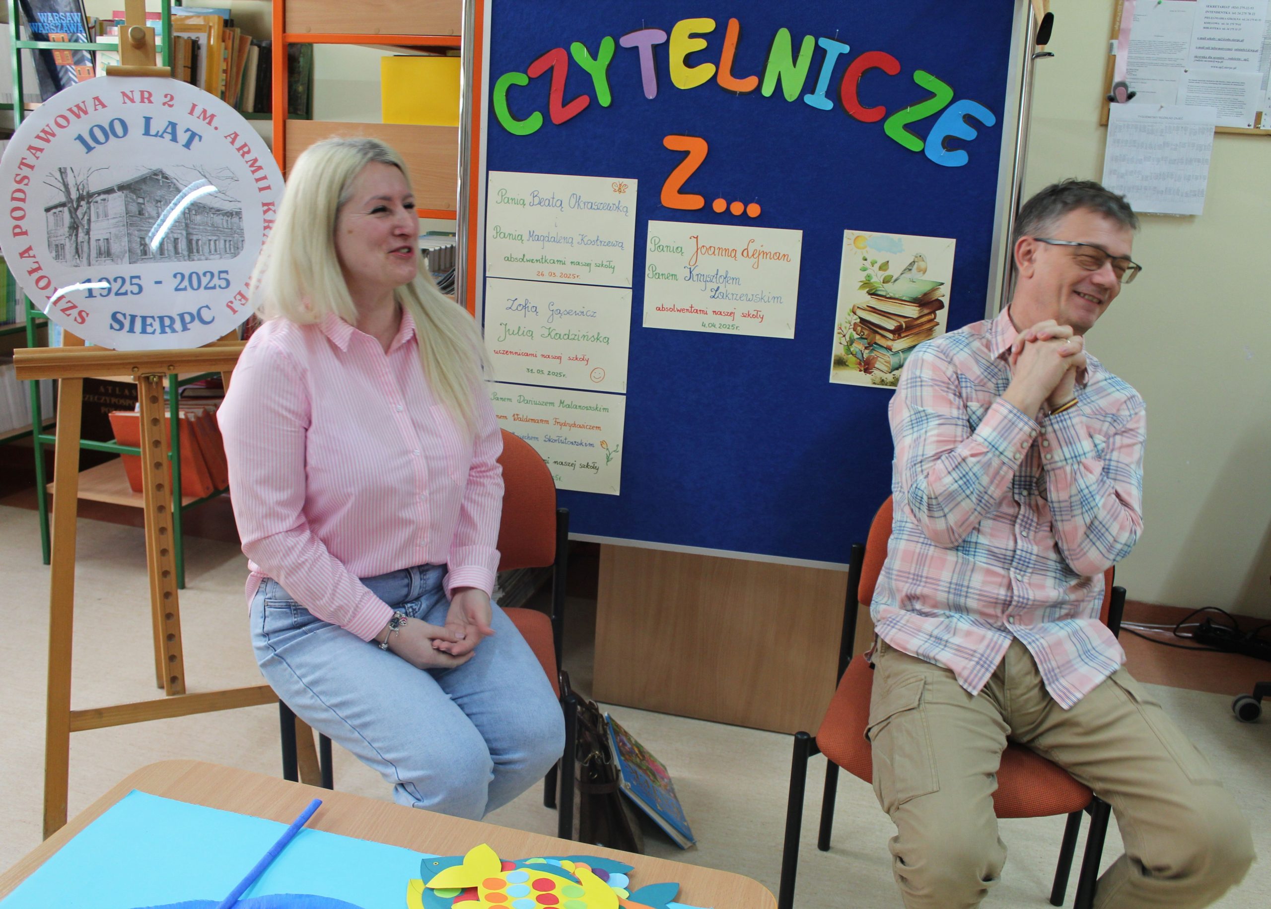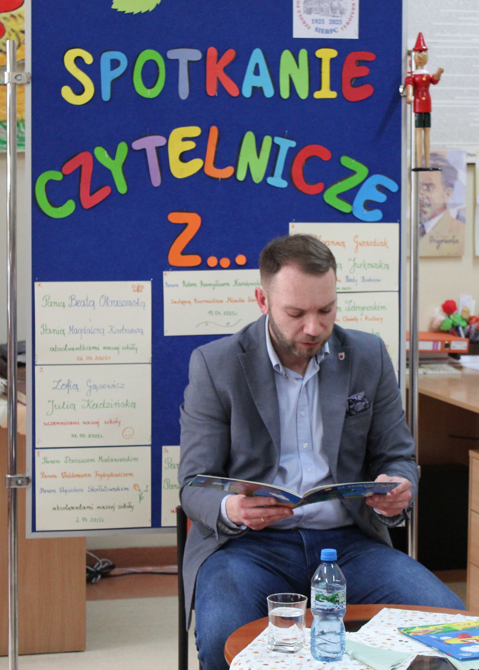Z okazji Jubileuszu 100- lecia naszej szkoły w bibliotece odbyły się wyjątkowe „Spotkania czytelnicze”, których motywem przewodnim były ulubione książki z dzieciństwa zaproszonych gości. Uczestnicy – wśród nich uczniowie, absolwenci naszej szkoły, przedstawiciele władz miasta, emerytowani nauczyciele, rodzice – czytali uczniom młodszych klas ulubione książki z lat szkolnych, dzielili się wspomnieniami oraz refleksjami związanymi z dawnymi przeżyciami gdy sami byli uczniami. Rozwiązywali wspólnie z dziećmi zagadki literackie. Spotkaniom towarzyszyła ekspozycja starych przedmiotów i fotografii, które przywołały atmosferę minionych lat i wzbudziły wiele emocji. Wydarzenie stworzyło niezwykłą przestrzeń do międzypokoleniowego dialogu i integracji wokół literatury oraz wspólnej historii szkoły.