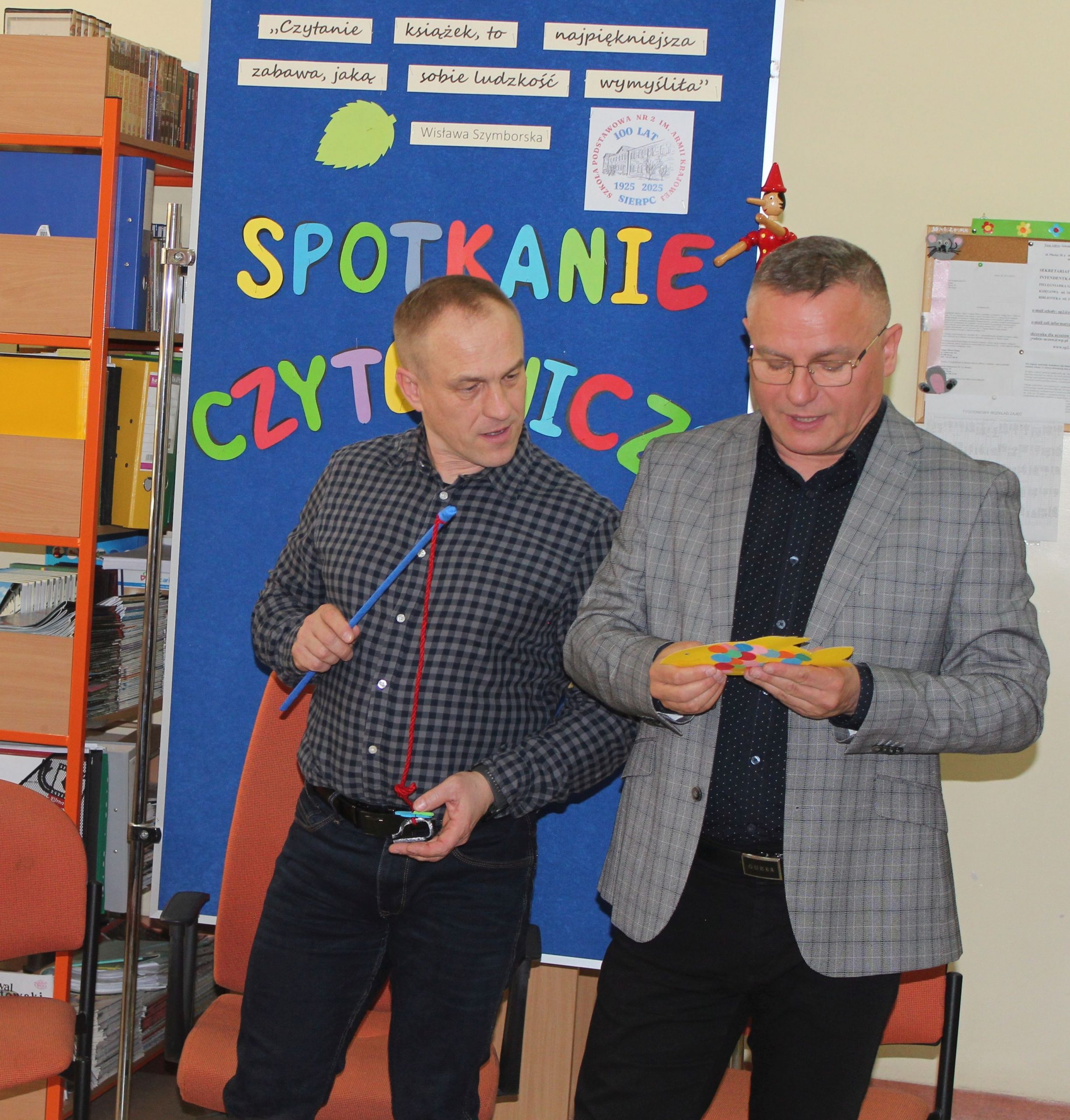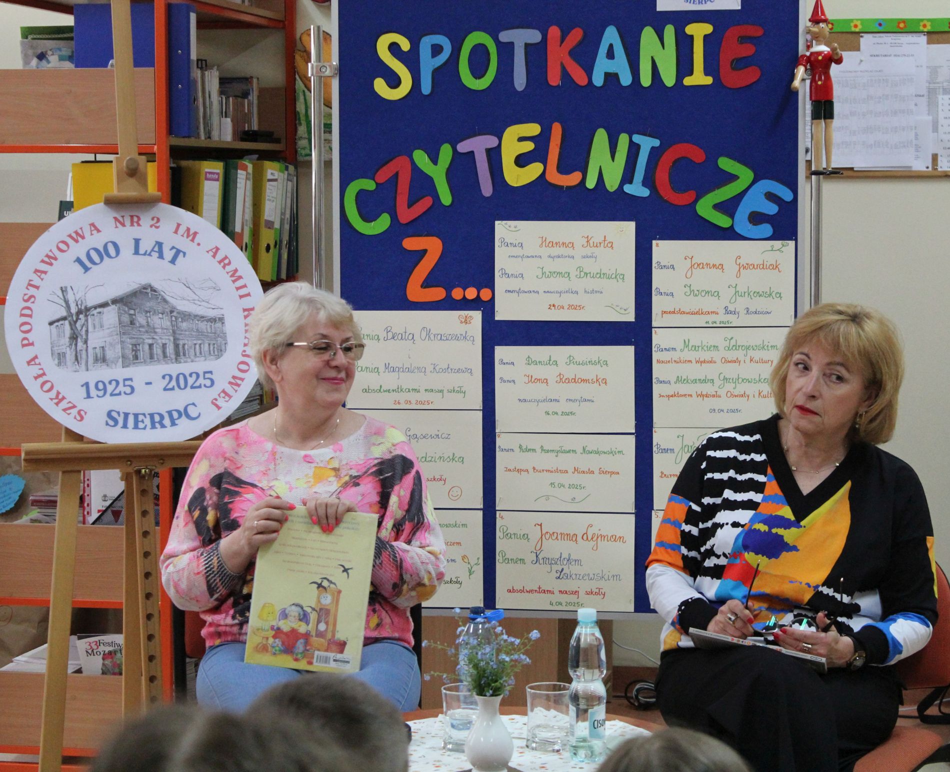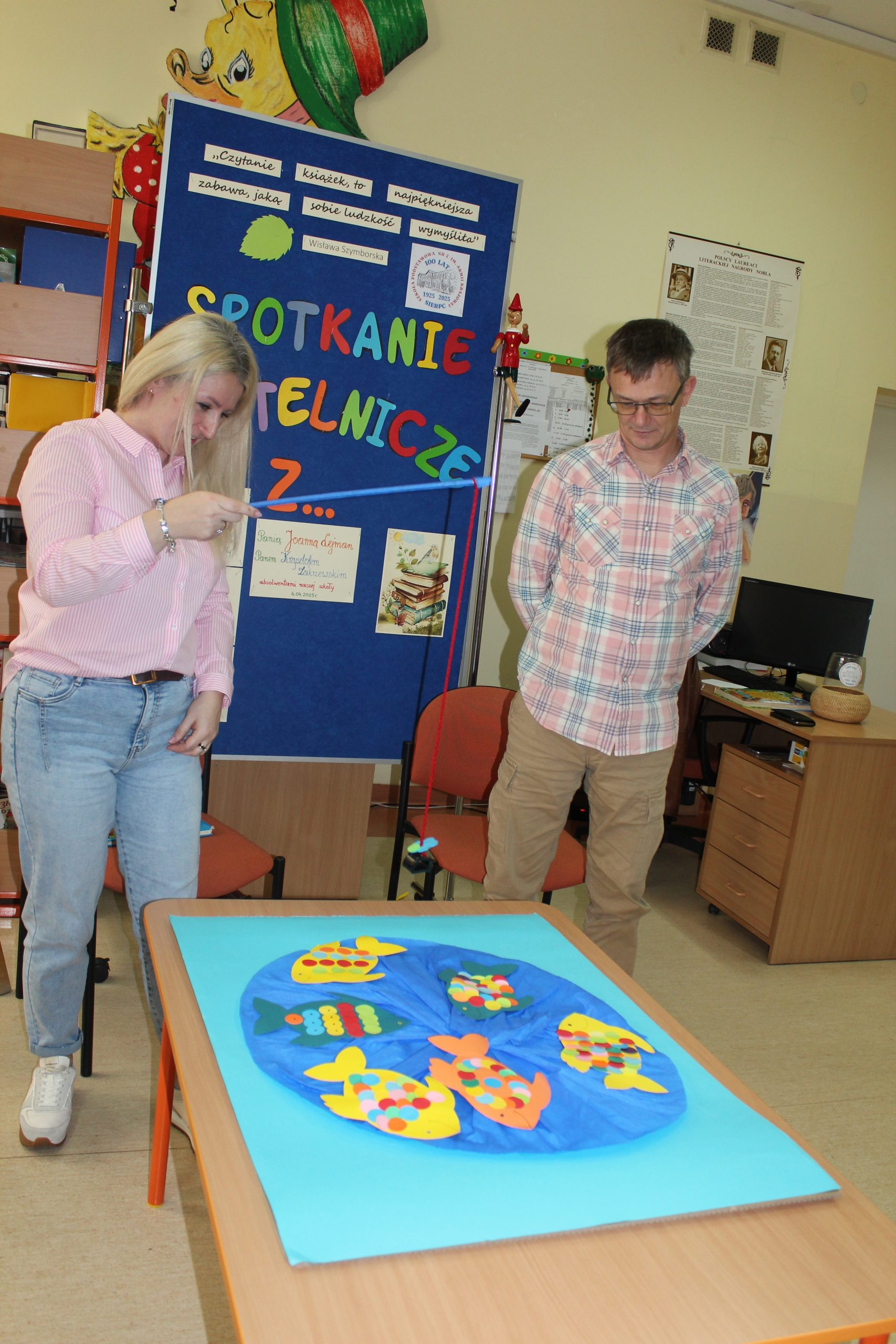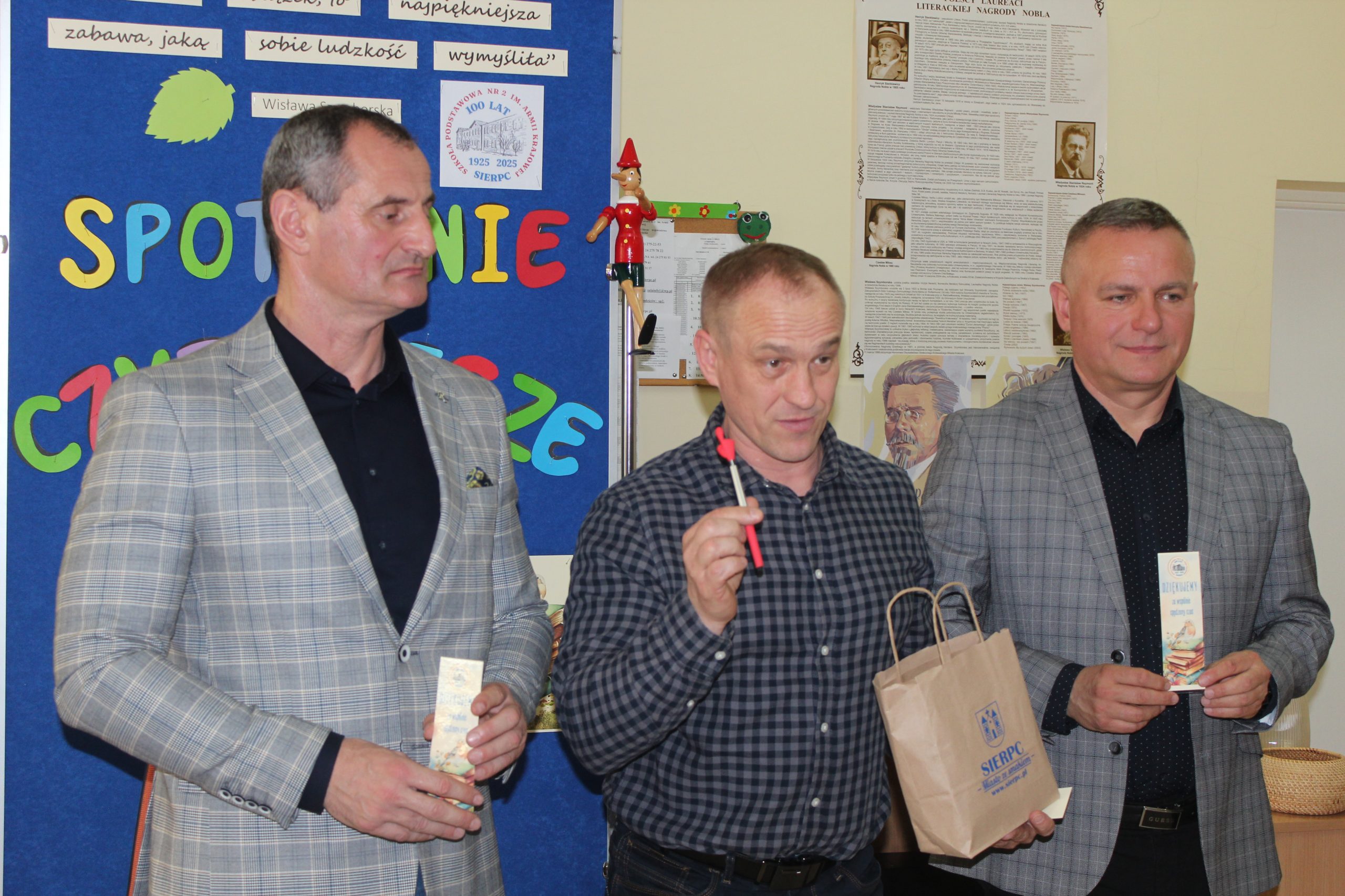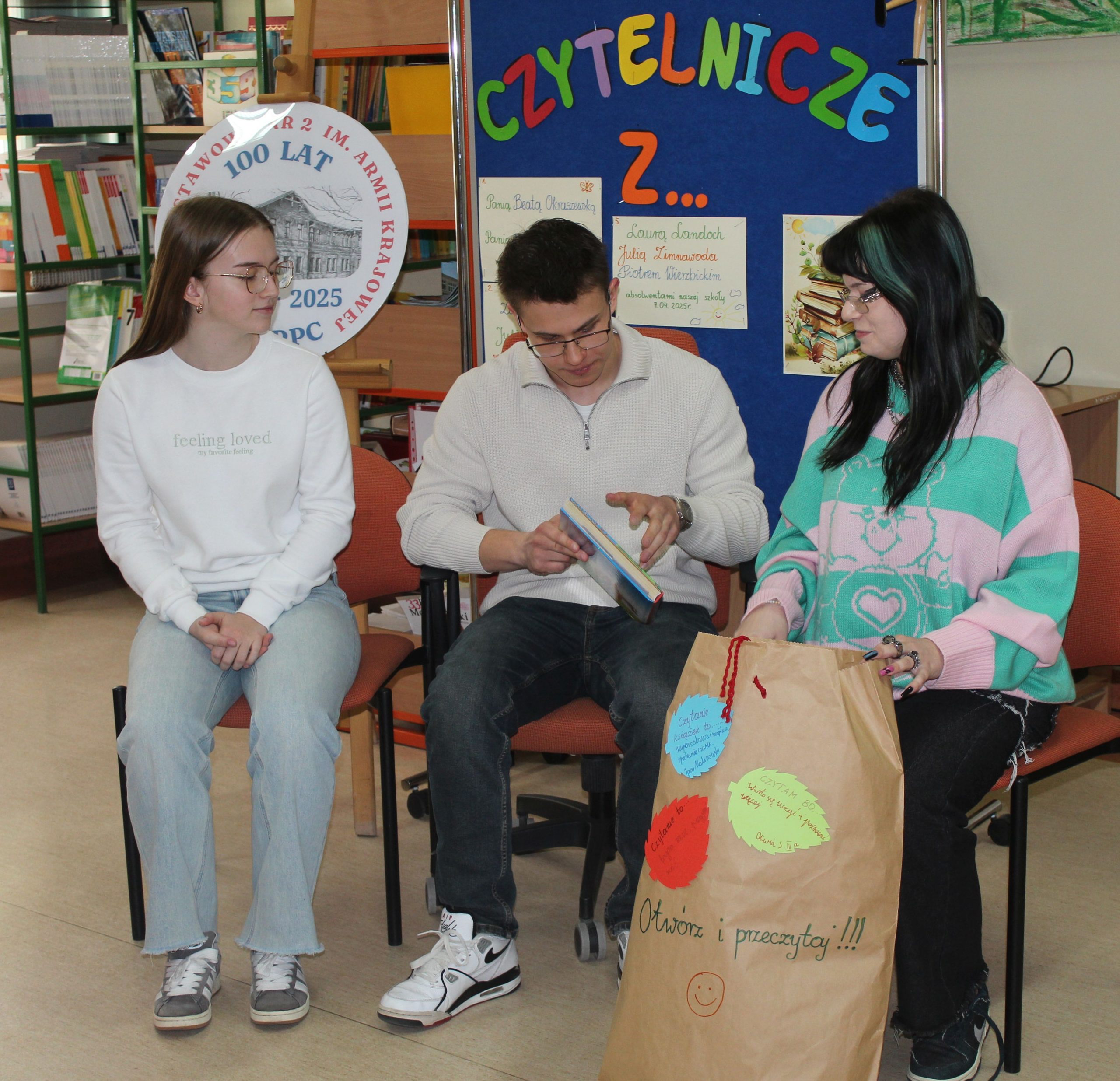Z okazji Jubileuszu 100- lecia naszej szkoły w bibliotece odbyły się wyjątkowe „Spotkania czytelnicze”, których motywem przewodnim były ulubione książki z dzieciństwa zaproszonych gości. Uczestnicy – wśród nich uczniowie, absolwenci naszej szkoły, przedstawiciele władz miasta, emerytowani nauczyciele, rodzice – czytali uczniom młodszych klas ulubione książki z lat szkolnych, dzielili się wspomnieniami oraz refleksjami związanymi z dawnymi przeżyciami gdy sami byli uczniami. Rozwiązywali wspólnie z dziećmi zagadki literackie. Spotkaniom towarzyszyła ekspozycja starych przedmiotów i fotografii, które przywołały atmosferę minionych lat i wzbudziły wiele emocji. Wydarzenie stworzyło niezwykłą przestrzeń do międzypokoleniowego dialogu i integracji wokół literatury oraz wspólnej historii szkoły.