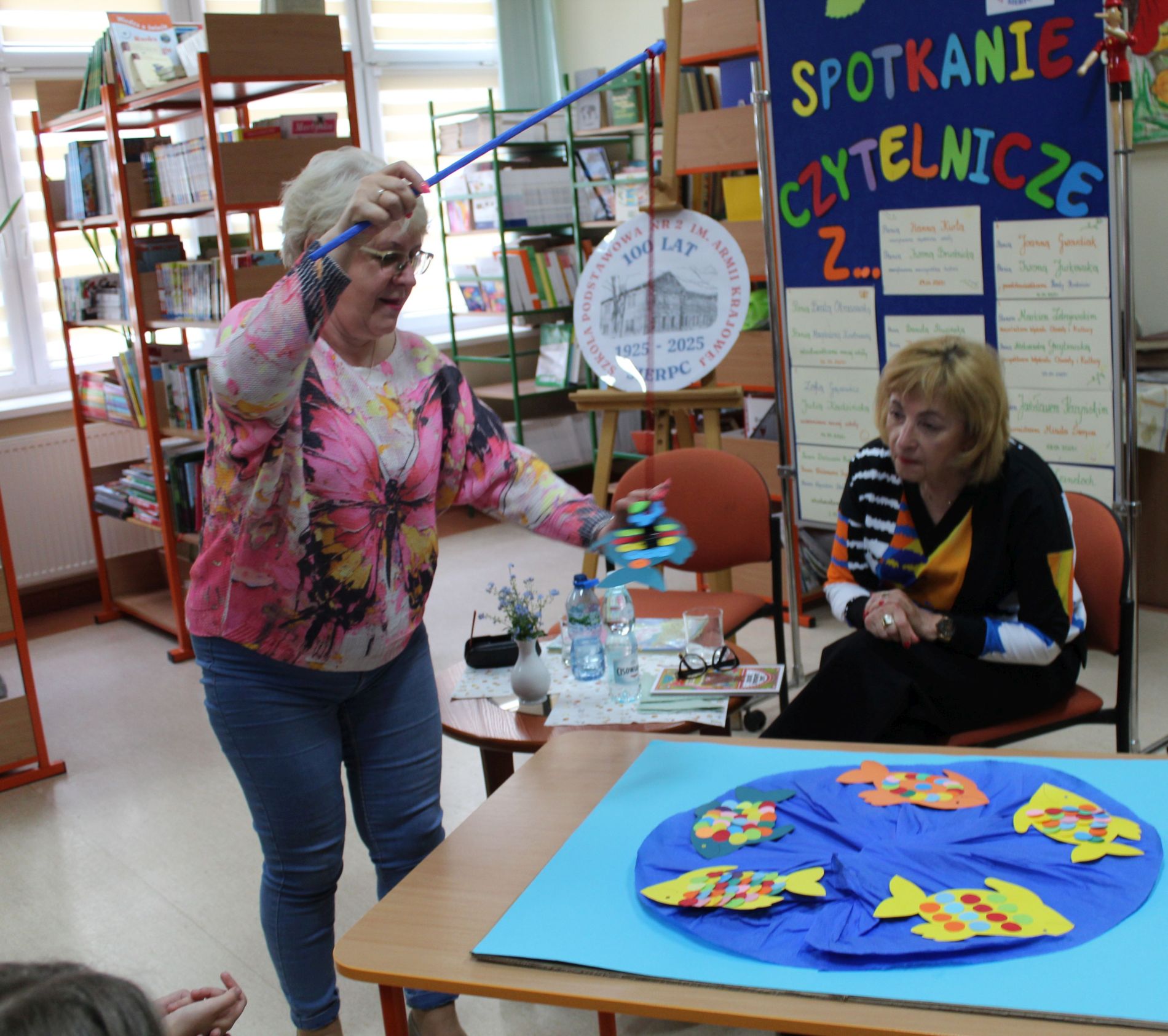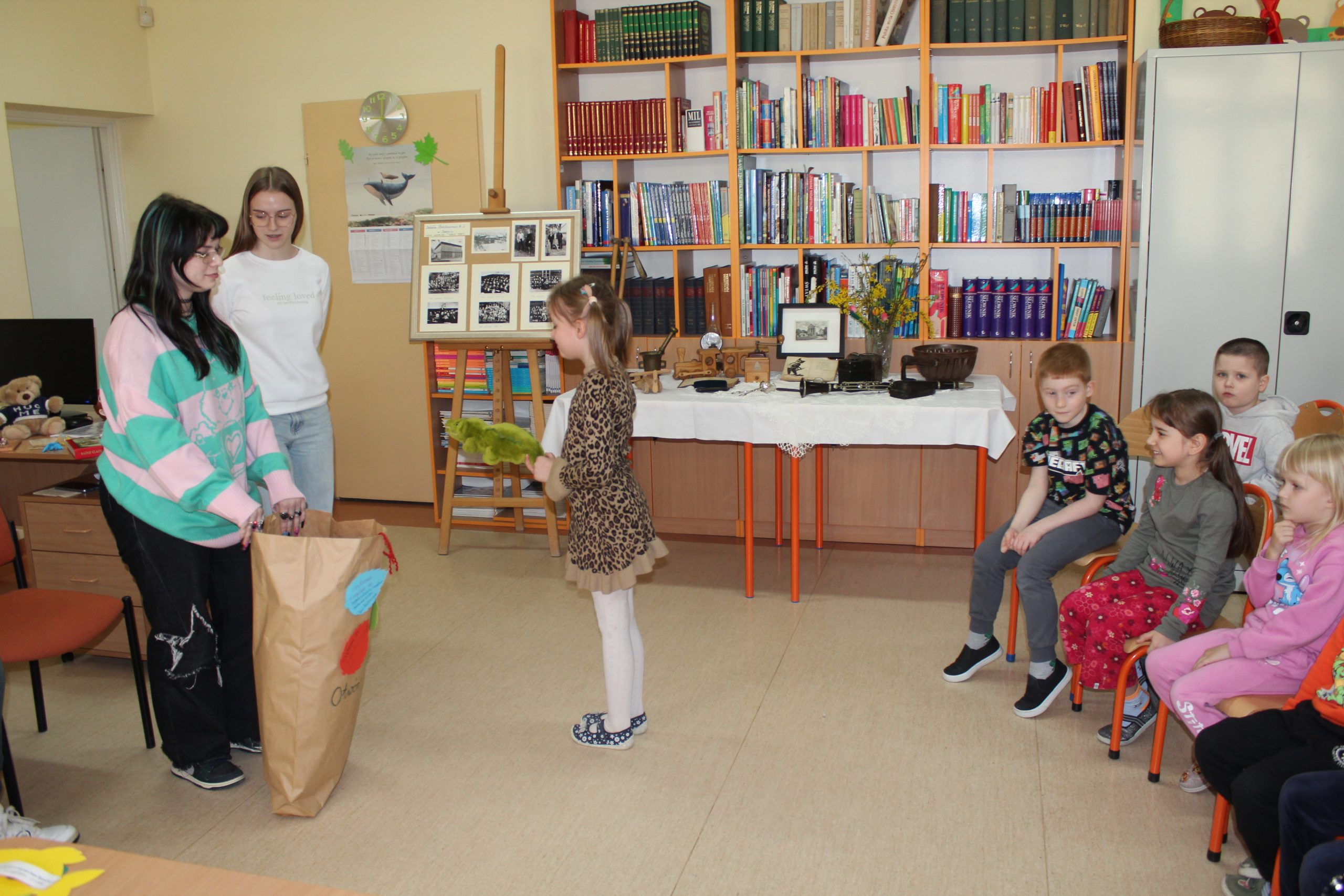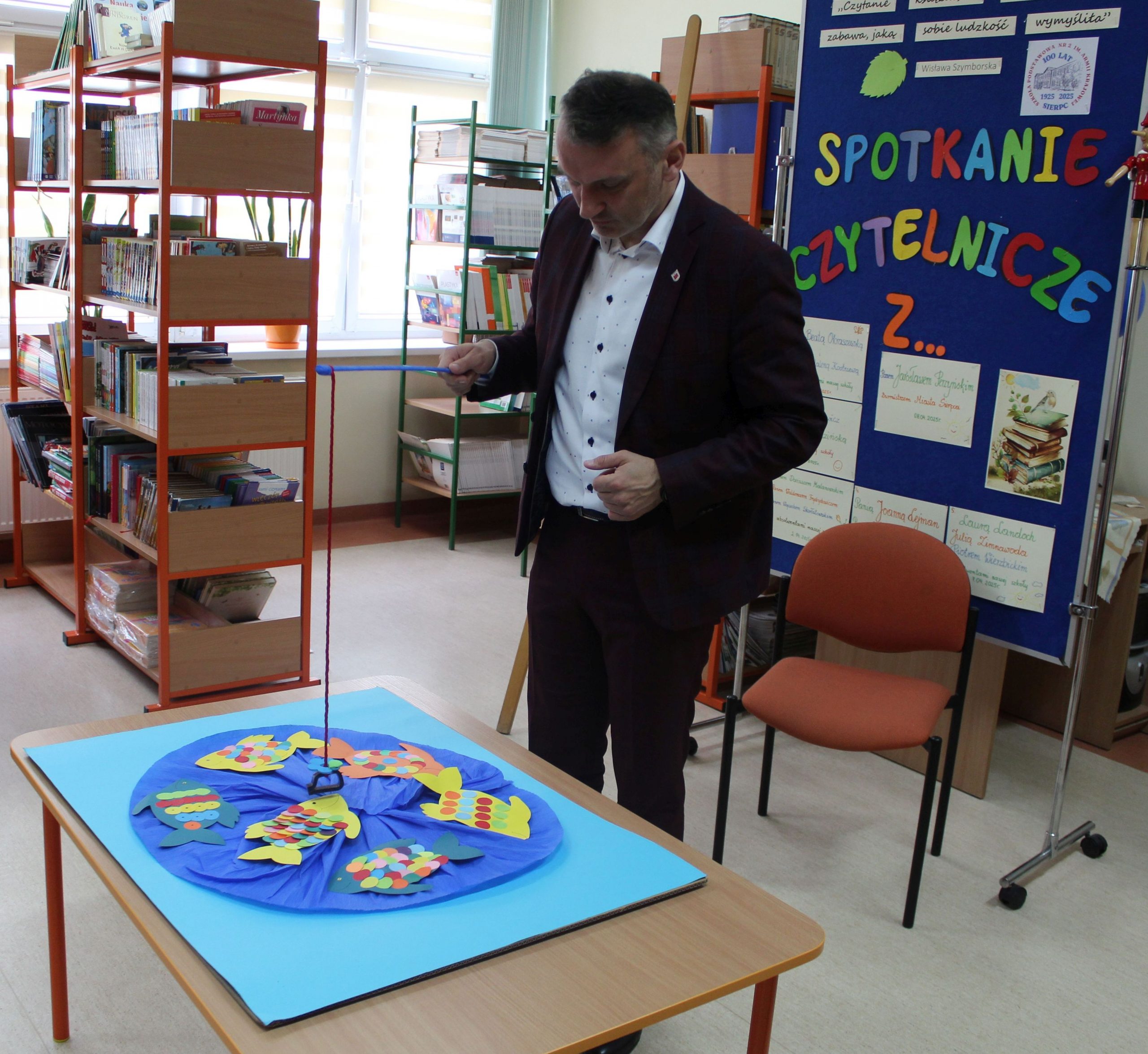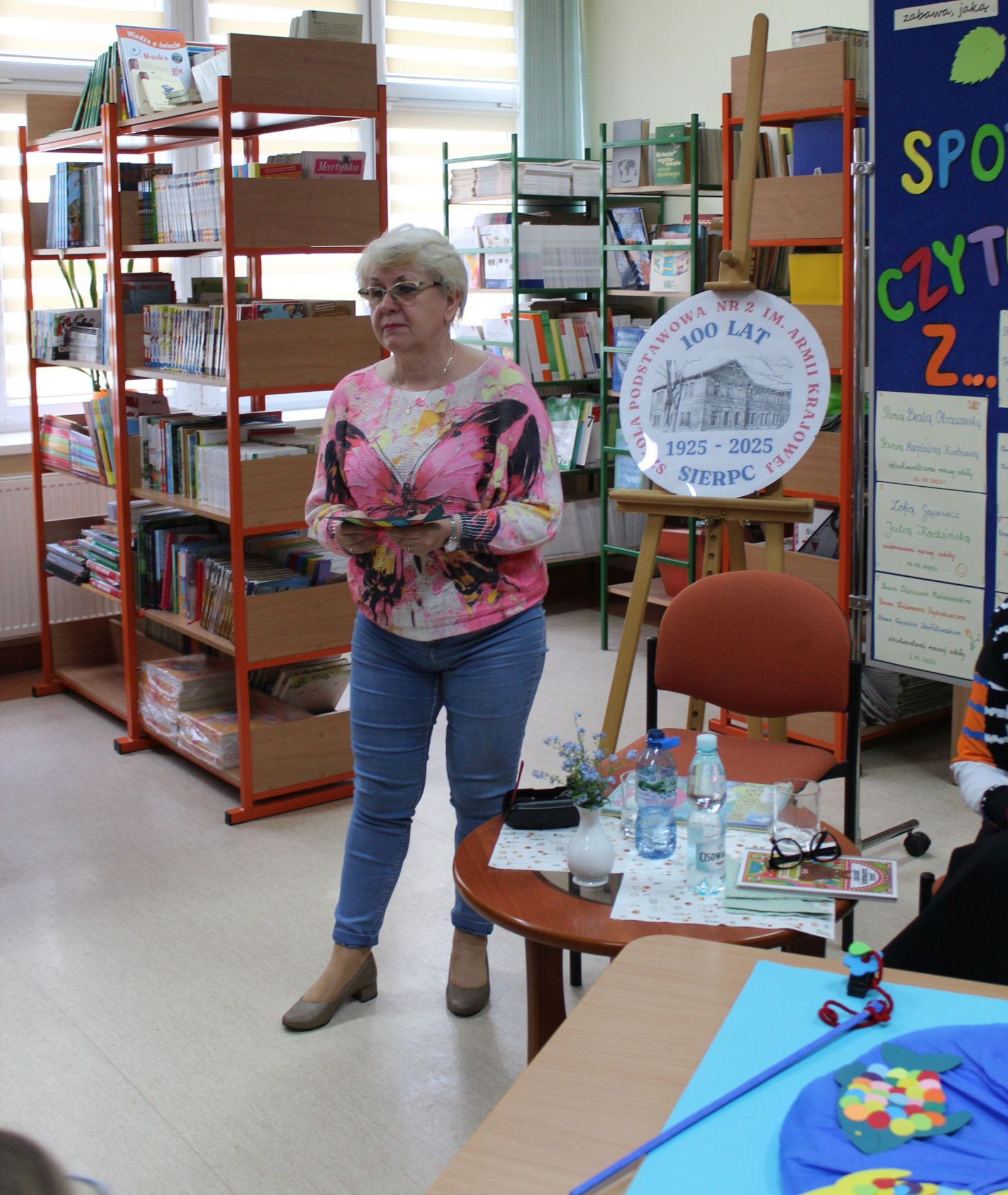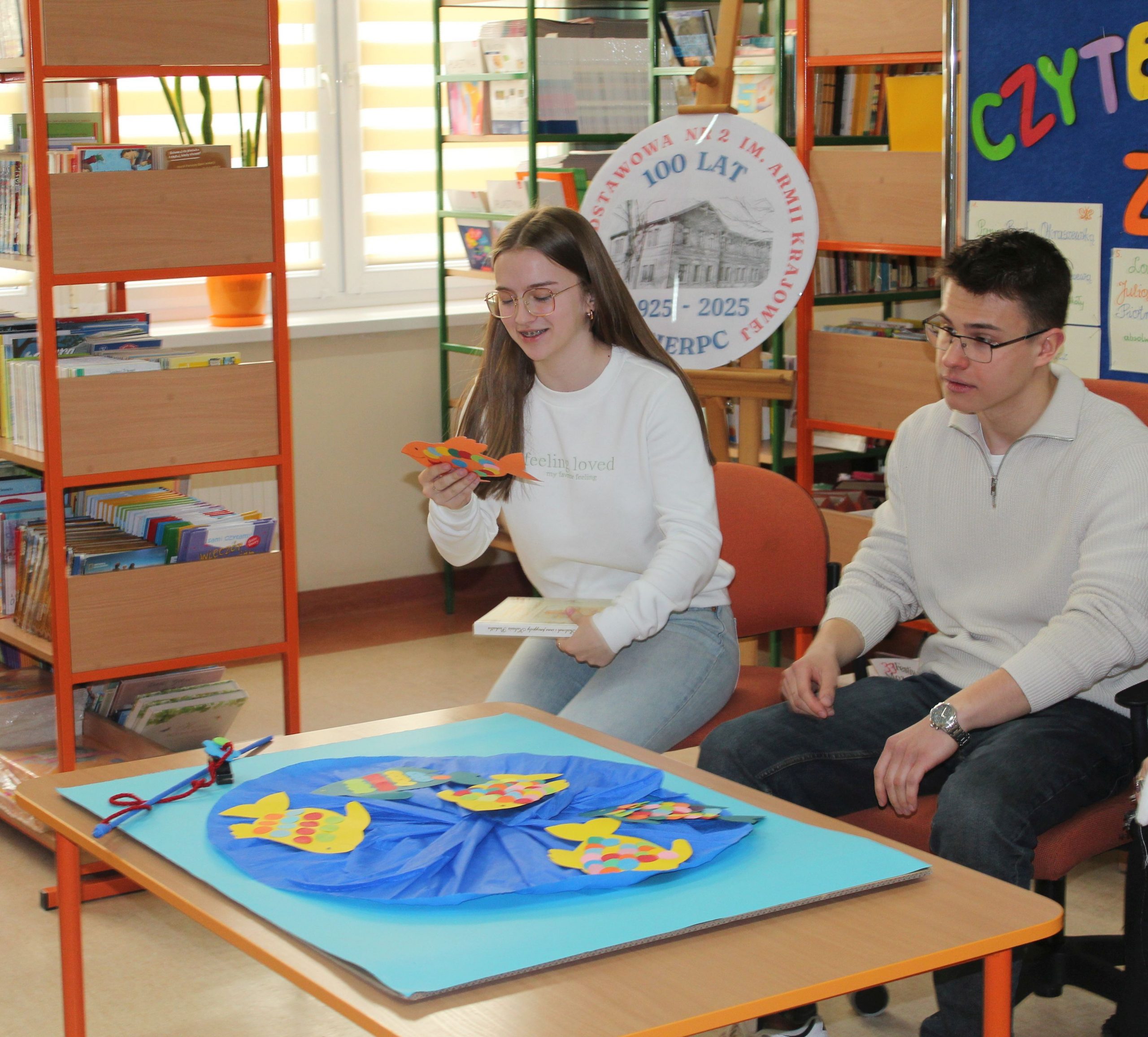 Z okazji Jubileuszu 100- lecia naszej szkoły w bibliotece odbyły się wyjątkowe „Spotkania czytelnicze”, których motywem przewodnim były ulubione książki z dzieciństwa zaproszonych gości. Uczestnicy – wśród nich uczniowie, absolwenci naszej szkoły, przedstawiciele władz miasta, emerytowani nauczyciele, rodzice – czytali uczniom młodszych klas ulubione książki z lat szkolnych, dzielili się wspomnieniami oraz refleksjami związanymi z dawnymi przeżyciami gdy sami byli uczniami. Rozwiązywali wspólnie z dziećmi zagadki literackie. Spotkaniom towarzyszyła ekspozycja starych przedmiotów i fotografii, które przywołały atmosferę minionych lat i wzbudziły wiele emocji. Wydarzenie stworzyło niezwykłą przestrzeń do międzypokoleniowego dialogu i integracji wokół literatury oraz wspólnej historii szkoły.