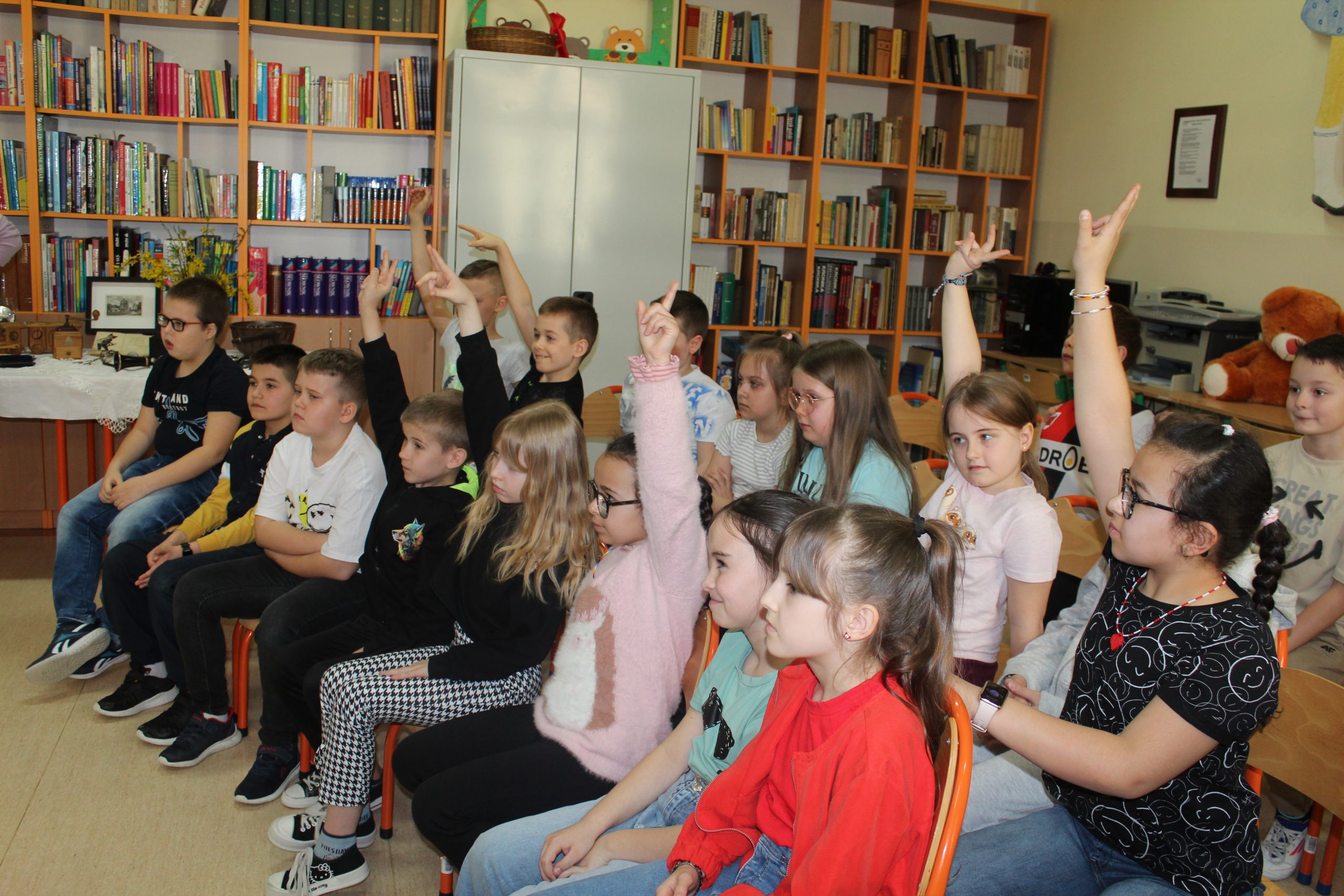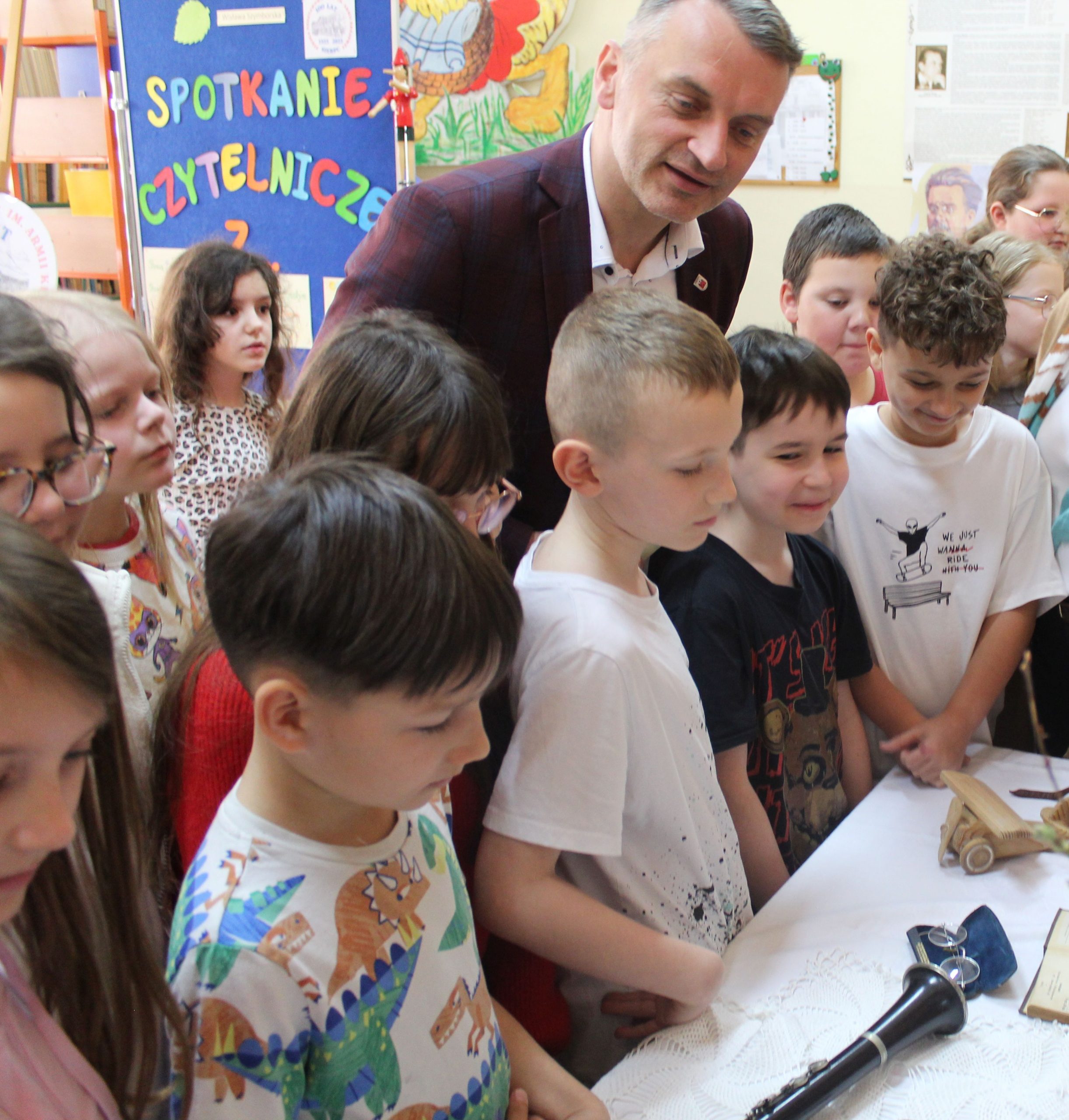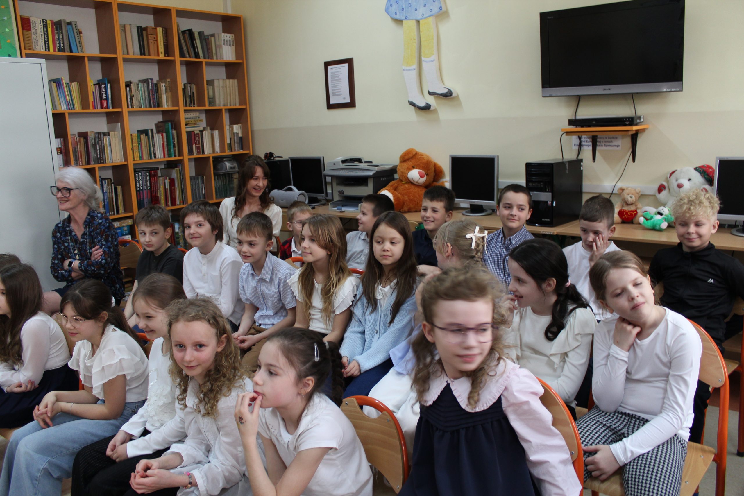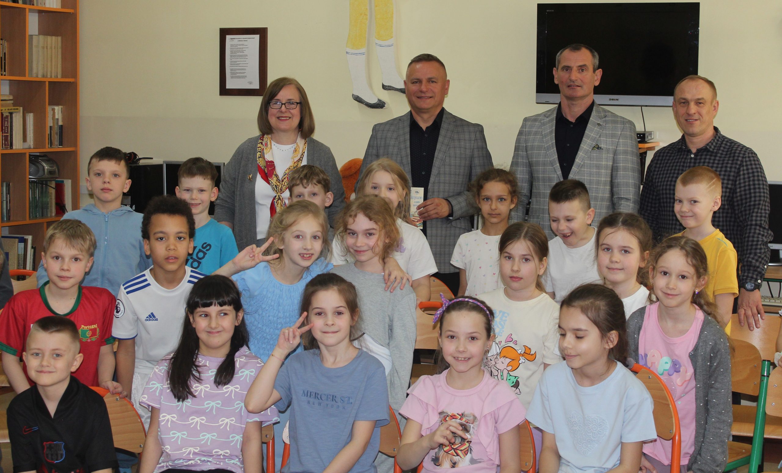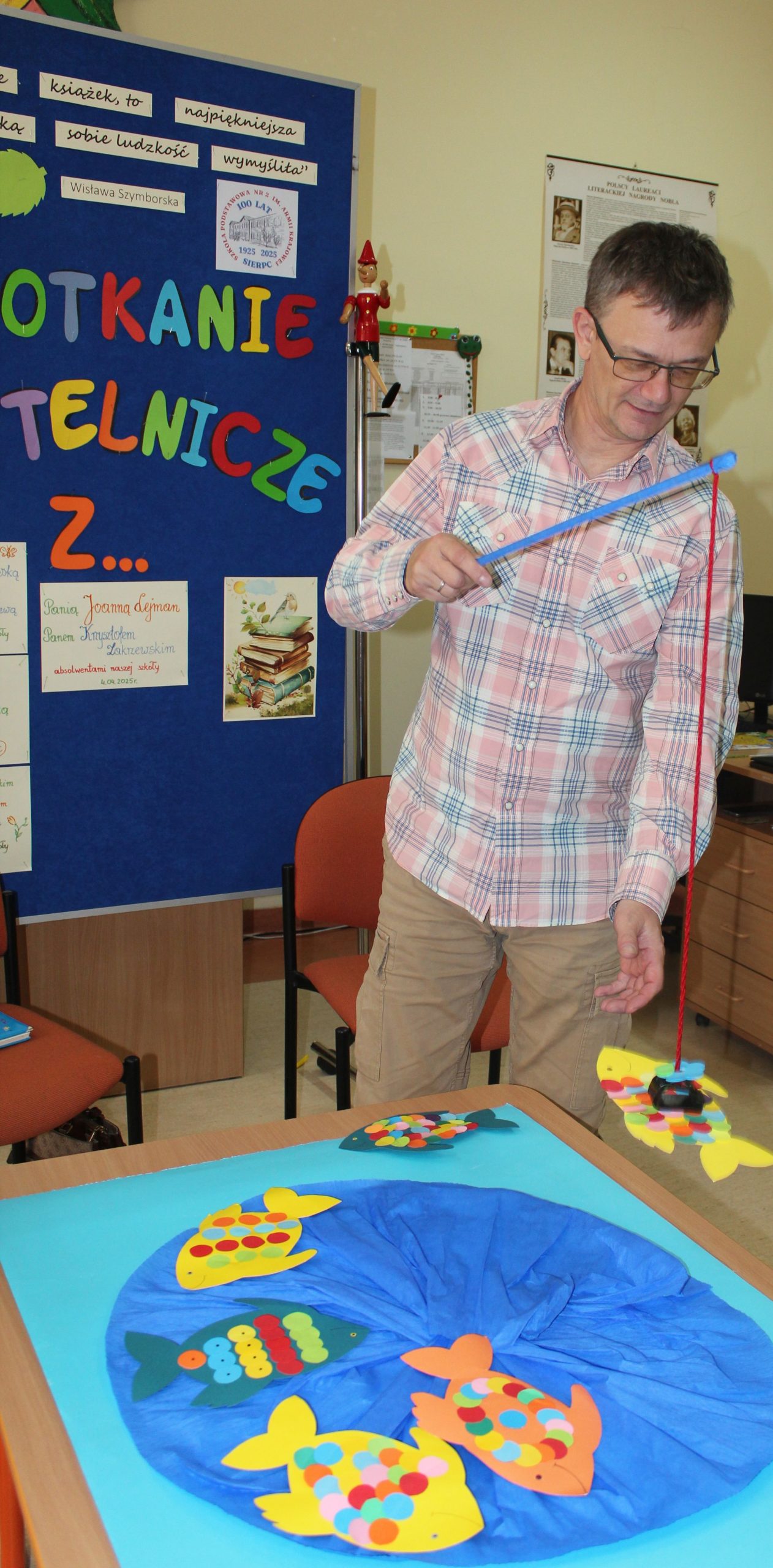 Z okazji Jubileuszu 100- lecia naszej szkoły w bibliotece odbyły się wyjątkowe „Spotkania czytelnicze”, których motywem przewodnim były ulubione książki z dzieciństwa zaproszonych gości. Uczestnicy – wśród nich uczniowie, absolwenci naszej szkoły, przedstawiciele władz miasta, emerytowani nauczyciele, rodzice – czytali uczniom młodszych klas ulubione książki z lat szkolnych, dzielili się wspomnieniami oraz refleksjami związanymi z dawnymi przeżyciami gdy sami byli uczniami. Rozwiązywali wspólnie z dziećmi zagadki literackie. Spotkaniom towarzyszyła ekspozycja starych przedmiotów i fotografii, które przywołały atmosferę minionych lat i wzbudziły wiele emocji. Wydarzenie stworzyło niezwykłą przestrzeń do międzypokoleniowego dialogu i integracji wokół literatury oraz wspólnej historii szkoły.