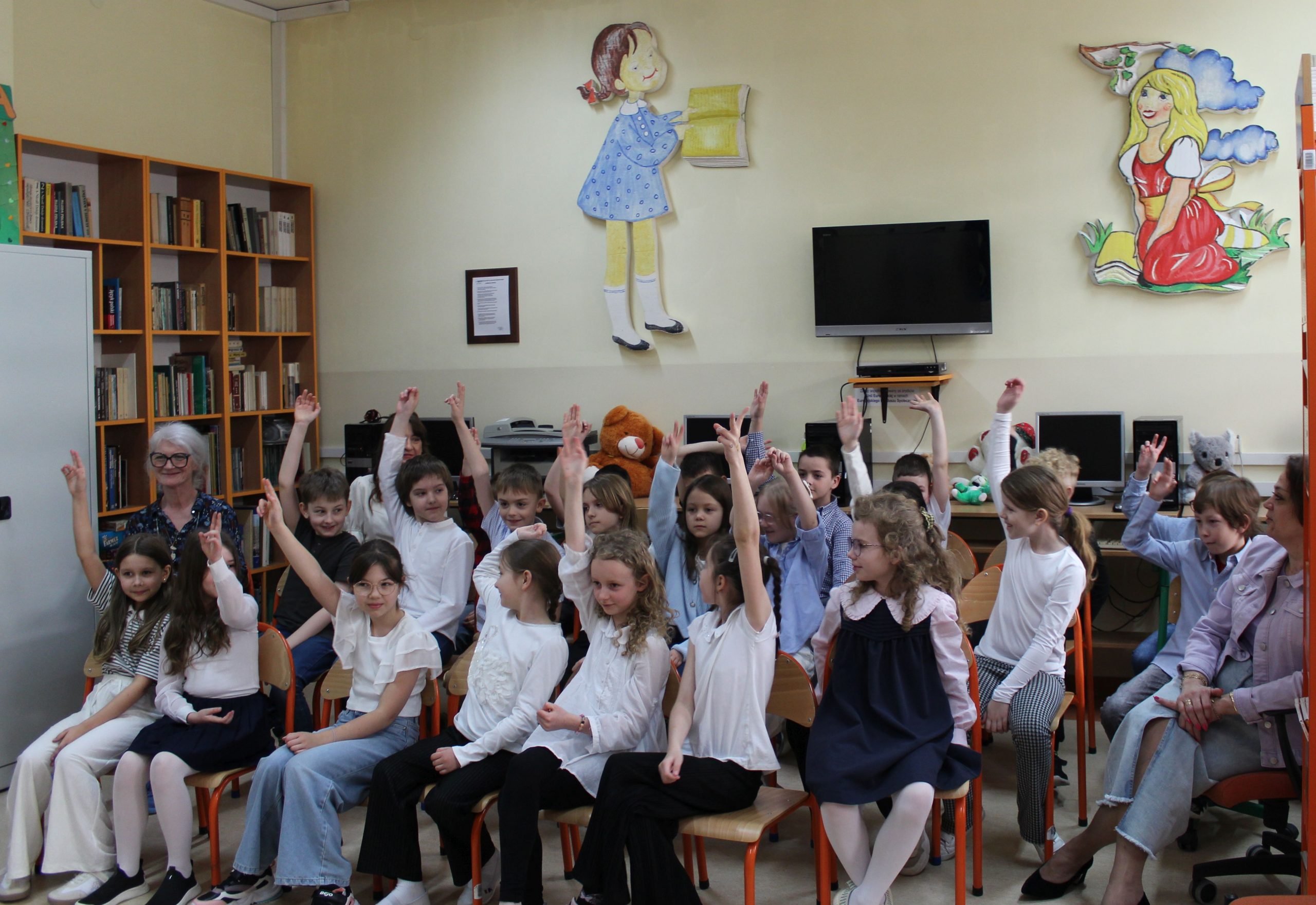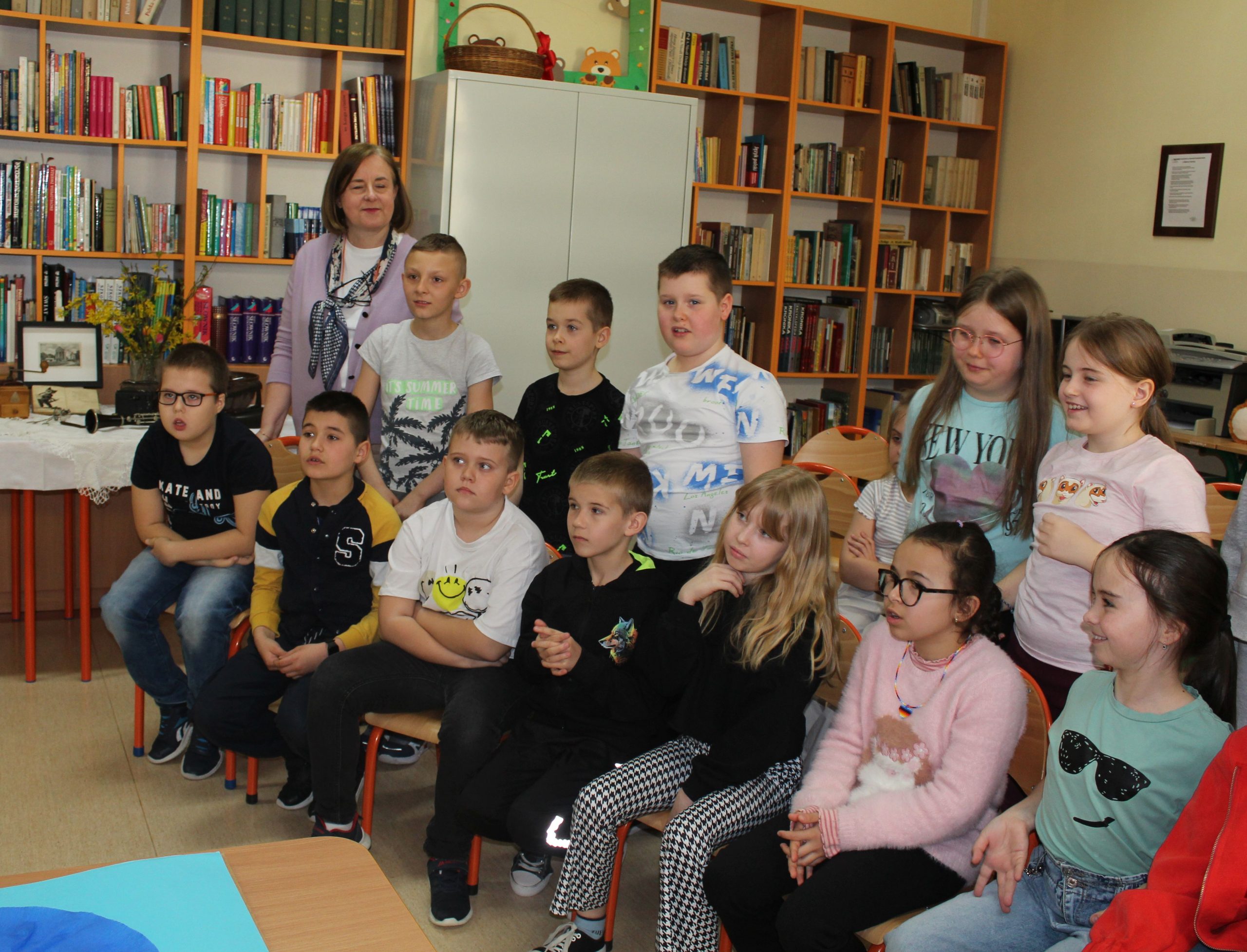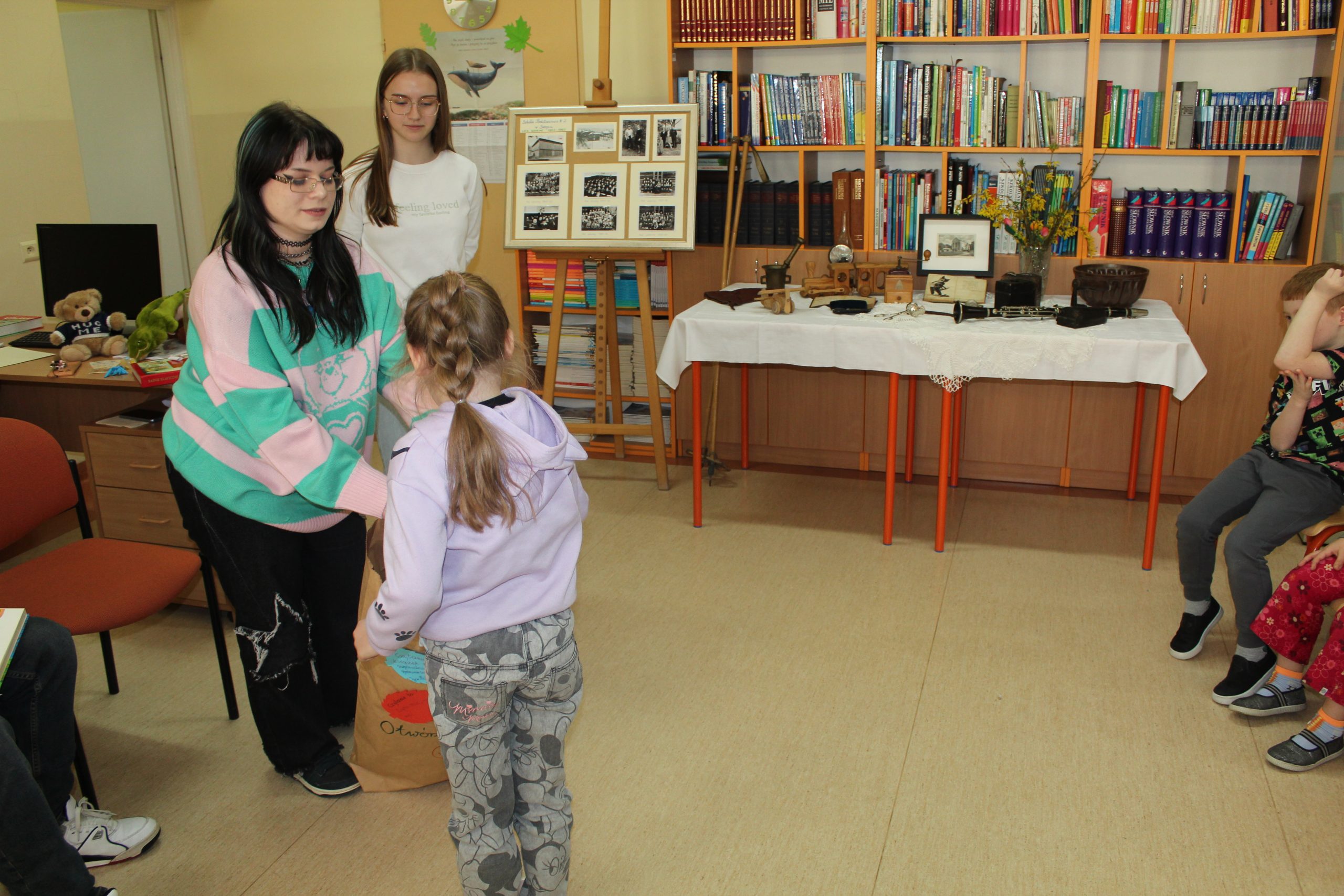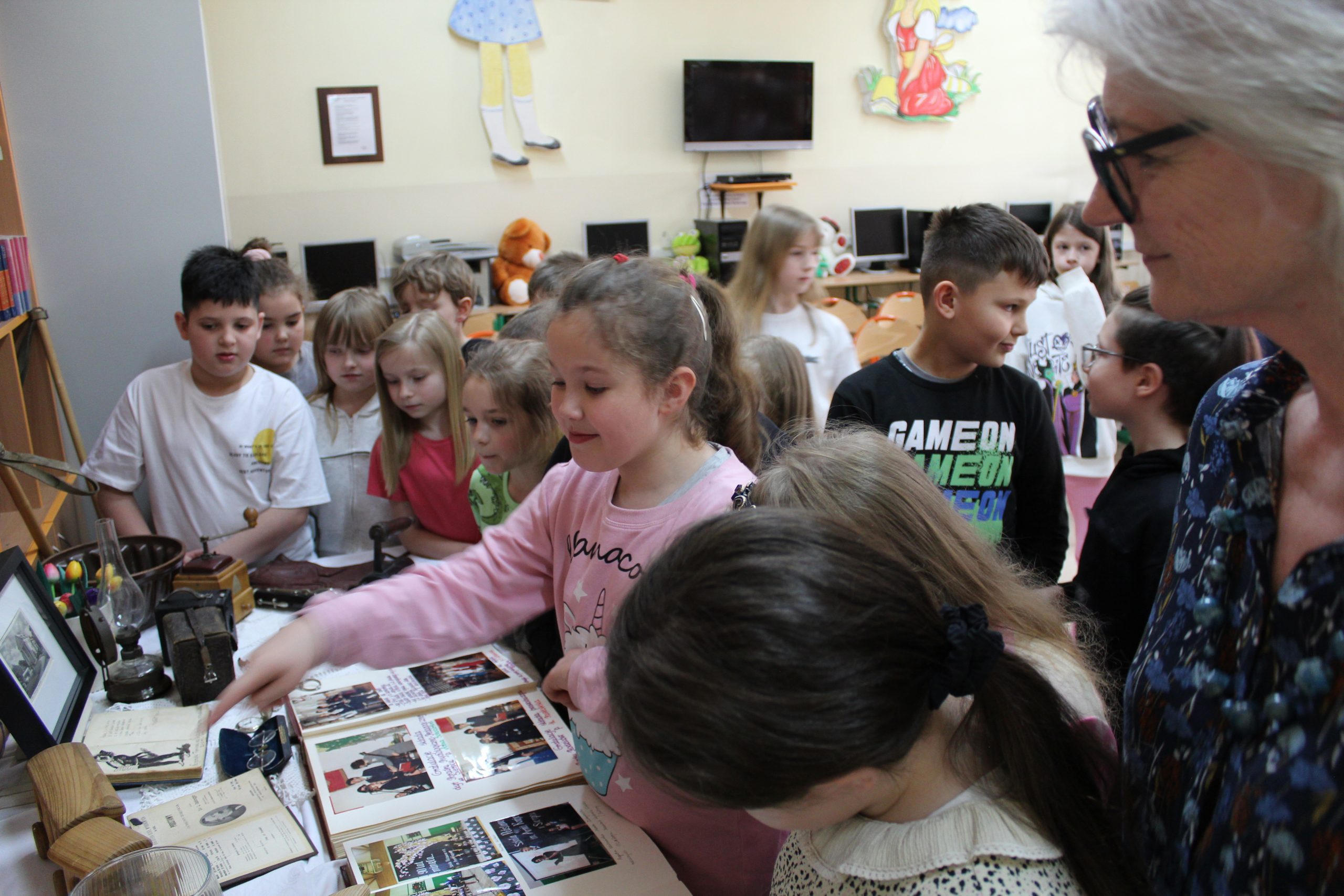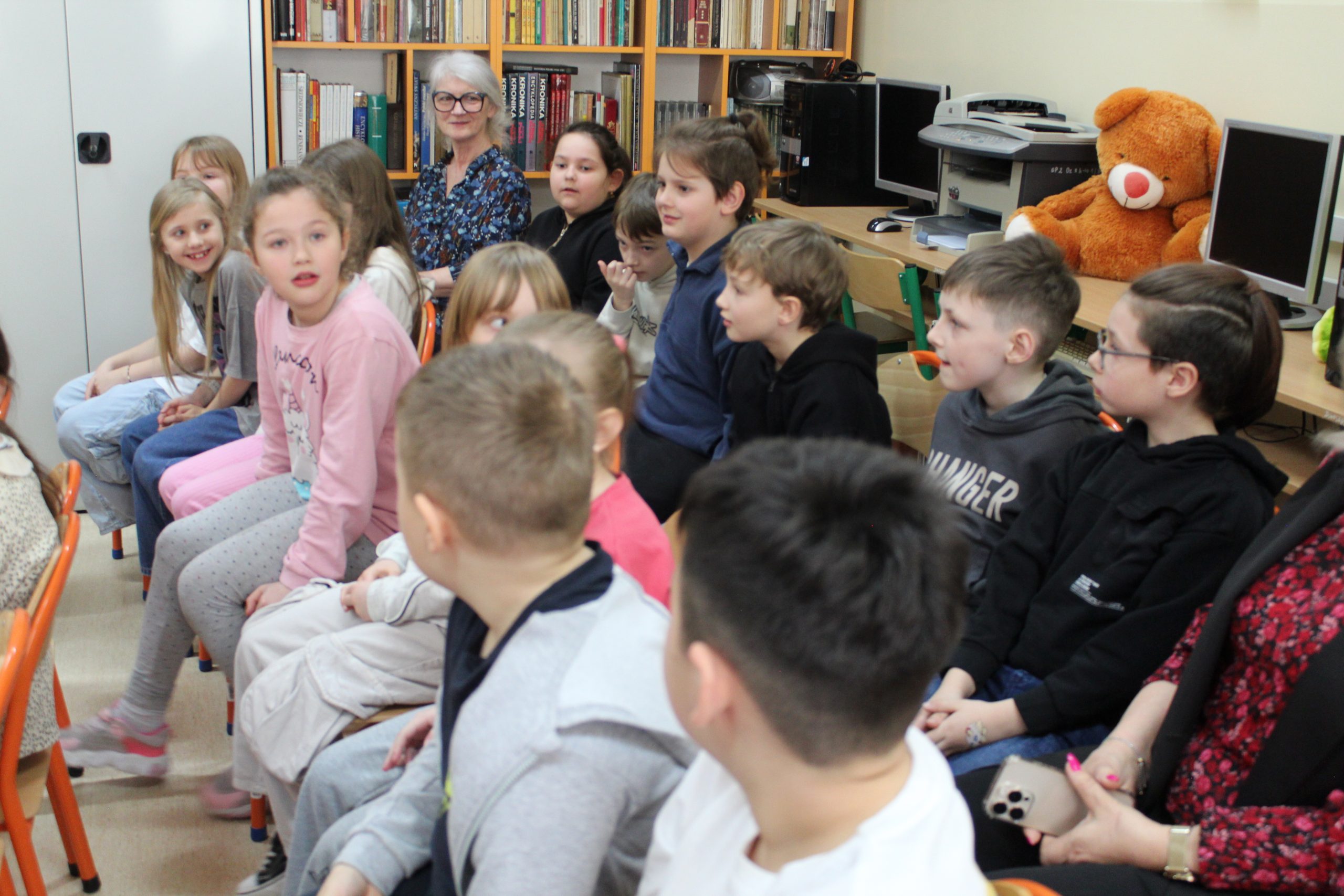 Z okazji Jubileuszu 100- lecia naszej szkoły w bibliotece odbyły się wyjątkowe „Spotkania czytelnicze”, których motywem przewodnim były ulubione książki z dzieciństwa zaproszonych gości. Uczestnicy – wśród nich uczniowie, absolwenci naszej szkoły, przedstawiciele władz miasta, emerytowani nauczyciele, rodzice – czytali uczniom młodszych klas ulubione książki z lat szkolnych, dzielili się wspomnieniami oraz refleksjami związanymi z dawnymi przeżyciami gdy sami byli uczniami. Rozwiązywali wspólnie z dziećmi zagadki literackie. Spotkaniom towarzyszyła ekspozycja starych przedmiotów i fotografii, które przywołały atmosferę minionych lat i wzbudziły wiele emocji. Wydarzenie stworzyło niezwykłą przestrzeń do międzypokoleniowego dialogu i integracji wokół literatury oraz wspólnej historii szkoły.