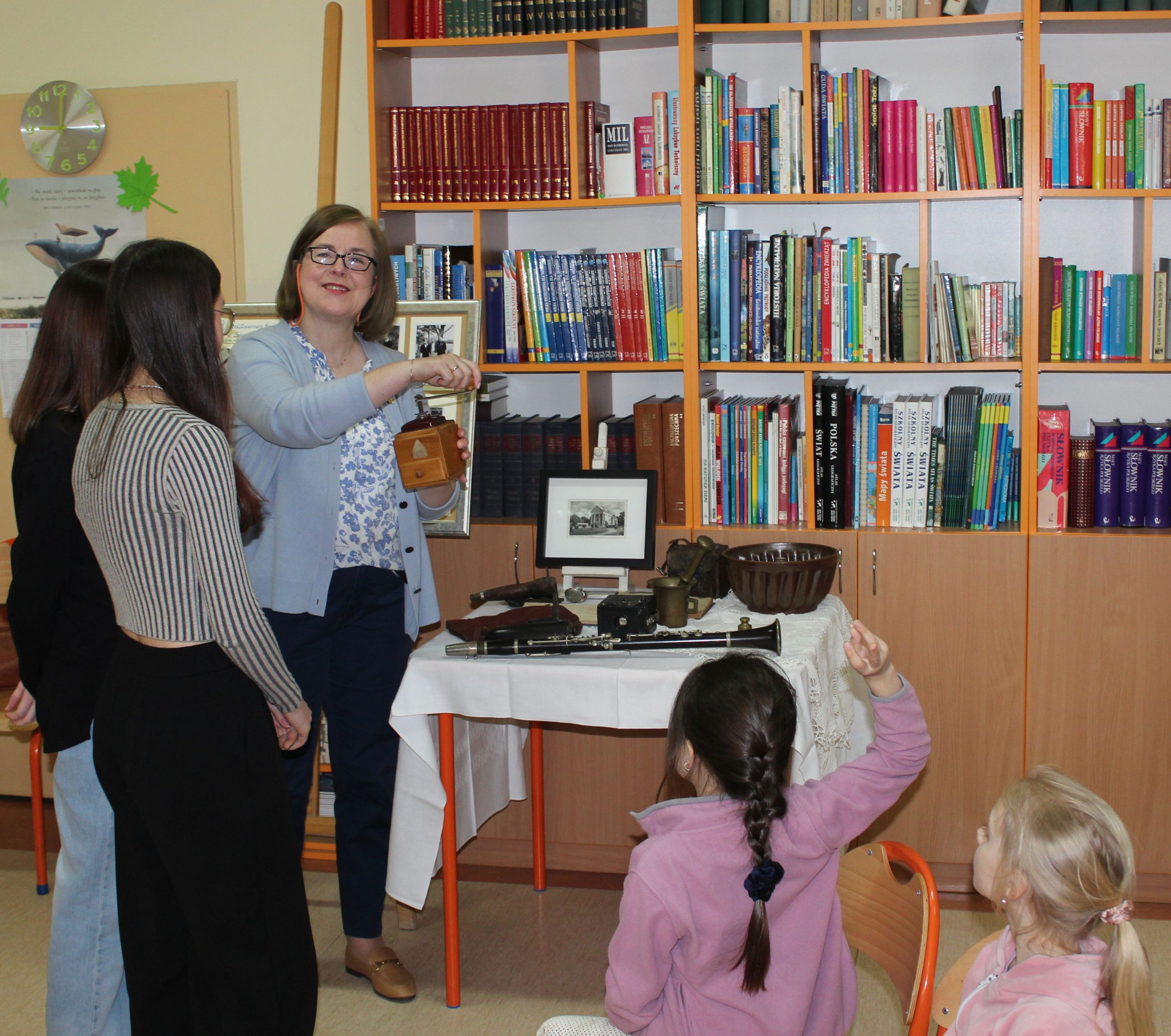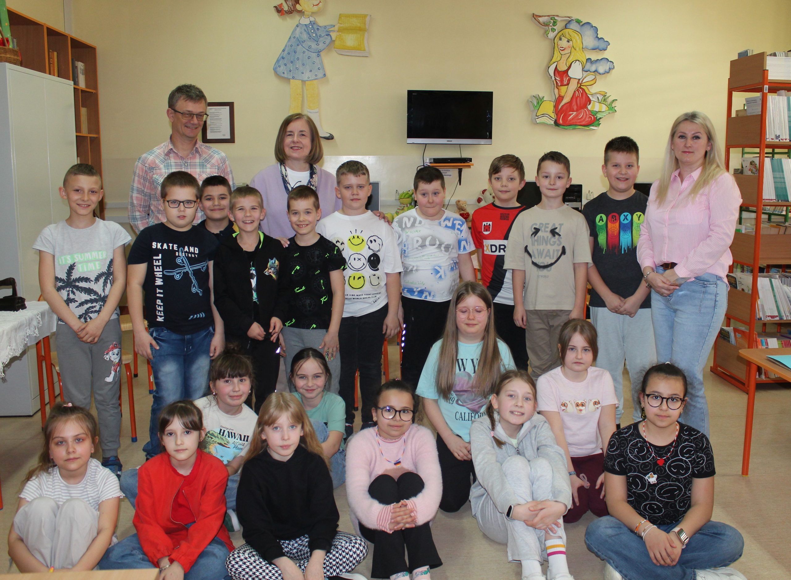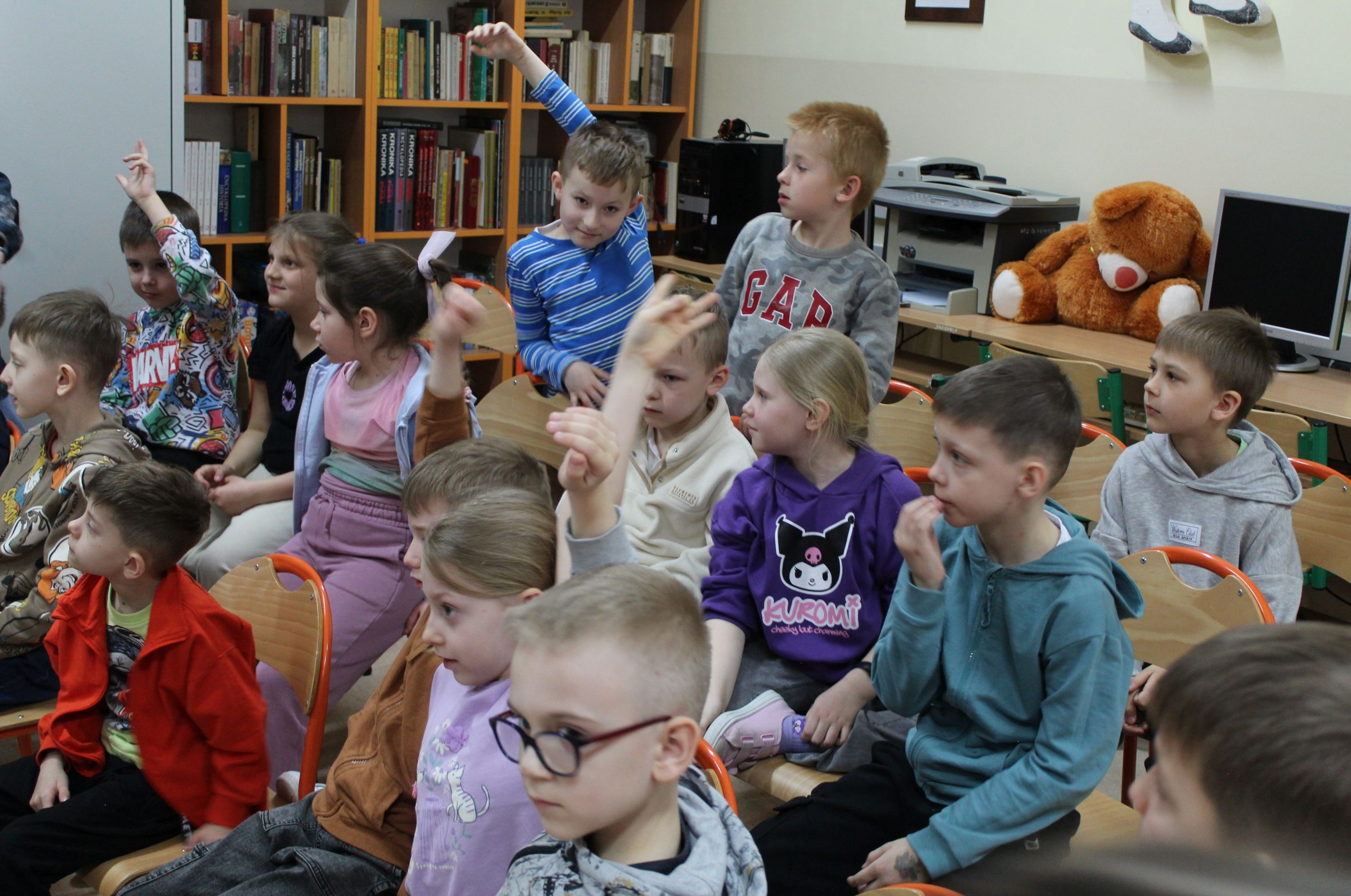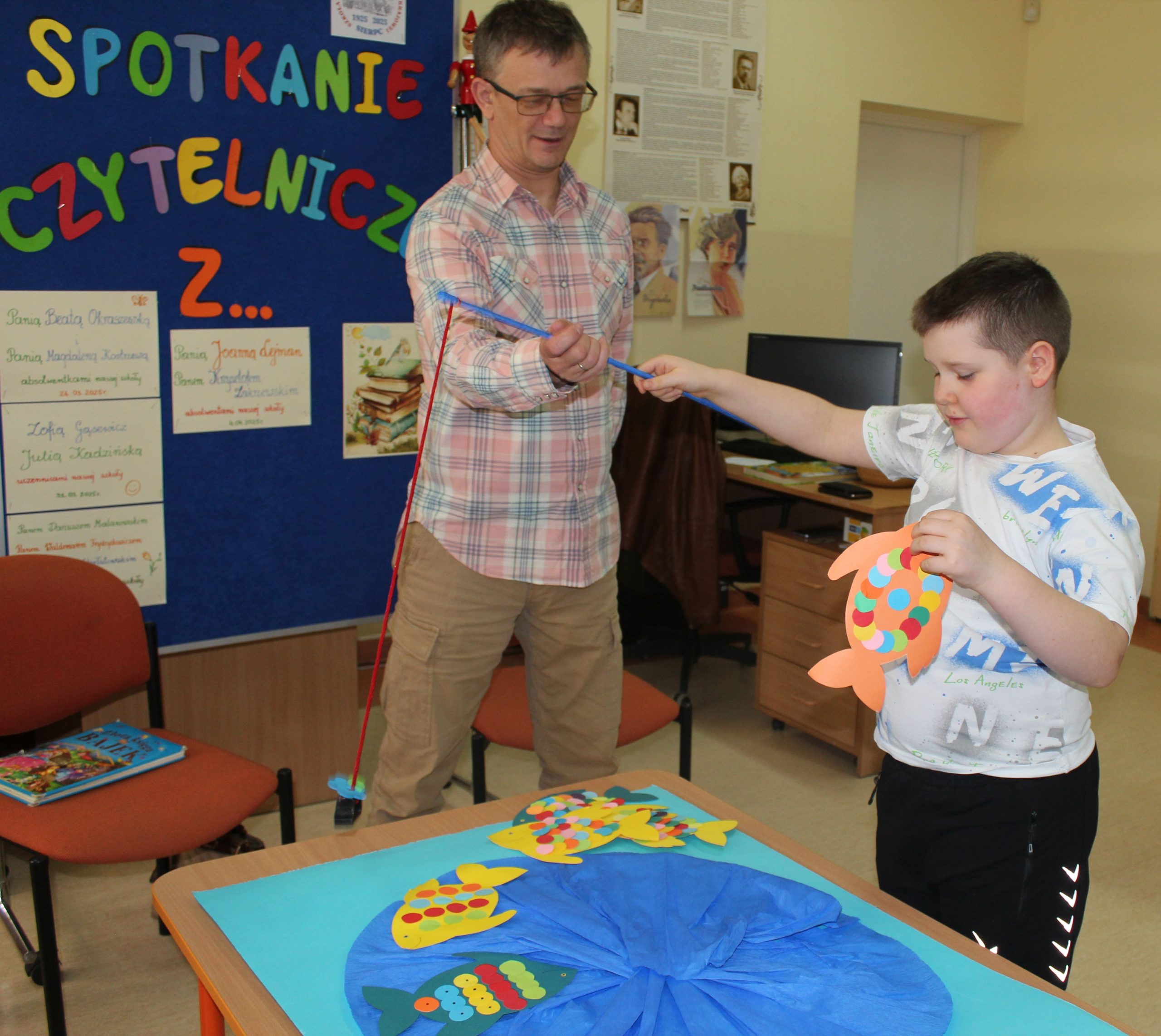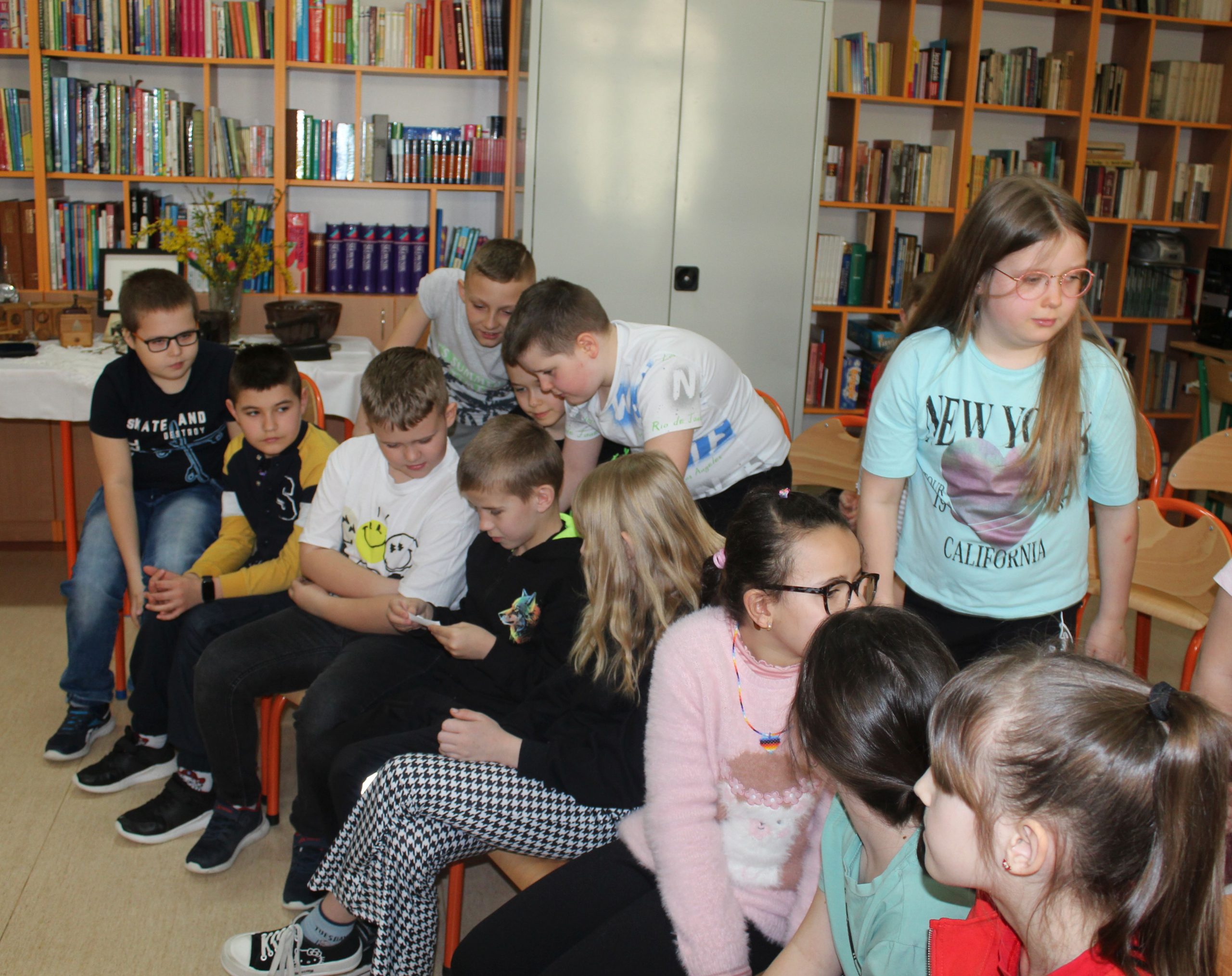 Z okazji Jubileuszu 100- lecia naszej szkoły w bibliotece odbyły się wyjątkowe „Spotkania czytelnicze”, których motywem przewodnim były ulubione książki z dzieciństwa zaproszonych gości. Uczestnicy – wśród nich uczniowie, absolwenci naszej szkoły, przedstawiciele władz miasta, emerytowani nauczyciele, rodzice – czytali uczniom młodszych klas ulubione książki z lat szkolnych, dzielili się wspomnieniami oraz refleksjami związanymi z dawnymi przeżyciami gdy sami byli uczniami. Rozwiązywali wspólnie z dziećmi zagadki literackie. Spotkaniom towarzyszyła ekspozycja starych przedmiotów i fotografii, które przywołały atmosferę minionych lat i wzbudziły wiele emocji. Wydarzenie stworzyło niezwykłą przestrzeń do międzypokoleniowego dialogu i integracji wokół literatury oraz wspólnej historii szkoły.