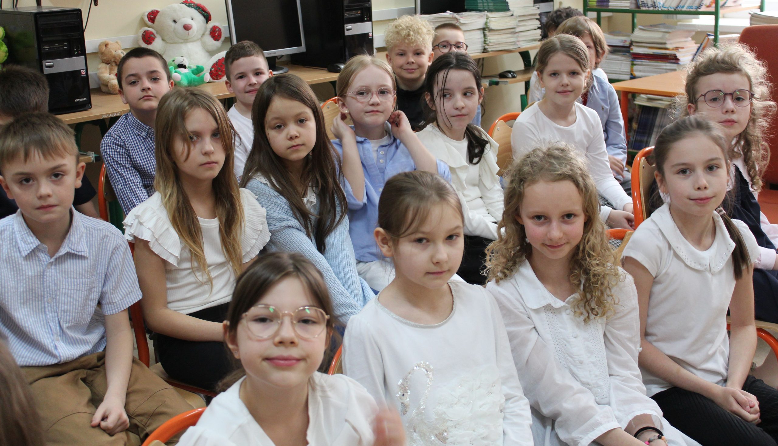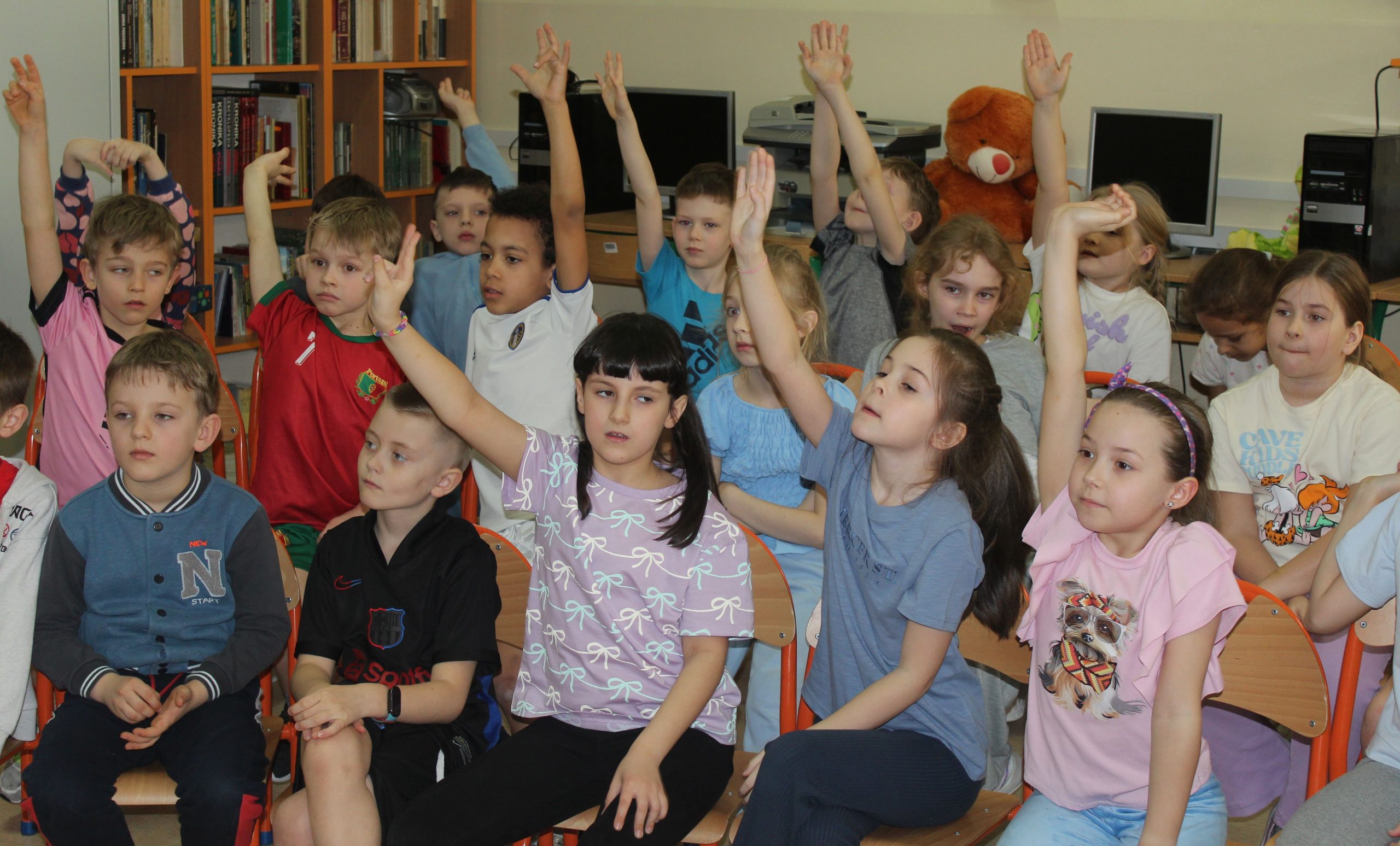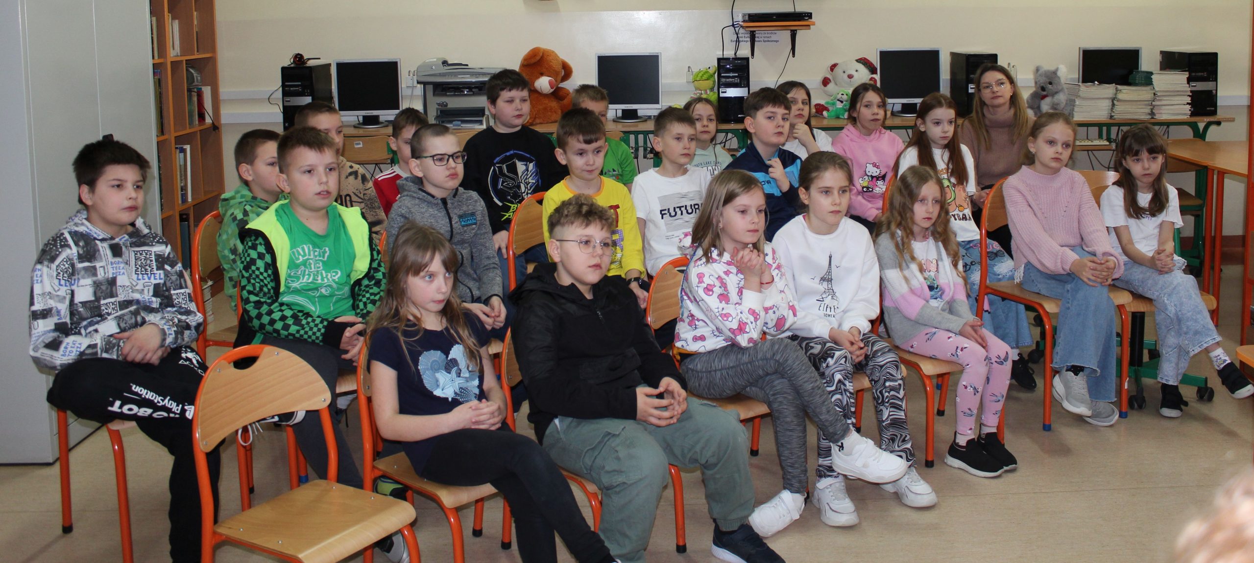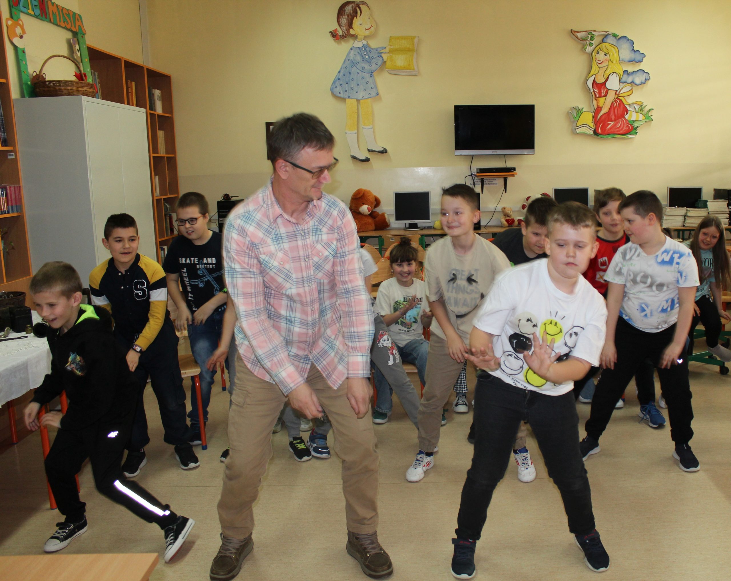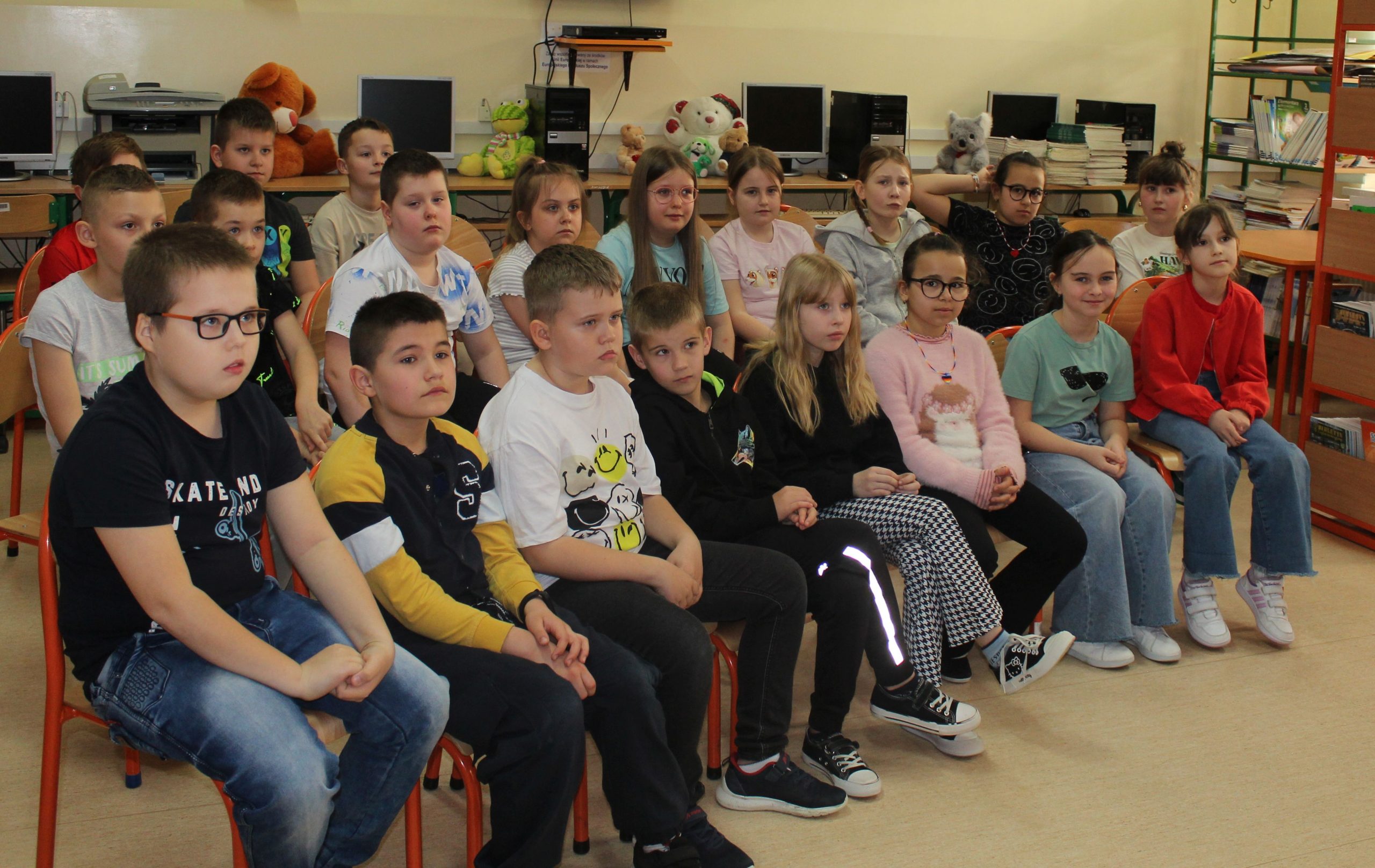 Z okazji Jubileuszu 100- lecia naszej szkoły w bibliotece odbyły się wyjątkowe „Spotkania czytelnicze”, których motywem przewodnim były ulubione książki z dzieciństwa zaproszonych gości. Uczestnicy – wśród nich uczniowie, absolwenci naszej szkoły, przedstawiciele władz miasta, emerytowani nauczyciele, rodzice – czytali uczniom młodszych klas ulubione książki z lat szkolnych, dzielili się wspomnieniami oraz refleksjami związanymi z dawnymi przeżyciami gdy sami byli uczniami. Rozwiązywali wspólnie z dziećmi zagadki literackie. Spotkaniom towarzyszyła ekspozycja starych przedmiotów i fotografii, które przywołały atmosferę minionych lat i wzbudziły wiele emocji. Wydarzenie stworzyło niezwykłą przestrzeń do międzypokoleniowego dialogu i integracji wokół literatury oraz wspólnej historii szkoły.