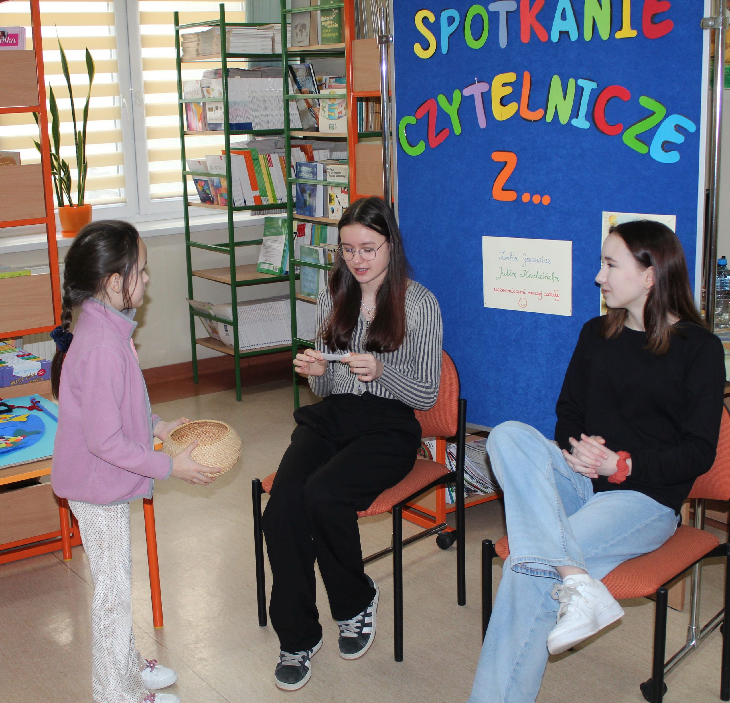 Spotkanie czytelnicze uczniów z klas 2d i 3d z Paniami Beatą Okraszewską i Magdaleną Kostrzewą – absolwentkami i obecnie nauczycielkami naszej szkoły