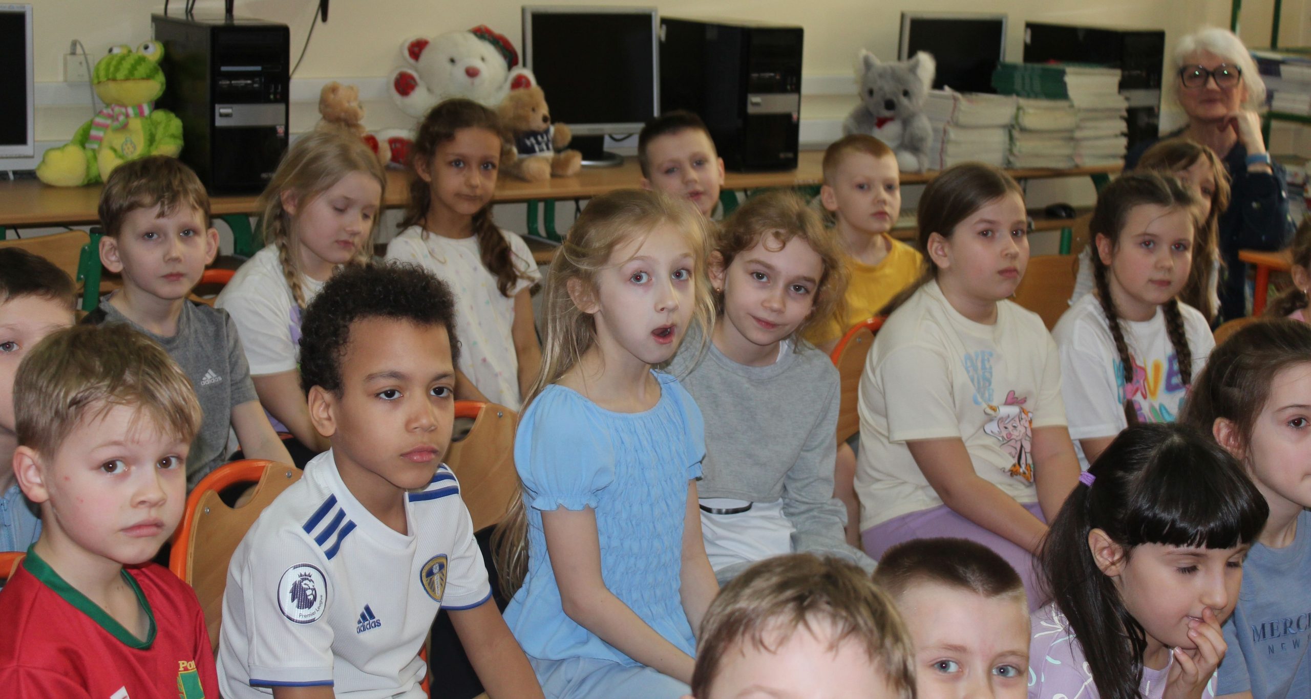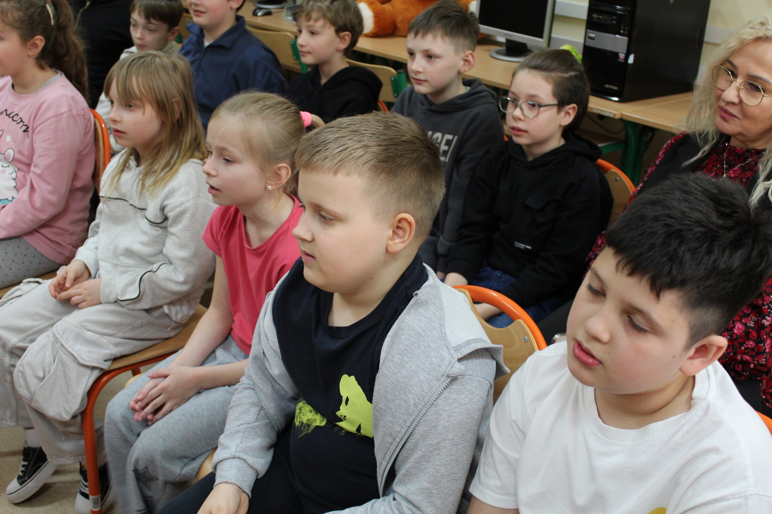 Spotkanie czytelnicze uczniów z klasy 2c z Paniami Danutą Piusińską emerytowaną nauczycielką klas I-III i Iloną Radomską emerytowaną nauczycielką języka polskiego