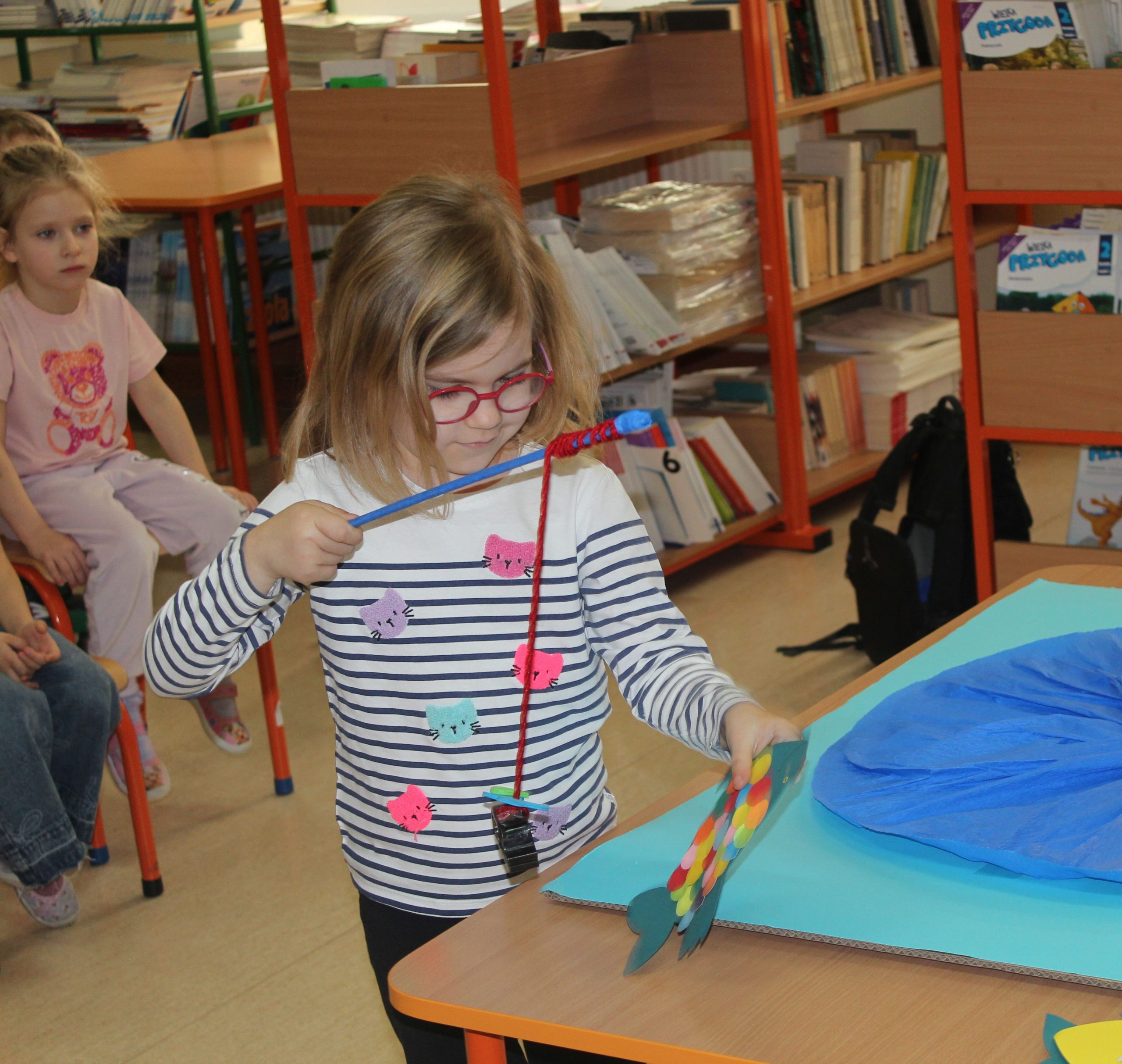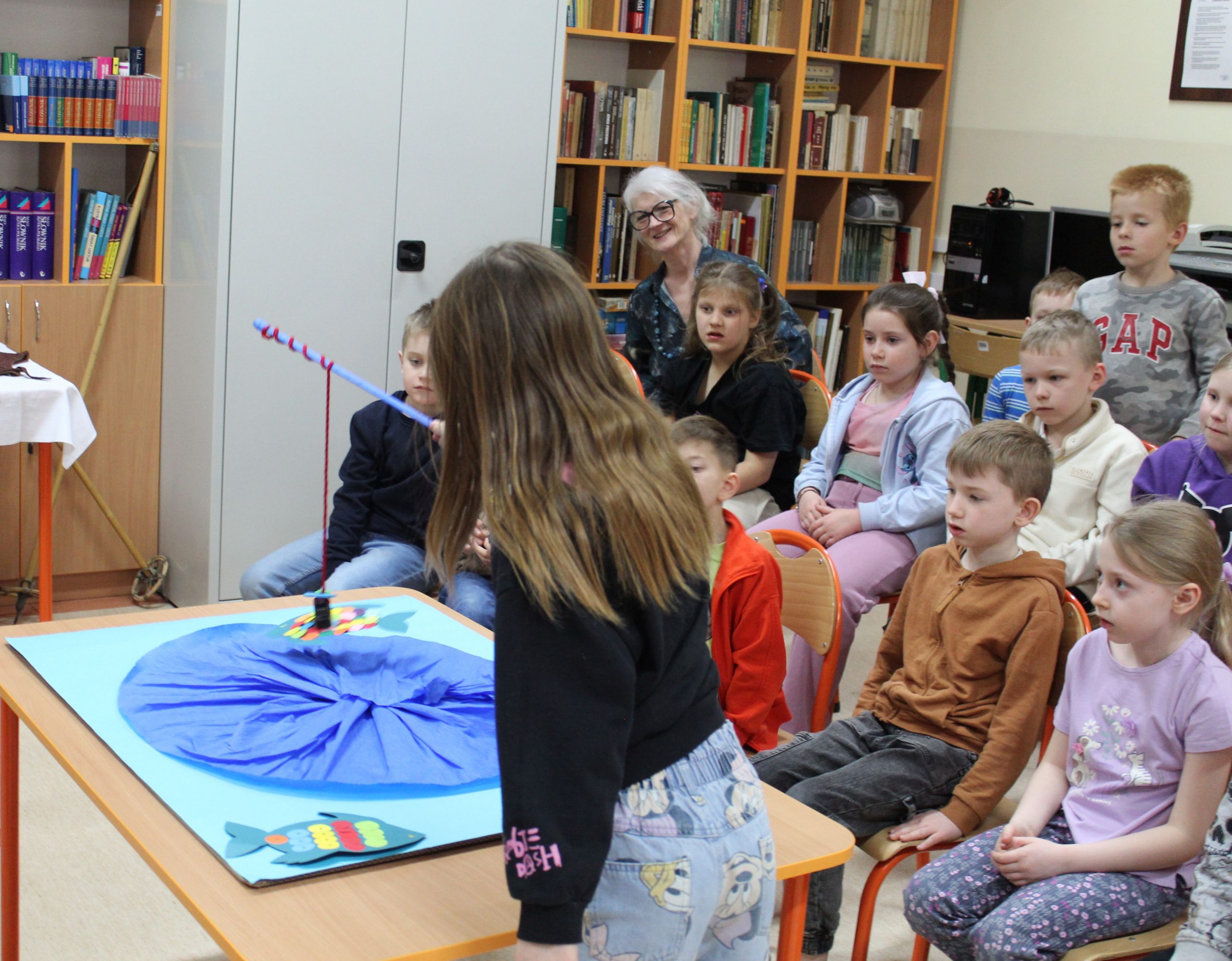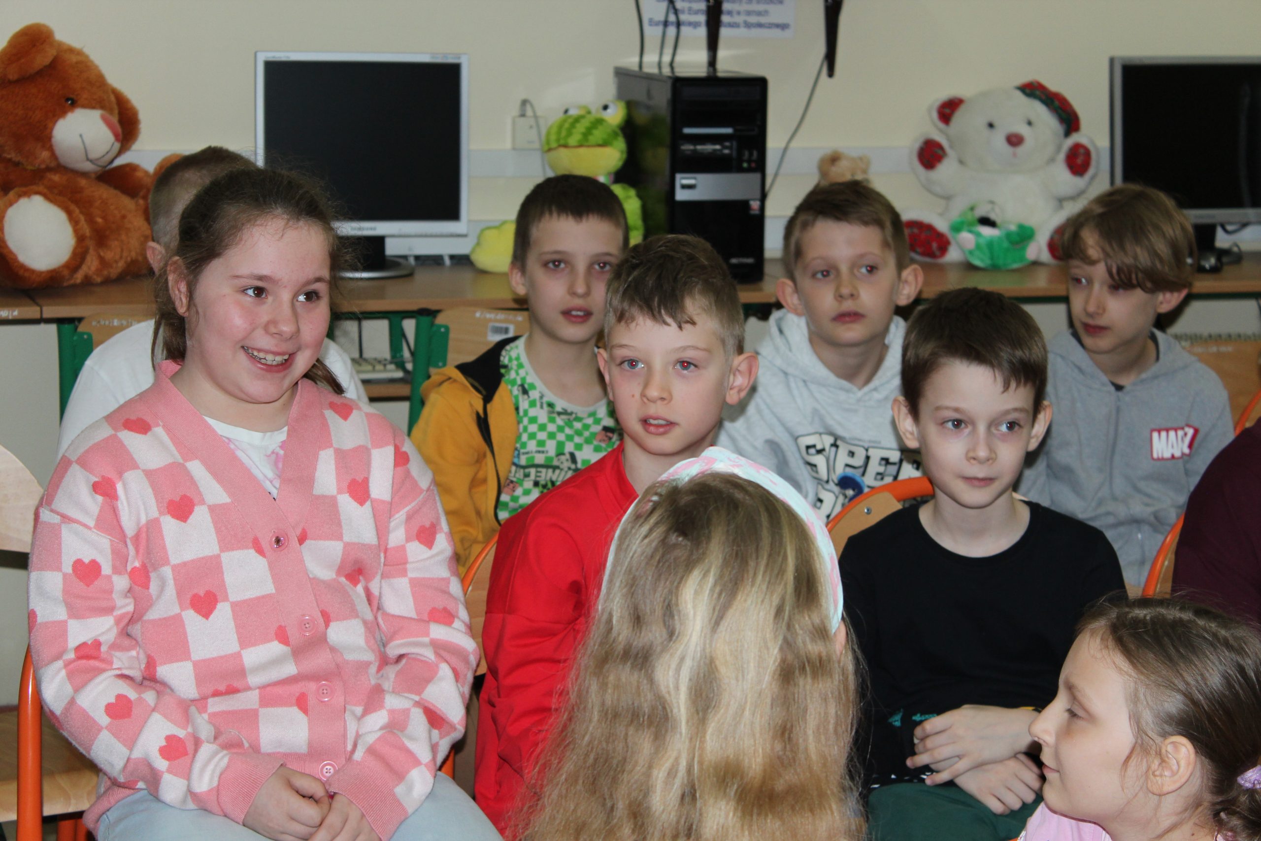 Spotkanie czytelnicze uczniów z klasy 1a z uczennicami z klasy 8c- Zofią Gąsewicz i Julią Kadzińską
