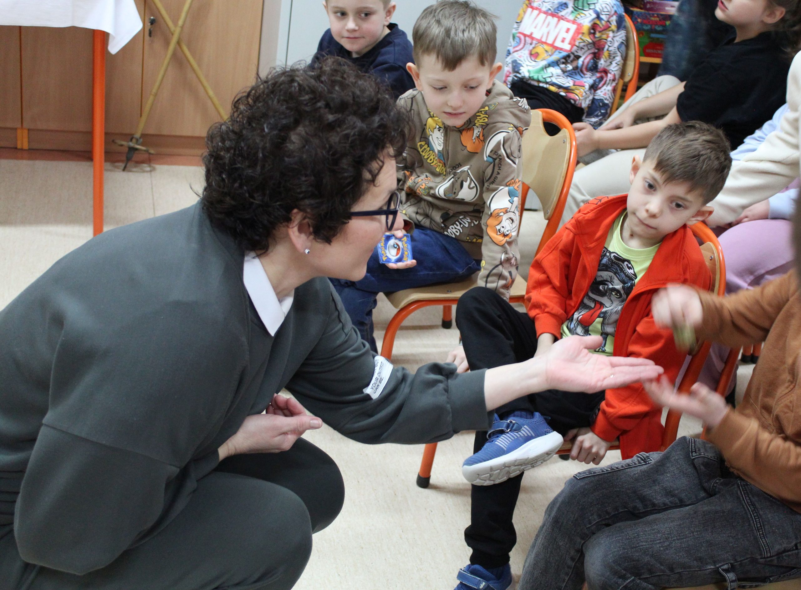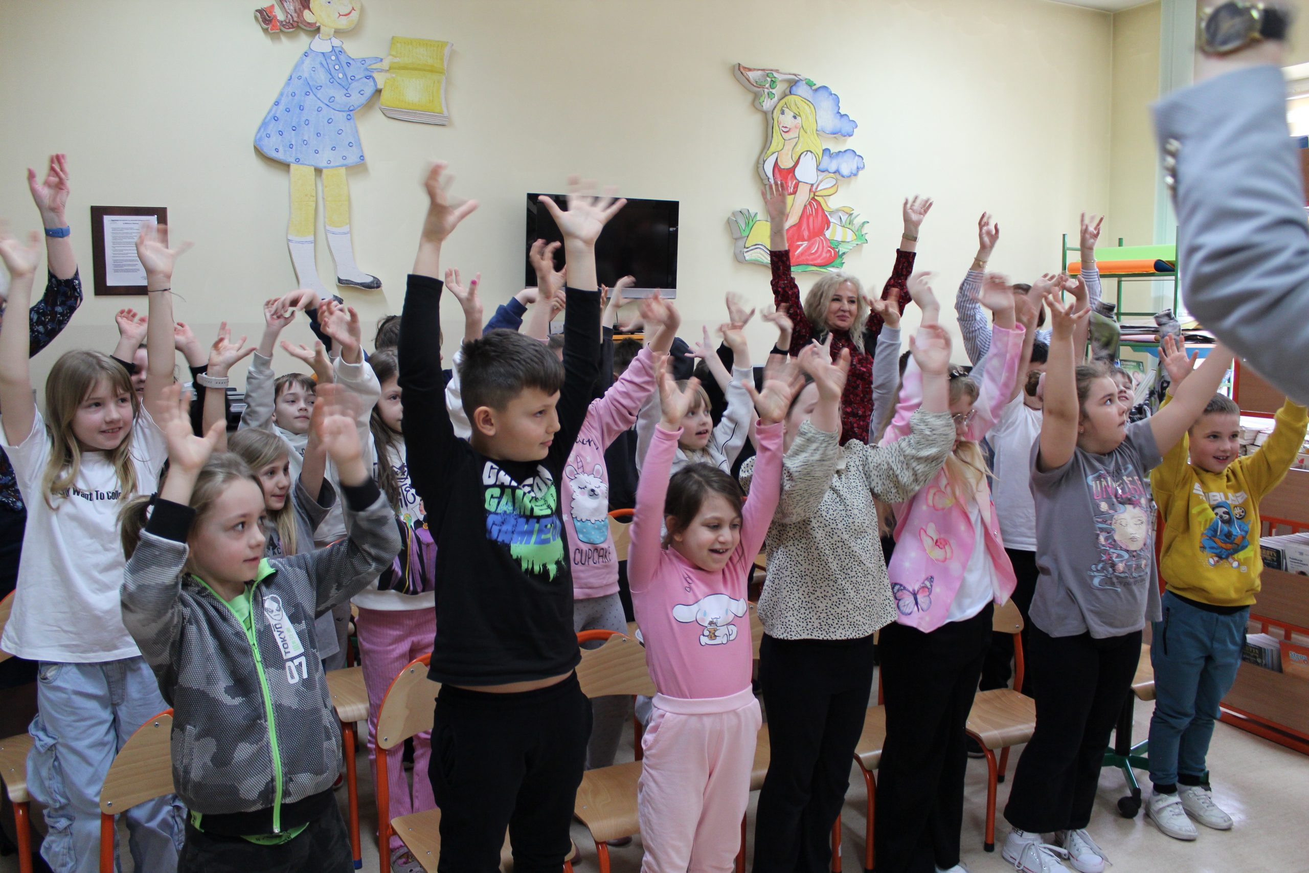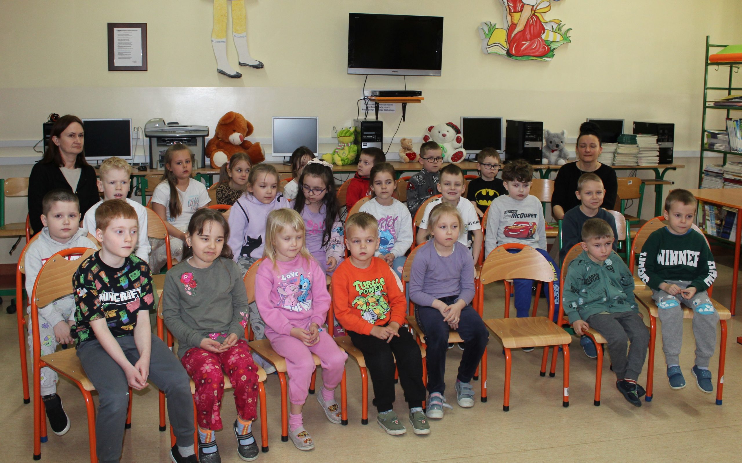 Spotkanie czytelnicze dzieci z Zerówki i Oddziału przedszkolnego z Laurą Landoch, Julią Zimnawoda i Piotrem Wierzbickim – absolwentami SP2 im. Armii Krajowej