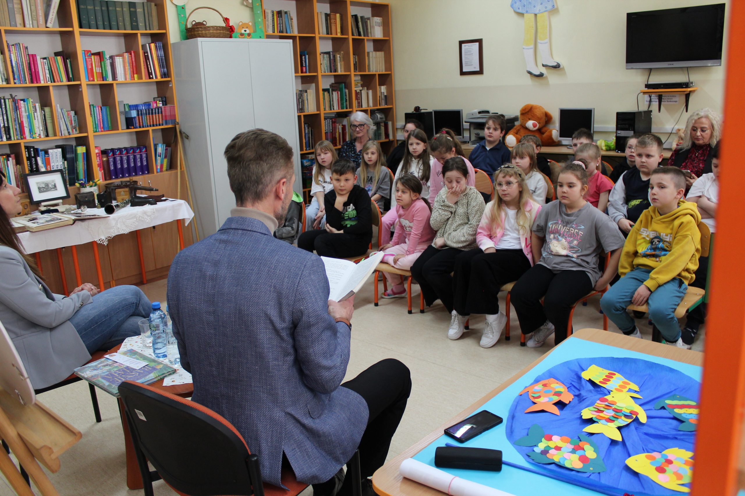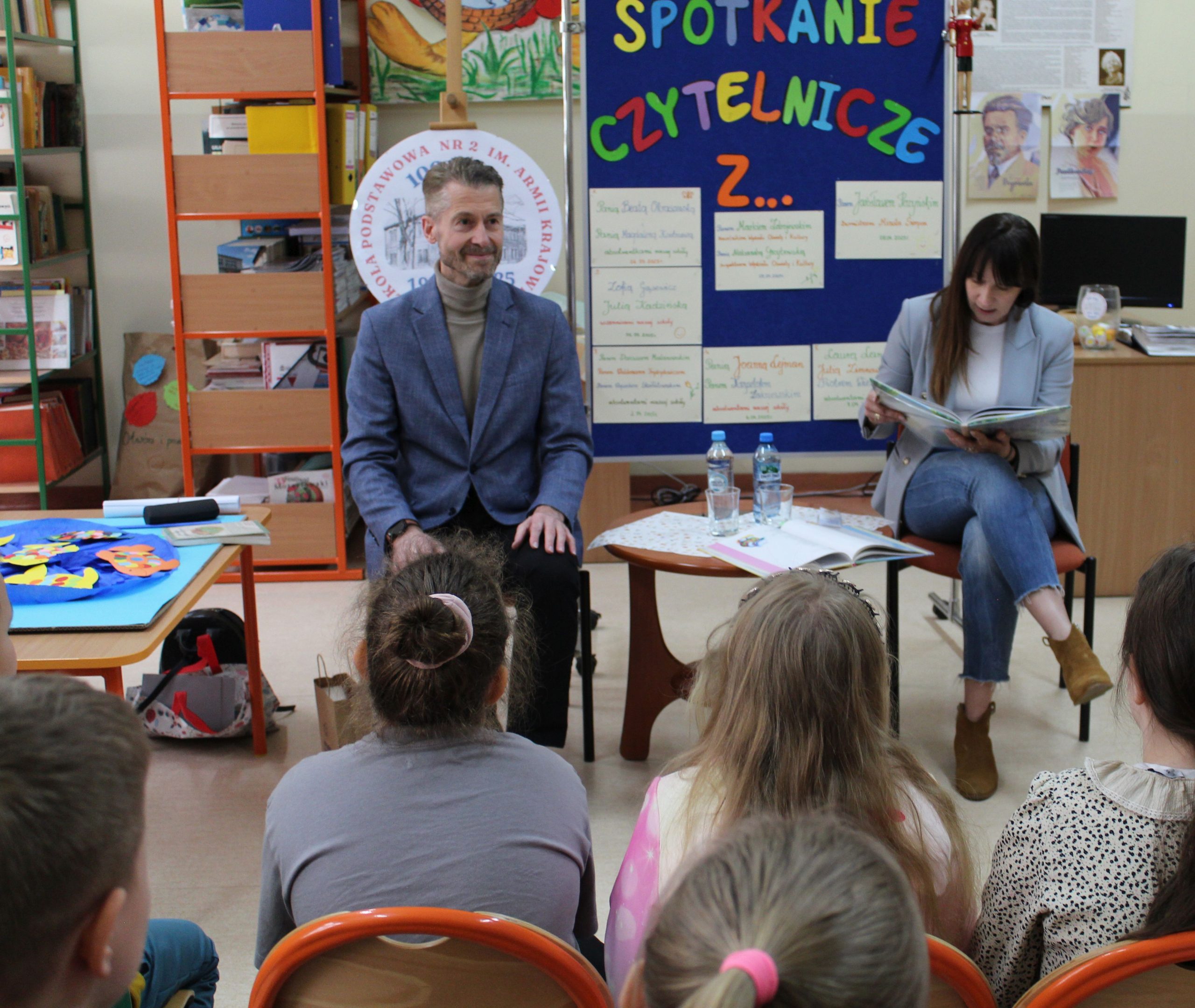 Spotkanie czytelnicze uczniów klasy 2b z Panem Markiem Zdrojewskim Naczelnikiem Wydziału Oświaty i Kultury i Panią Aleksandrą Grzybowską Inspektorem Wydziału Oświaty i Kultury