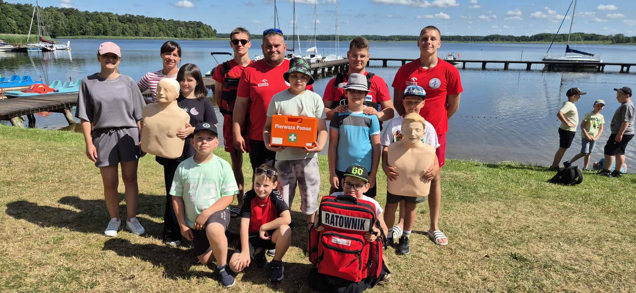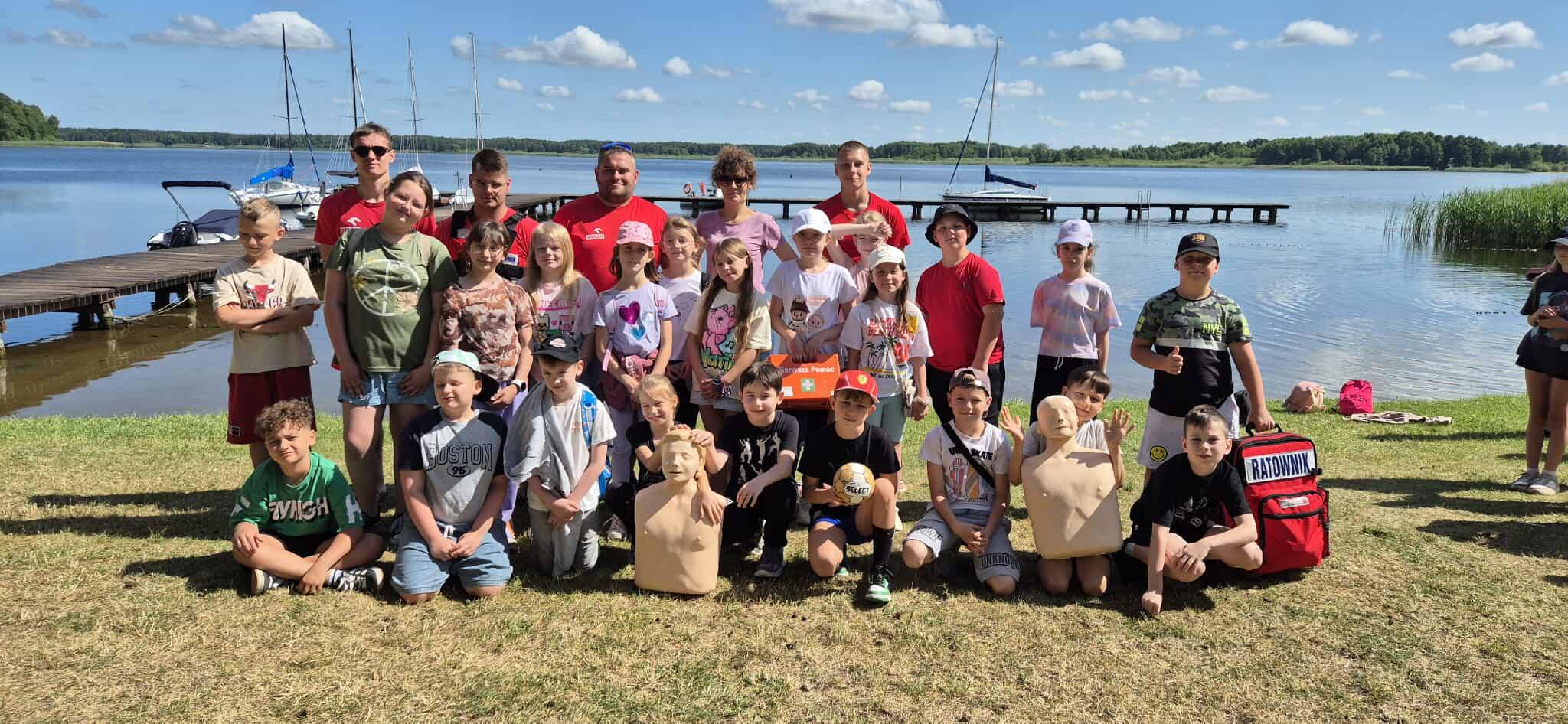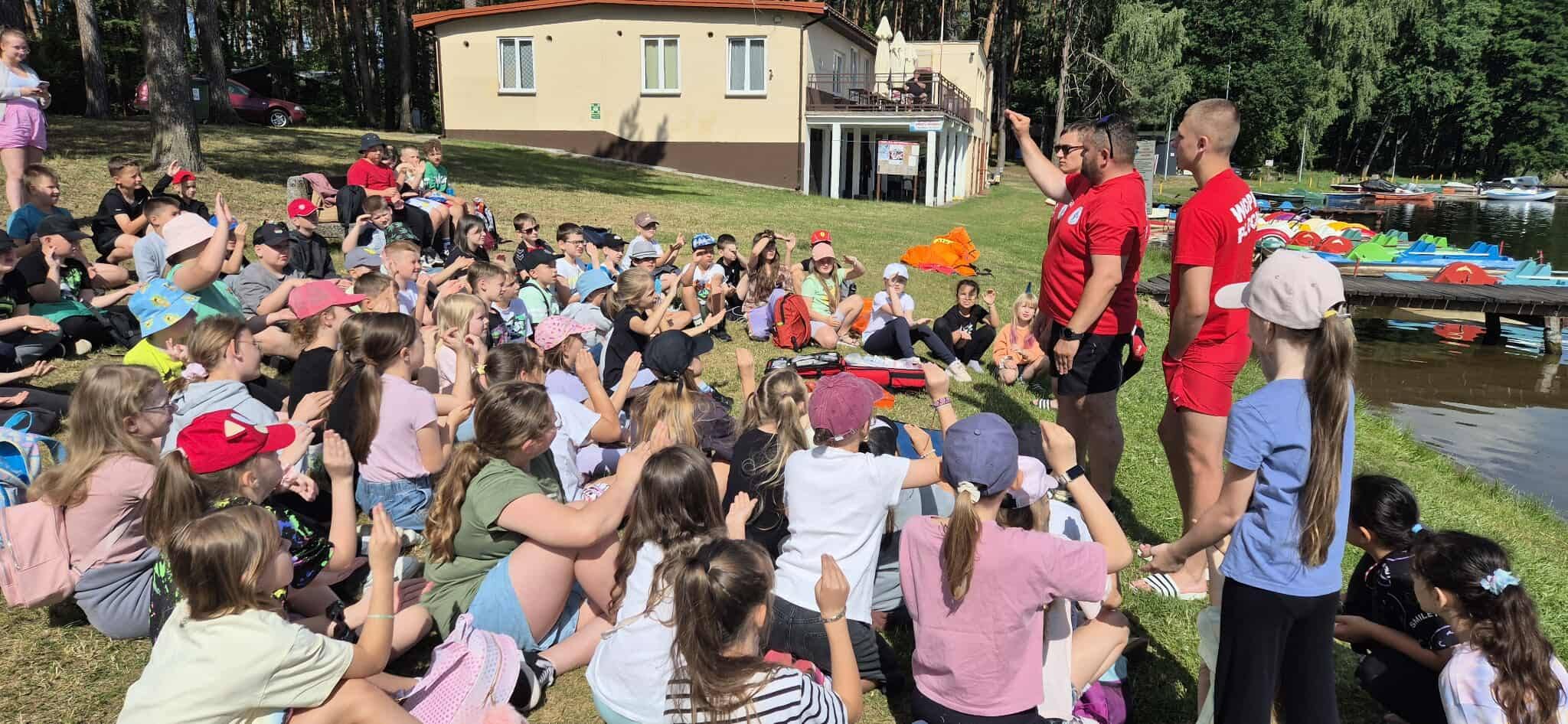 Niezapomnianym przeżyciem był także rejs łodzią motorową po jeziorze, podczas którego dzieci przewozili ratownicy WOPR – Kuba, Piotrek i Kamil. Ich profesjonalizm i życzliwość sprawiły, że uczniowie czuli się bezpiecznie i przeżyli prawdziwą przygodę.