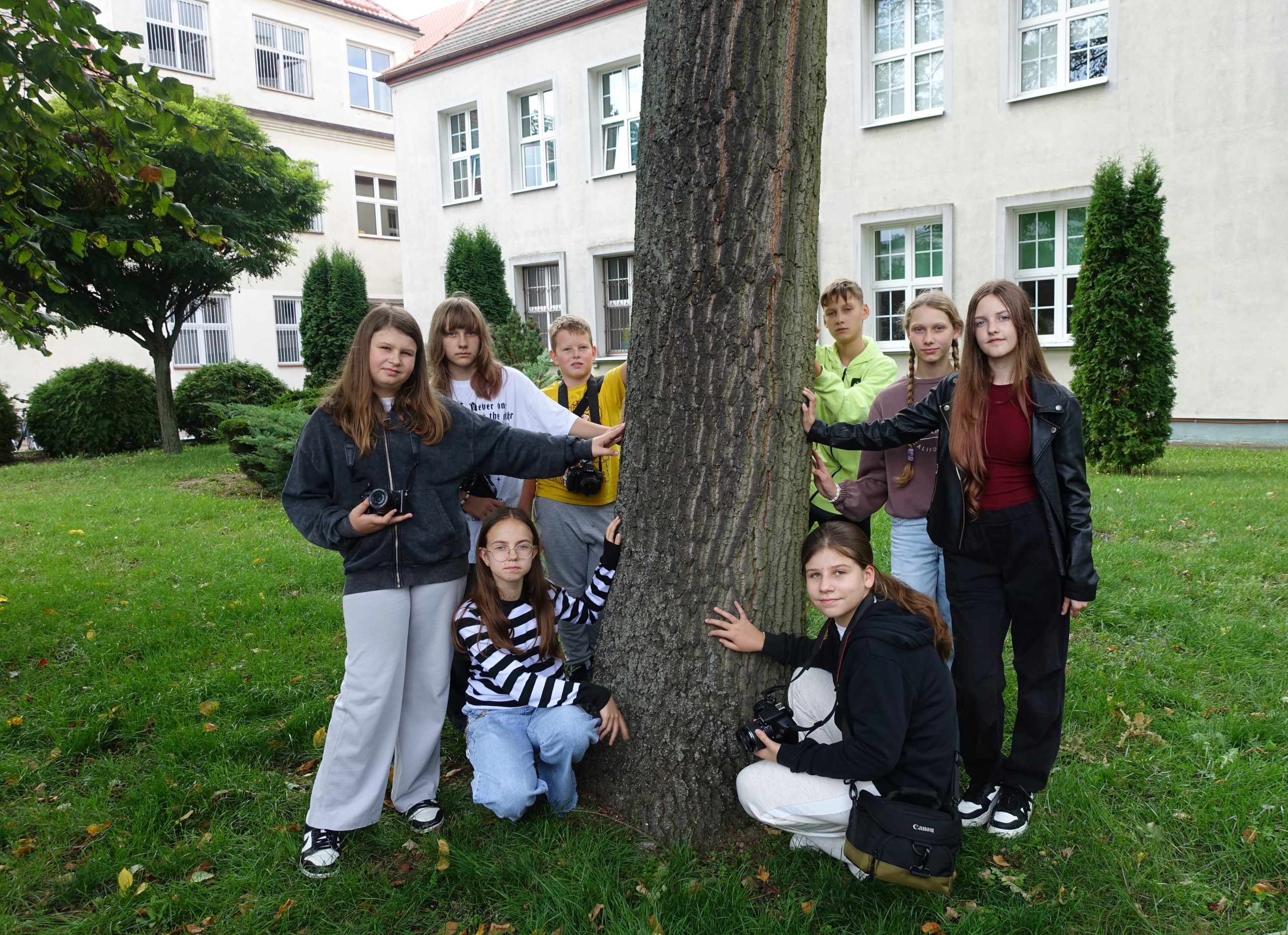 W ramach akcji członkowie szkolnego koła fotograficznego spotkali się w parku, by objąć drzewa i choć na chwilę zatrzymać się w codziennym biegu. To proste doświadczenie pozwala zrelaksować się, poczuć wdzięczność wobec natury i przypomina, jak ważne jest dbanie o środowisko.