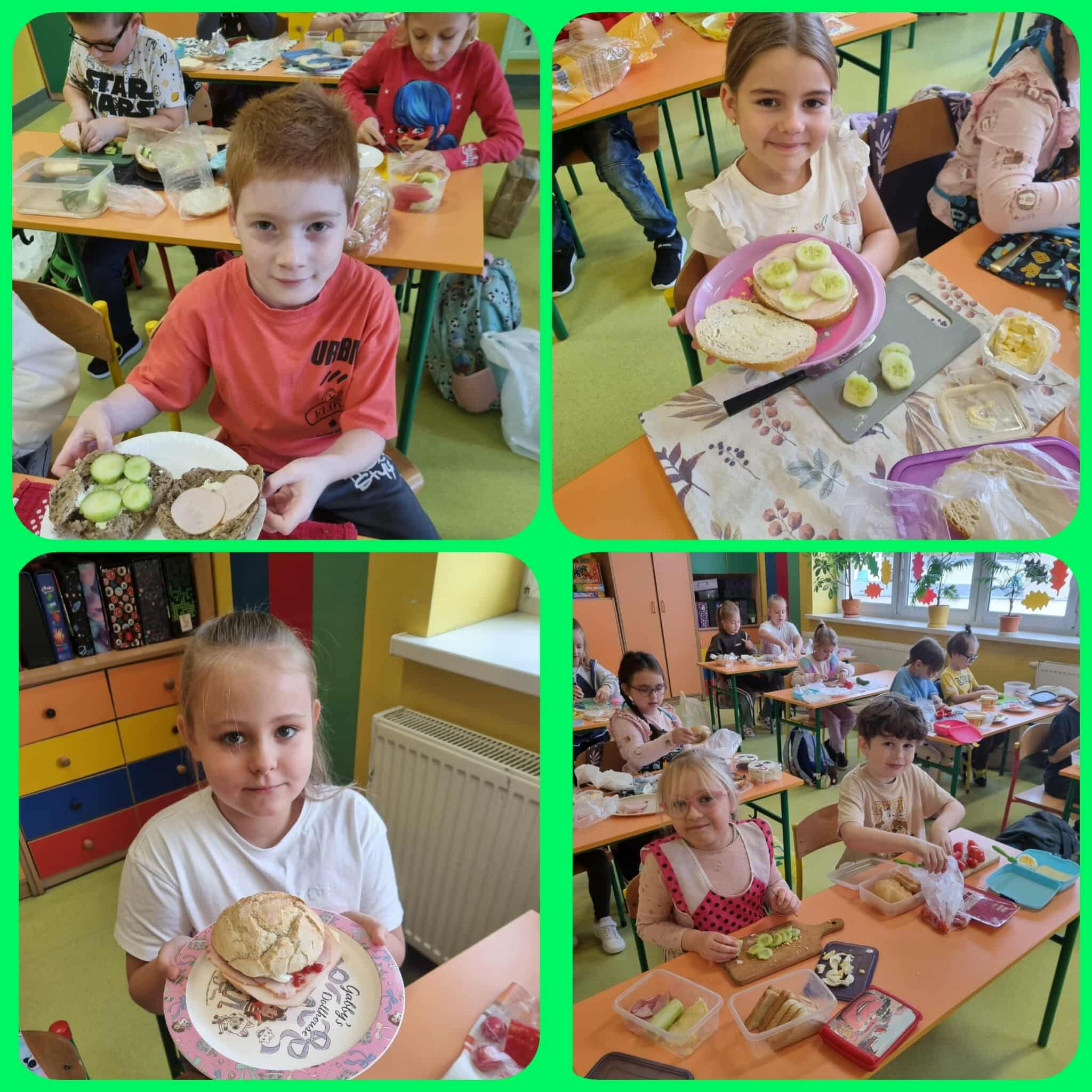 Uczniowie klas pierwszych wzięli udział w wyjątkowych zajęciach, podczas których samodzielnie przygotowywali pełnowartościowe śniadanie. Na stołach pojawiły się kolorowe warzywa, pełnoziarniste pieczywo, sery, jajka oraz wędliny – wszystko, co potrzebne do wykonania pysznych i odżywczych kanapek. Wspólne przygotowywanie śniadania okazało się nie tylko pozytywnym doświadczeniem, ale również doskonałą okazją do kształtowania nawyków zdrowego odżywiania.