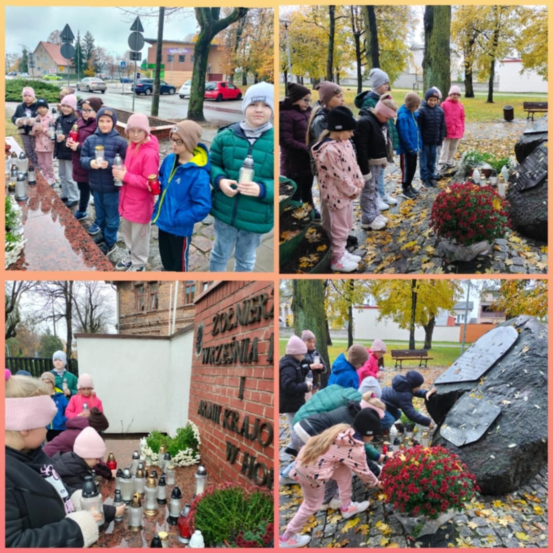 W ostatnich dniach października uczniowie naszej szkoły wzięli udział w akcji: Znicz Pamięci i odwiedzili miejsca pamięci narodowej w naszym mieście. Dzieci zapaliły symboliczne znicze i chwilą ciszy oddały hołd bohaterom. Była to wyjątkową lekcja historii i wychowania patriotycznego.