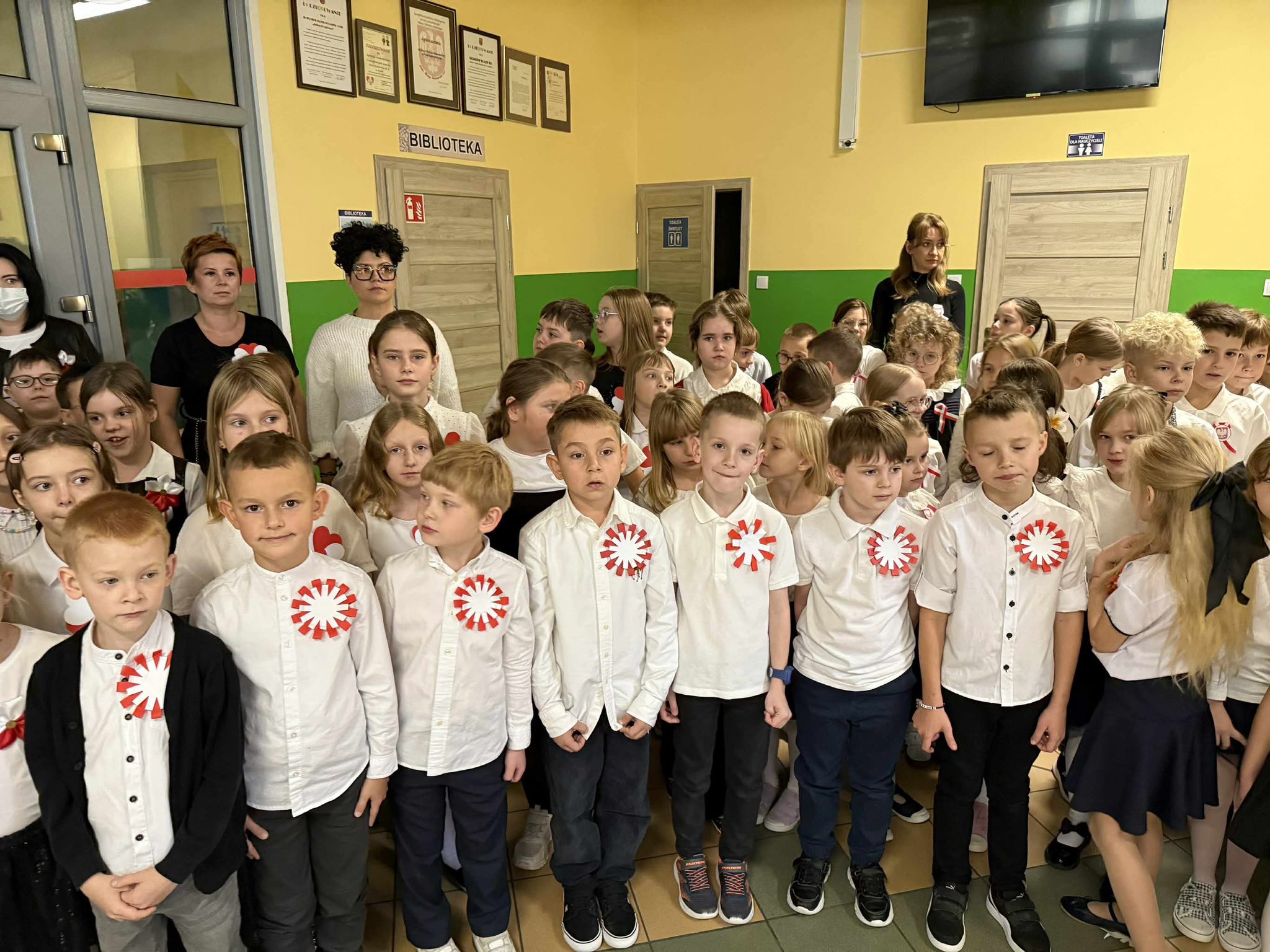 Uczniowie z wielkim zaangażowaniem odśpiewali “Mazurka Dąbrowskiego”