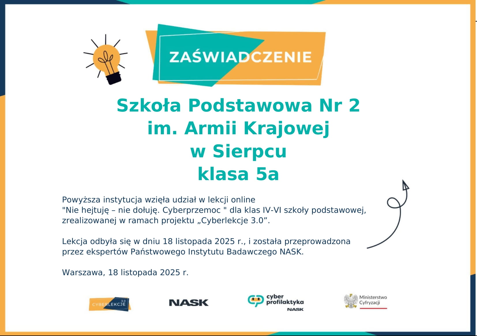 „Nie hejtuję – nie dołuję. Cyberprzemoc” (18.11.2025)