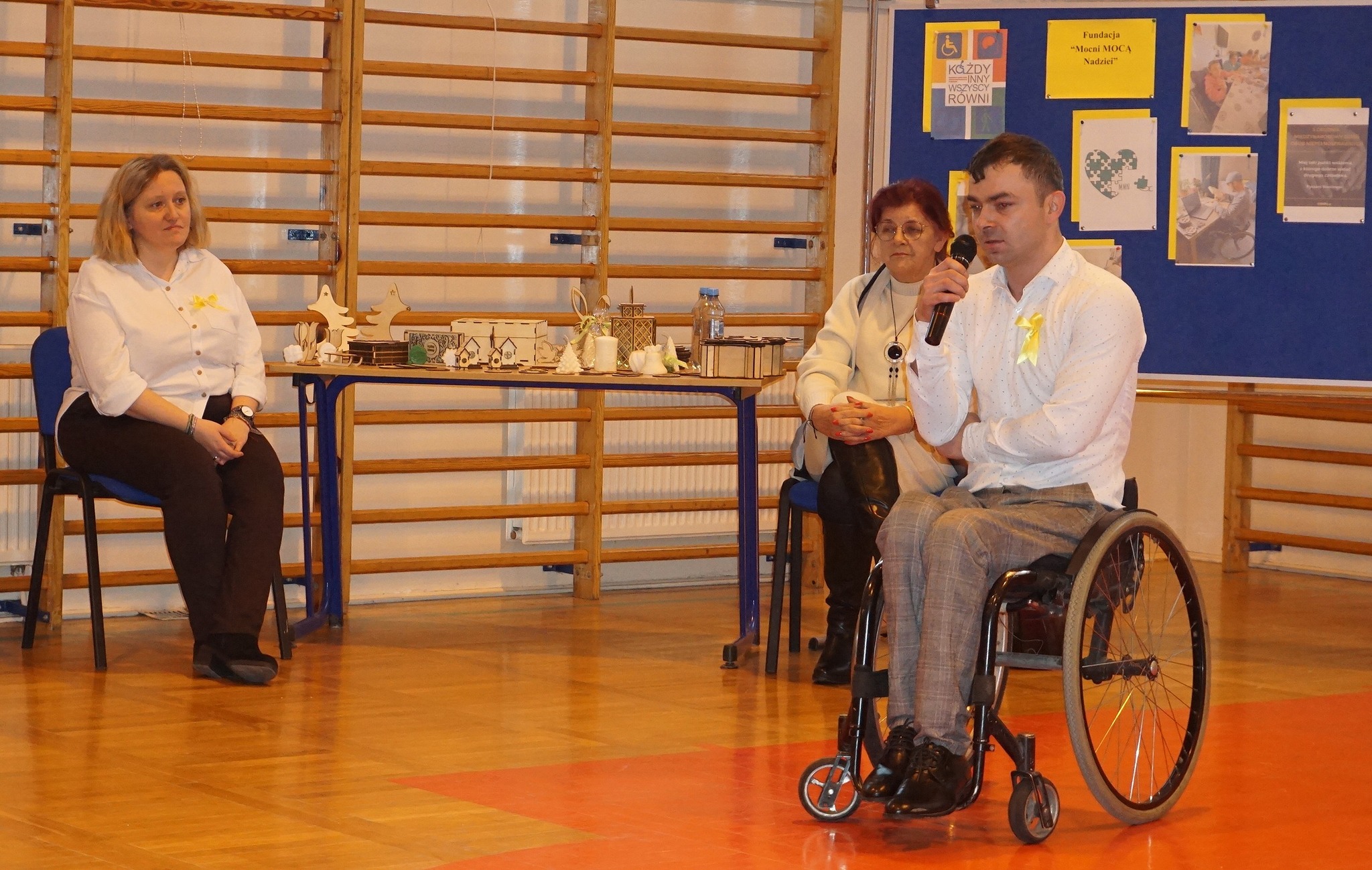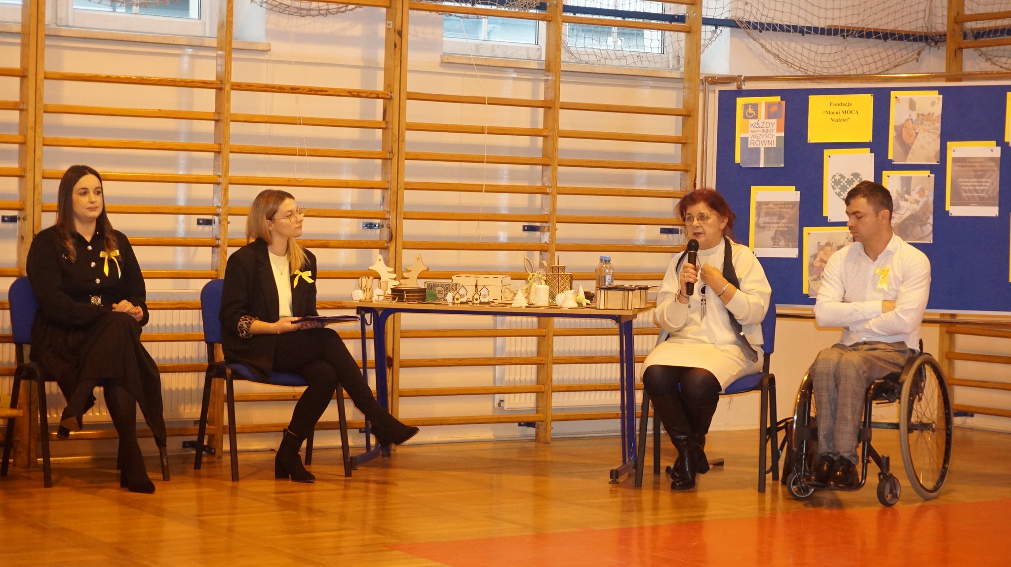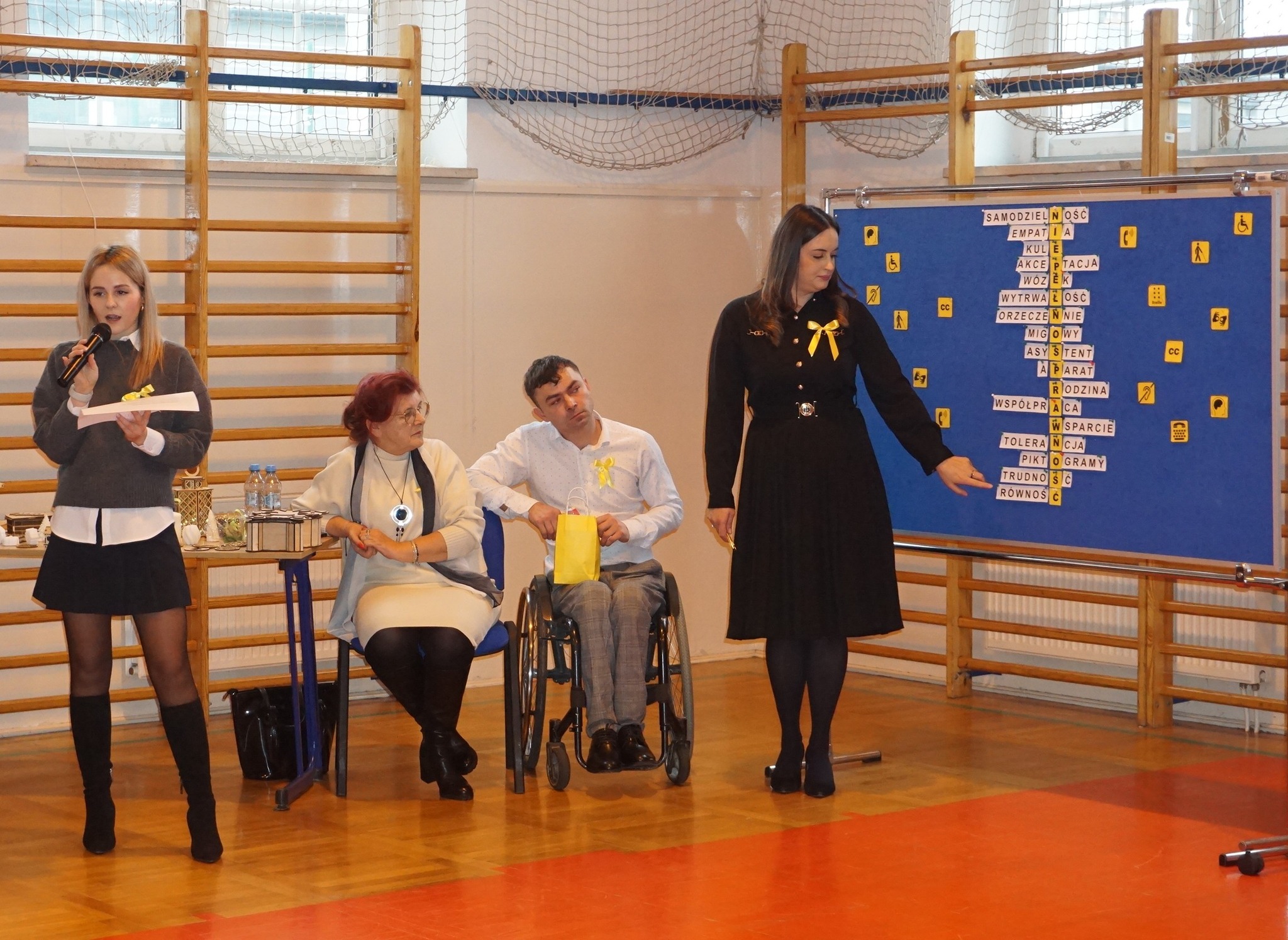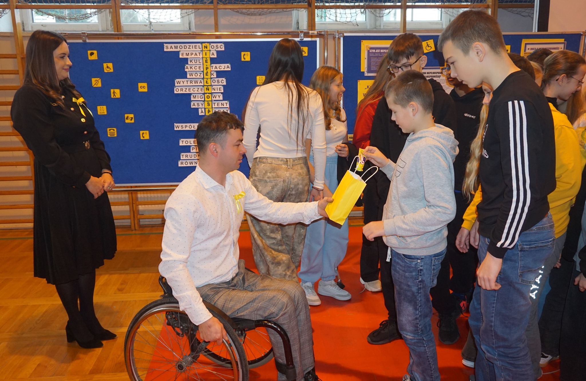 Międzynarodowy Dzień Osób z Niepełnosprawnościami obchodzony jest na całym świecie corocznie 3 grudnia. To wyjątkowy dzień w kalendarzu naszej szkolnej społeczności. Poprzez ubiór w kolorze żółtym, wyraziliśmy wsparcie, akceptację i tolerancję wobec osób niepełnoprawnych. Podczas apelu gościliśmy panią Janinę Gołębiewską – wiceprezes Fundacji „Mocni MOCĄ Nadziei” oraz pracownika fundacji pana Arkadiusza Grączewskiego. Goście opowiadali o trudnościach