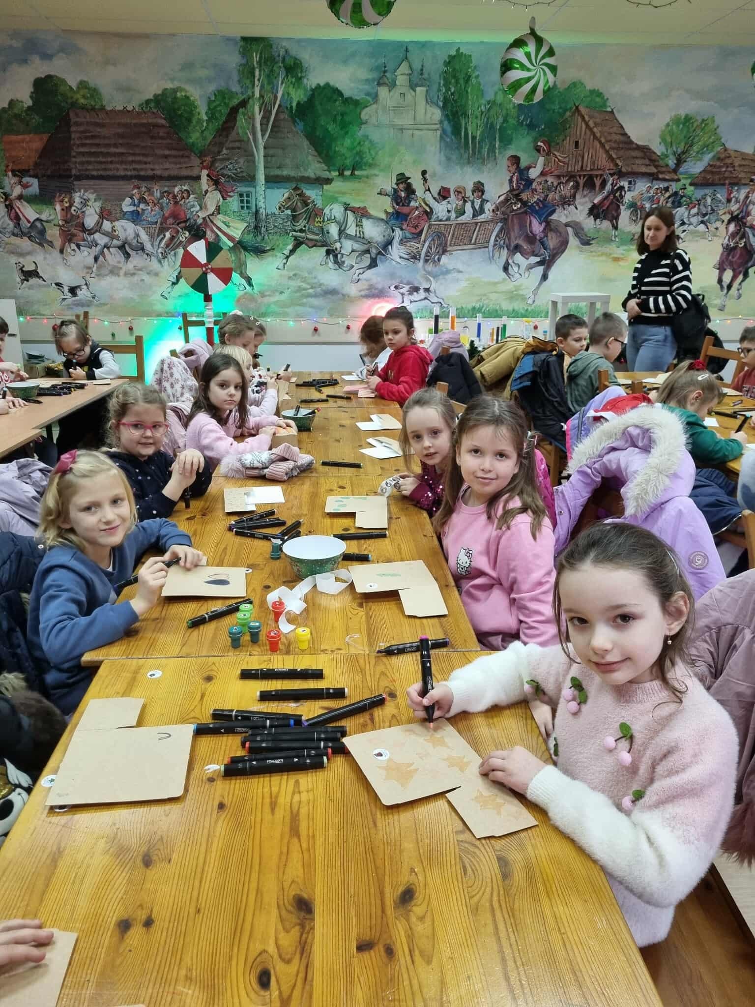 Najważniejszym punktem programu było spotkanie ze Świętym Mikołajem, z którym każde dziecko mogło chwilę porozmawiać i zrobić pamiątkowe zdjęcie. Pierwszoklasiści uczestniczyli także w warsztatach plastycznych, tworząc własne ozdoby świąteczne.