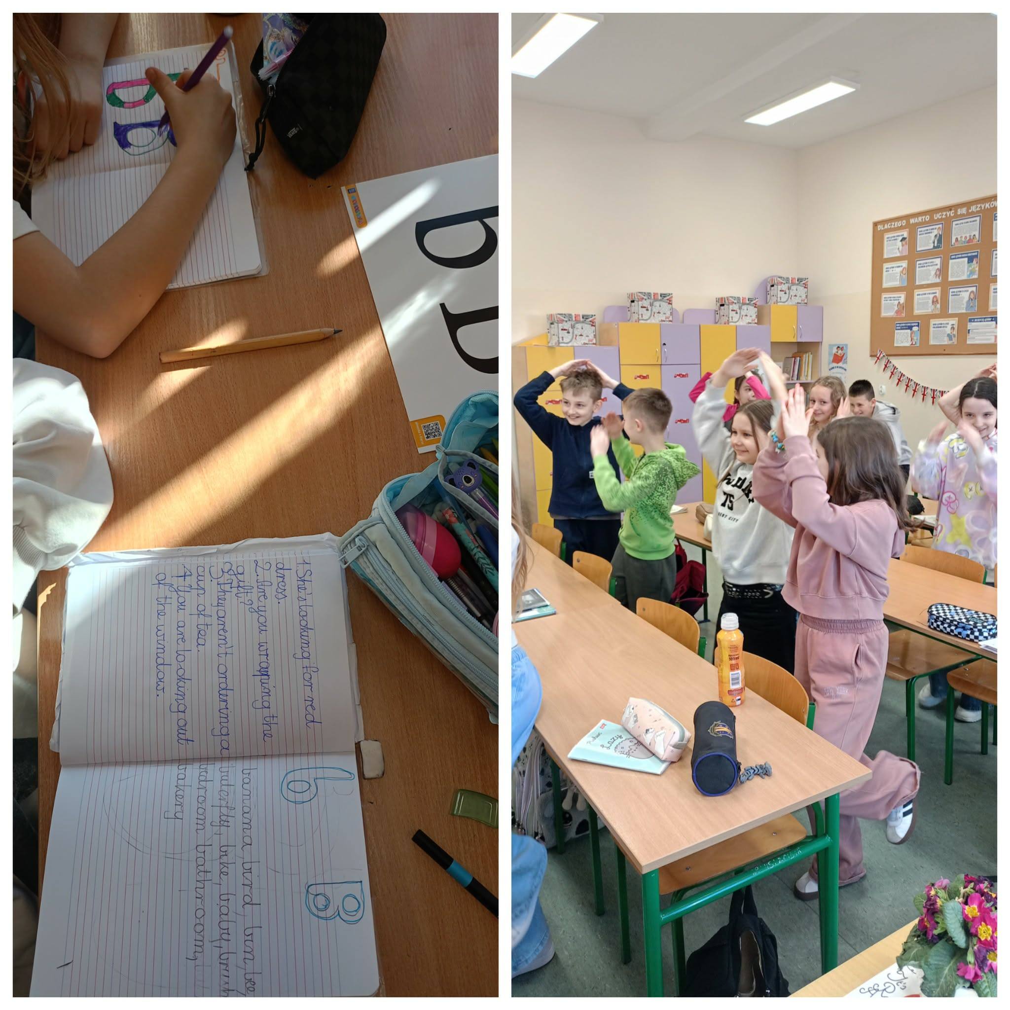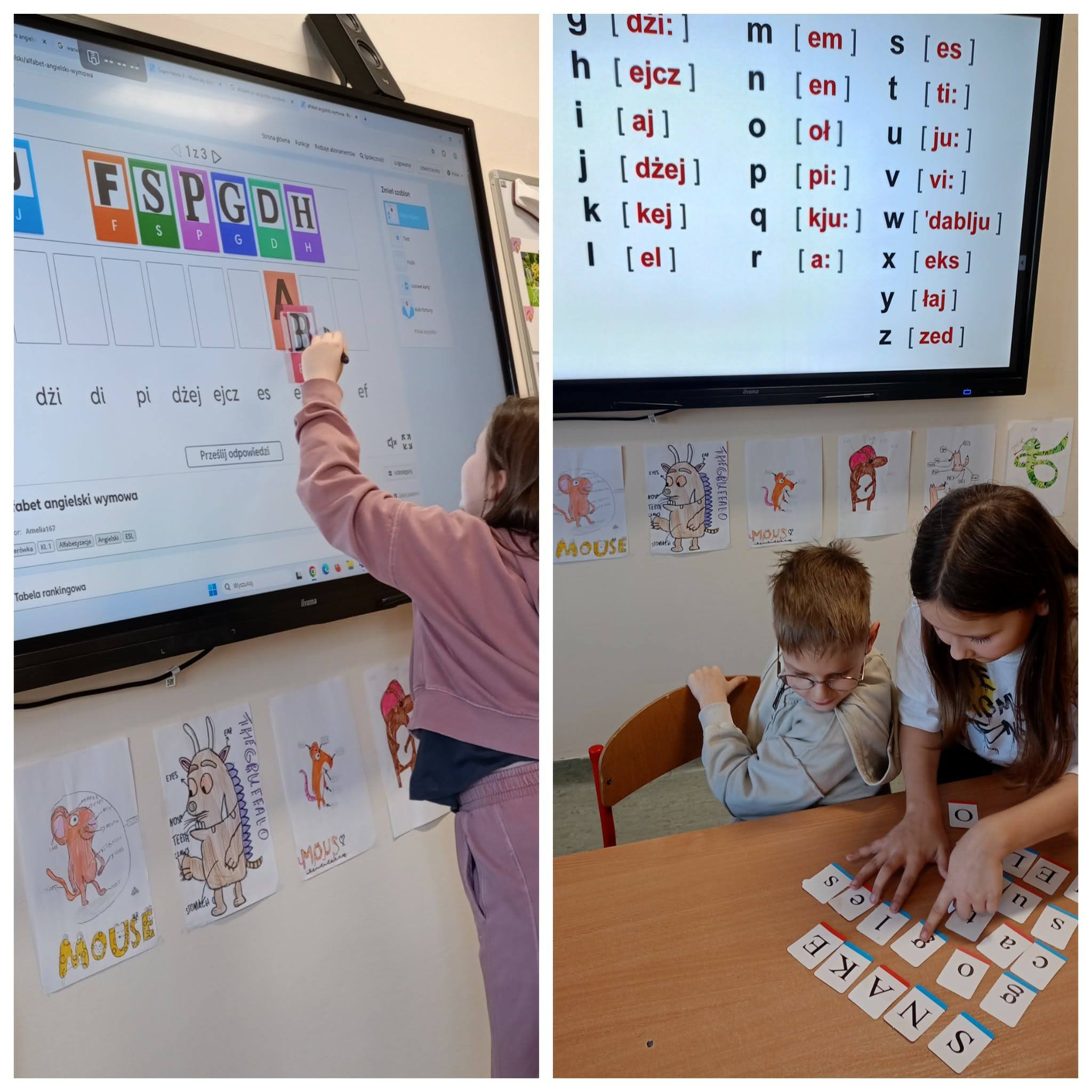 Książeczka „Animal ABC – book to look” autorstwa Gabrieli Rzepeckiej-Weiss wprowadziła uczniów w świat liter alfabetu w języku angielskim. Stała się motywacją do wykonania prac plastycznych inspirowanych skojarzeniami, układania wyrazów z rozsypanek literowych i stworzenia słowniczka obrazkowego. Z kolei kreatywna metoda edukacyjna łącząca aktywność fizyczną z nauką, czyli „joga alfabetyczna”, pomogła w opanowaniu poprawnej wymowy poszczególnych liter i umiejętności literowania (spellingu). Znajomość alfabetu z pewnością będzie pomocna na dalszym etapie poznawania tego języka obcego. 🙂🔠📚
