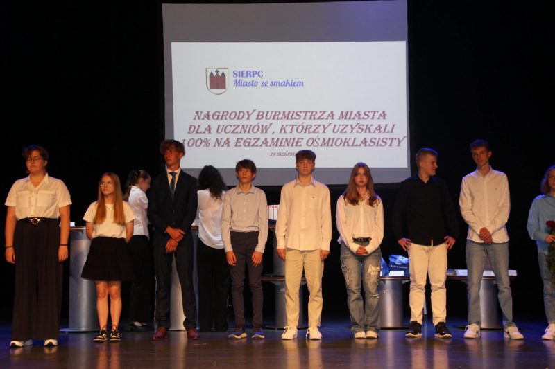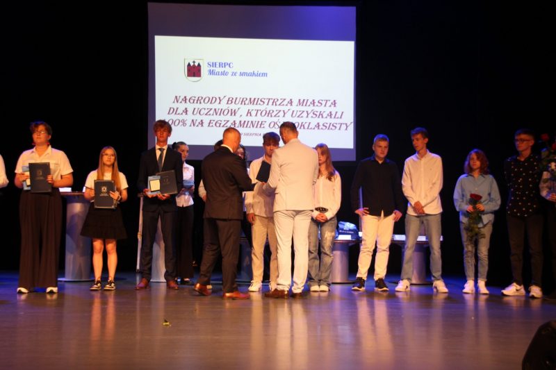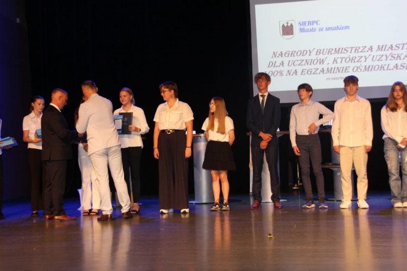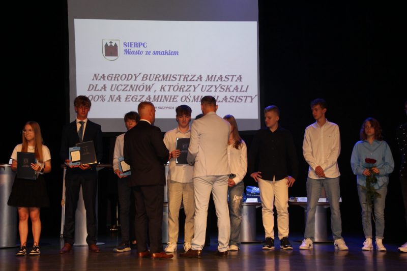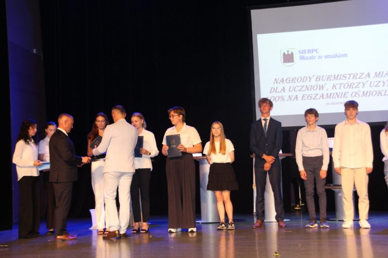 Nagrody rzeczowe Burmistrza Miasta Sierpca za 100 % punktów z egzaminu ośmioklasisty otrzymali uczniowie: